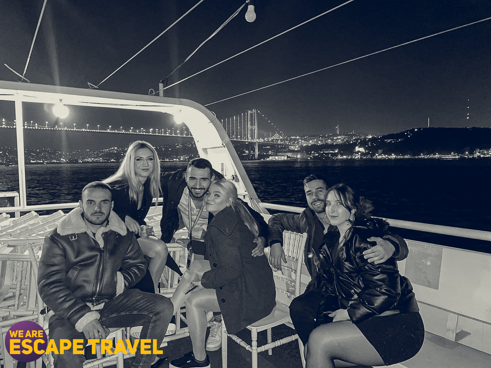 После Галата порт се враќаме назад во хотелот за да се подготвиме за најлудата веќер и најубавиот дочек на брод.Организиран транспорт до Босфор со нашите автобуси за сите журкаџии. За време на нашиот транспорт до бродот кој трае магични 20 минути, ние ви подговуваме едно кратко изненадување за секој автобус, а со ова го најавуваме големиот старт на нашата прва новогодишна журка!