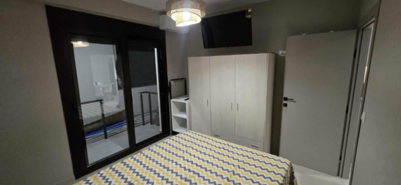 Сосема нов апартман на 50 метри од плажата. Има соба со брачен кревет, кујна и дневна соба поврзани, бања и тераса. Во кујната, кревет на расклопување и може плус еден дополнителен кревет на расклопување. Кујна опремена за подготовка и сервирање храна . Има машина за перење и машина за миење садови. Има климатизација и во дневната соба и во спалната соба. Климатизацијата и Wi-Fi се вклучени во цената. Апартманот се наоѓа на приземје и има една голема тераса напред и помала на задната страна.