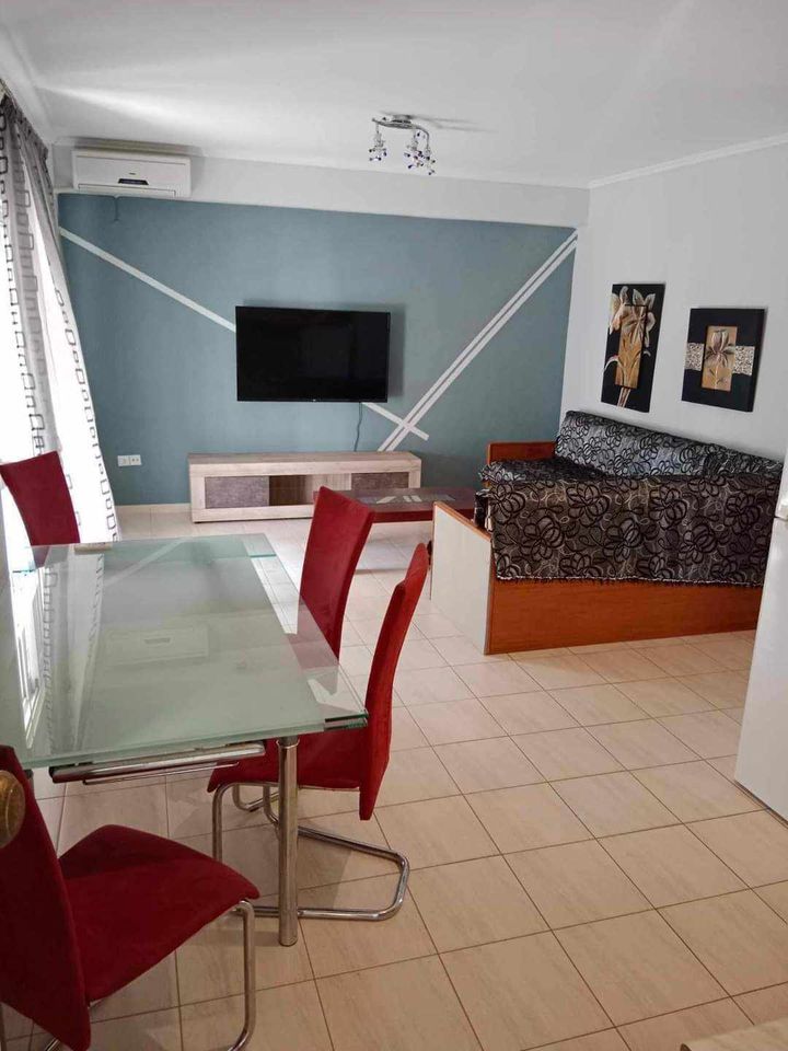Наменет е за 5-6 лица (3 возрасни + 3 деца). Се наоѓа на 100 метри од плажа. Се состои од две спални соби, дневна поврзана со кујна и трпезарија, бања и тераса. Една соба има брачен кревет. Во втората три единечни кревети. Во дневната соба има софа. Опремена кујна за приготвување и послужување храна и пица. Се наоѓа на прв кат.