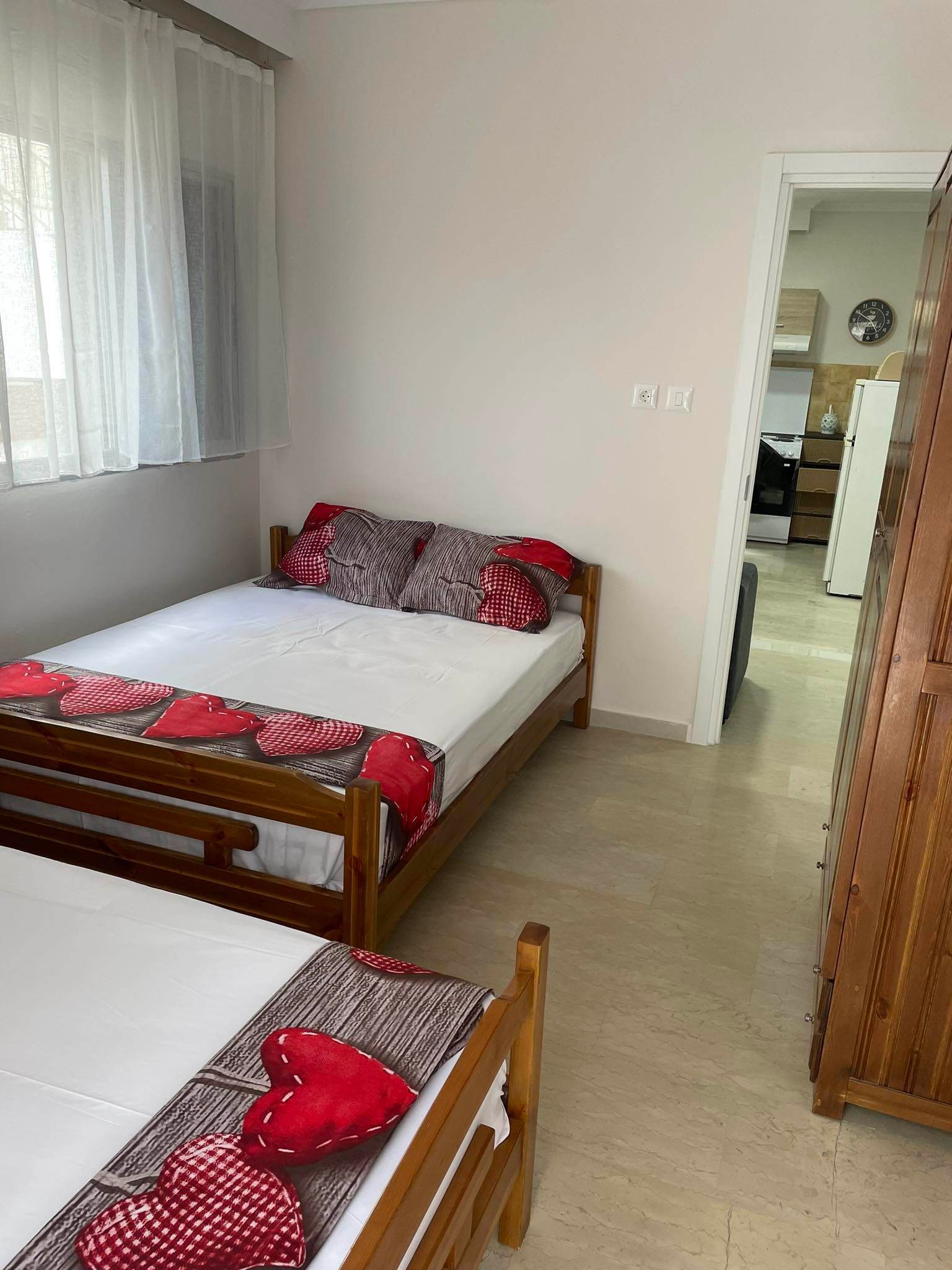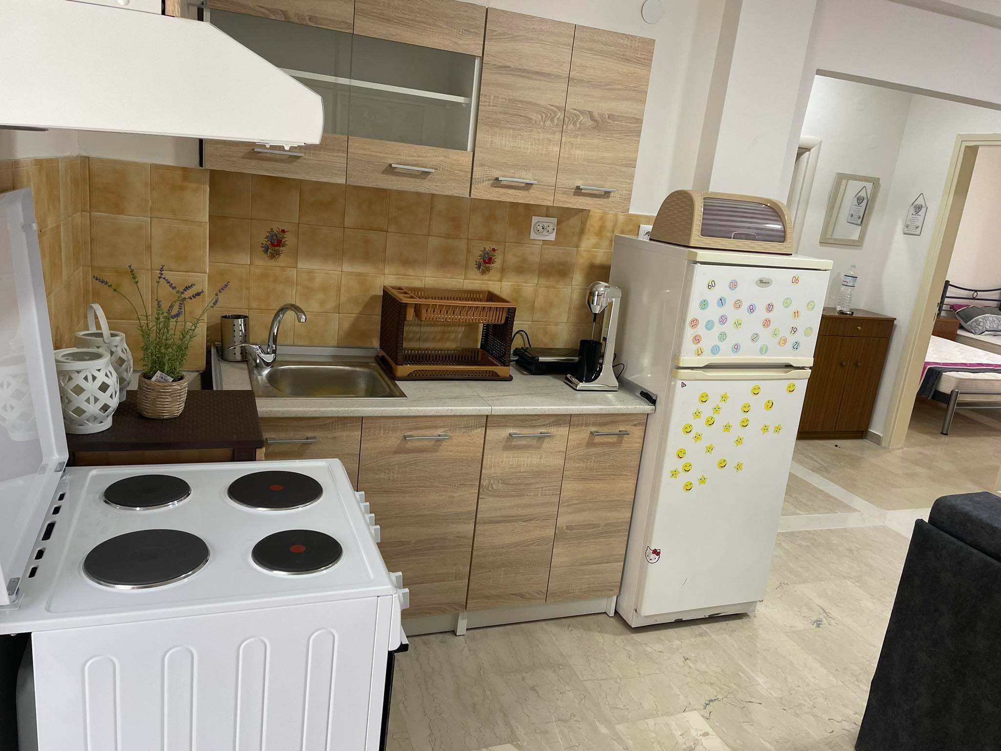 Вила Марина се наоѓа на 250м од плажа.Има две спални соби во секоја има еден брачен кревет и еден единечен кревет.И двете соби излегуваат на тераса која гледа накај улица. Дневната е поврзена со кујната и терпезаријата. Во дневната има кревет на резвлекуванје и фотелја. Кујната е опремена со основен прибор за подготоввка на лесни јадења. Апартманот се наоѓа на високо приземје.