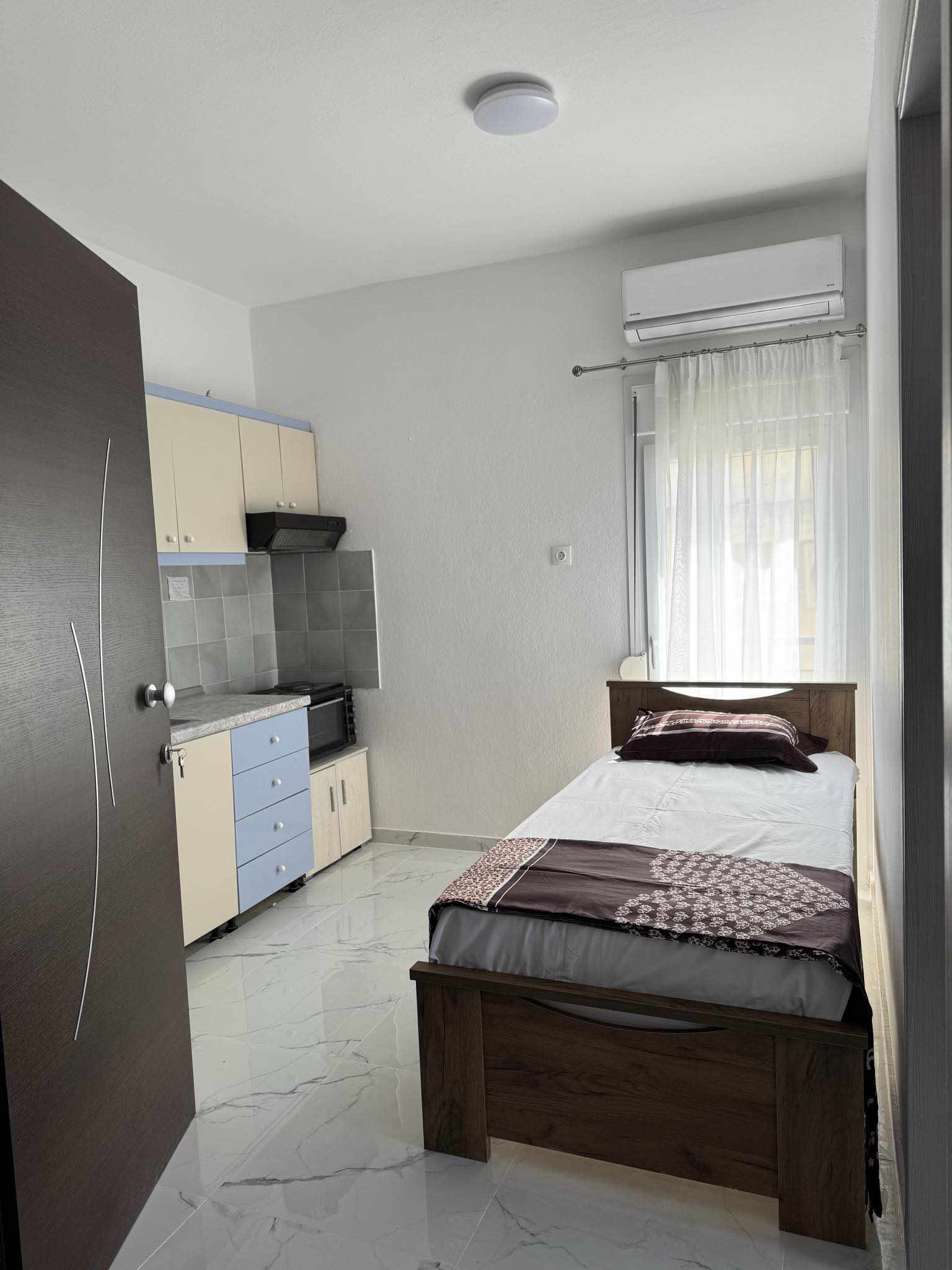 Во апартман број 5 имате на располагање соба со брачен кревет, кујна,трпезарија, и дневна заедно .