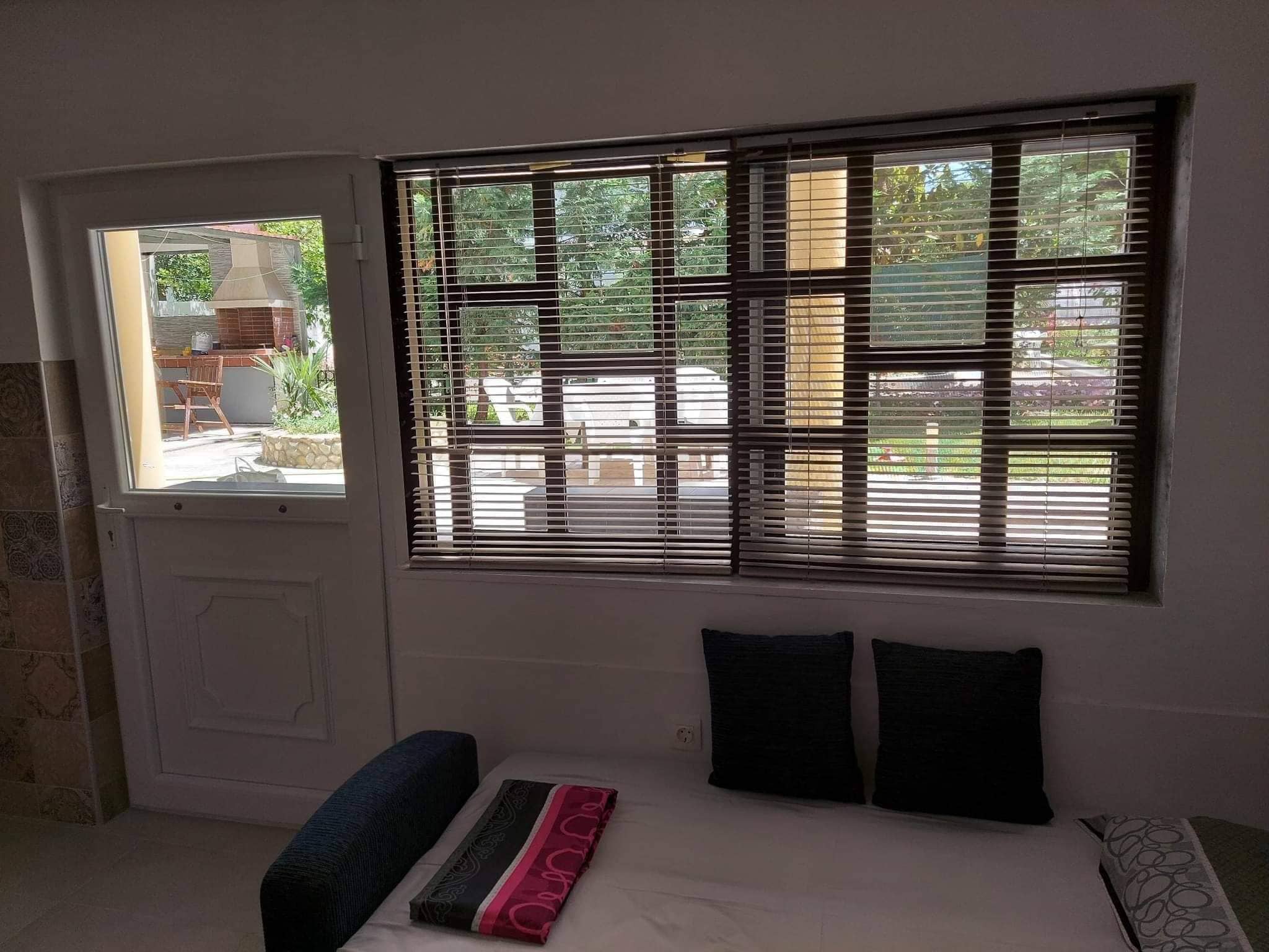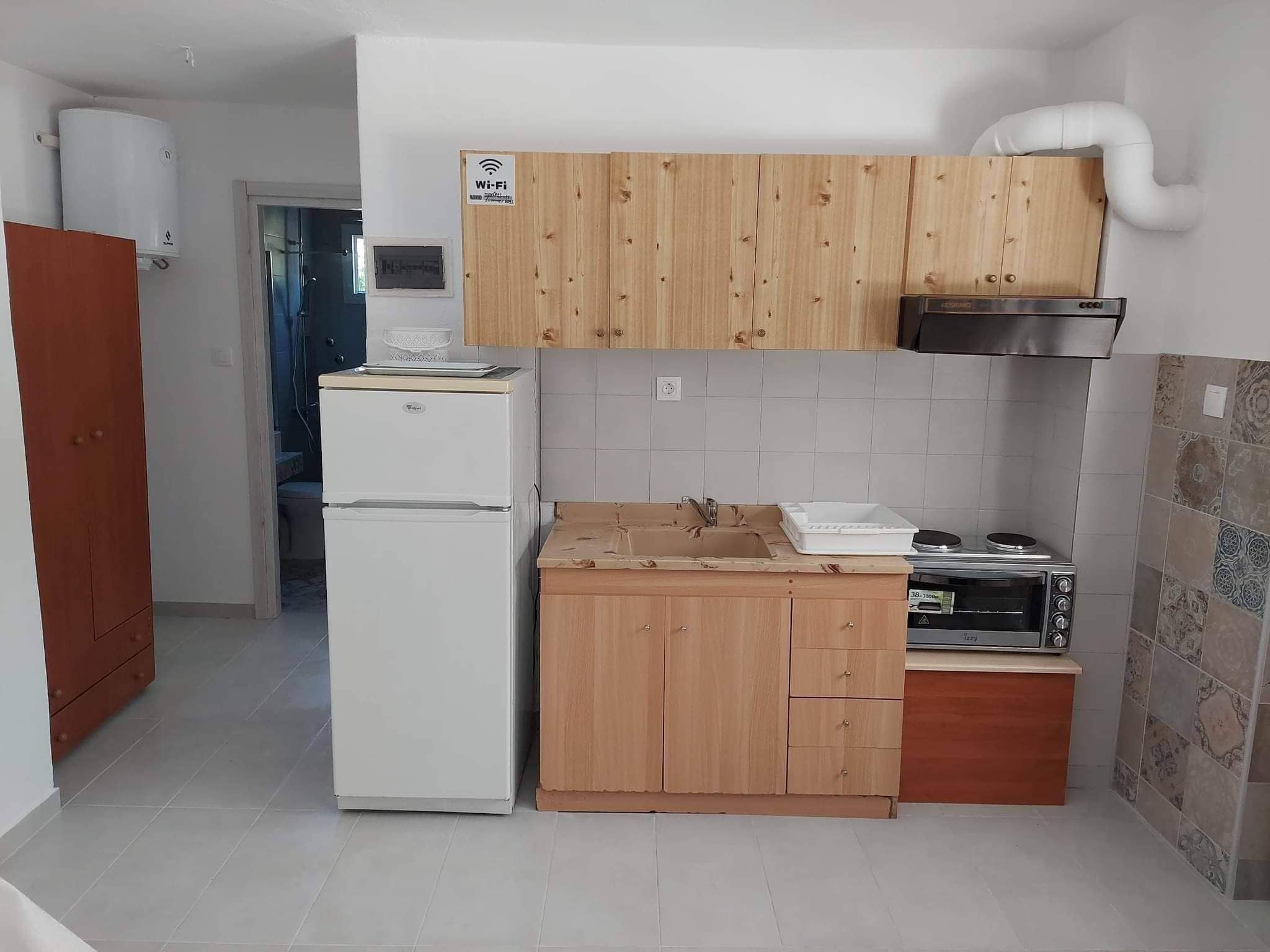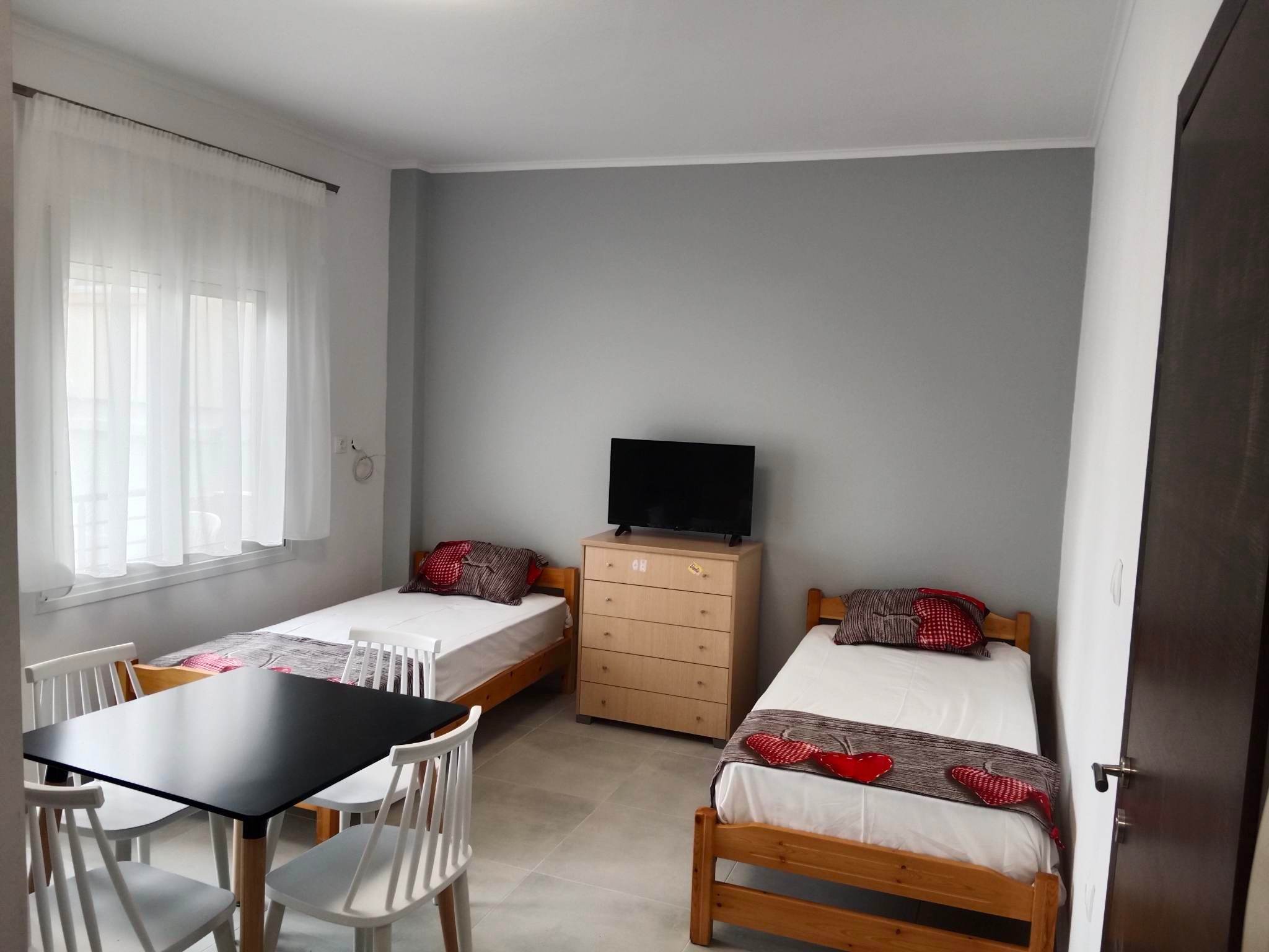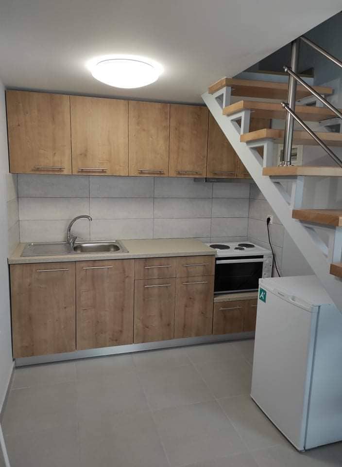 Во апартман број 5 имате на располагање соба со брачен кревет, кујна,трпезарија, и дневна заедно .