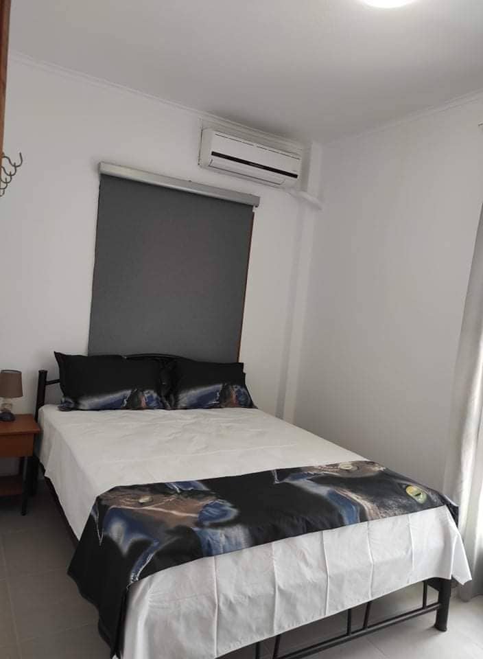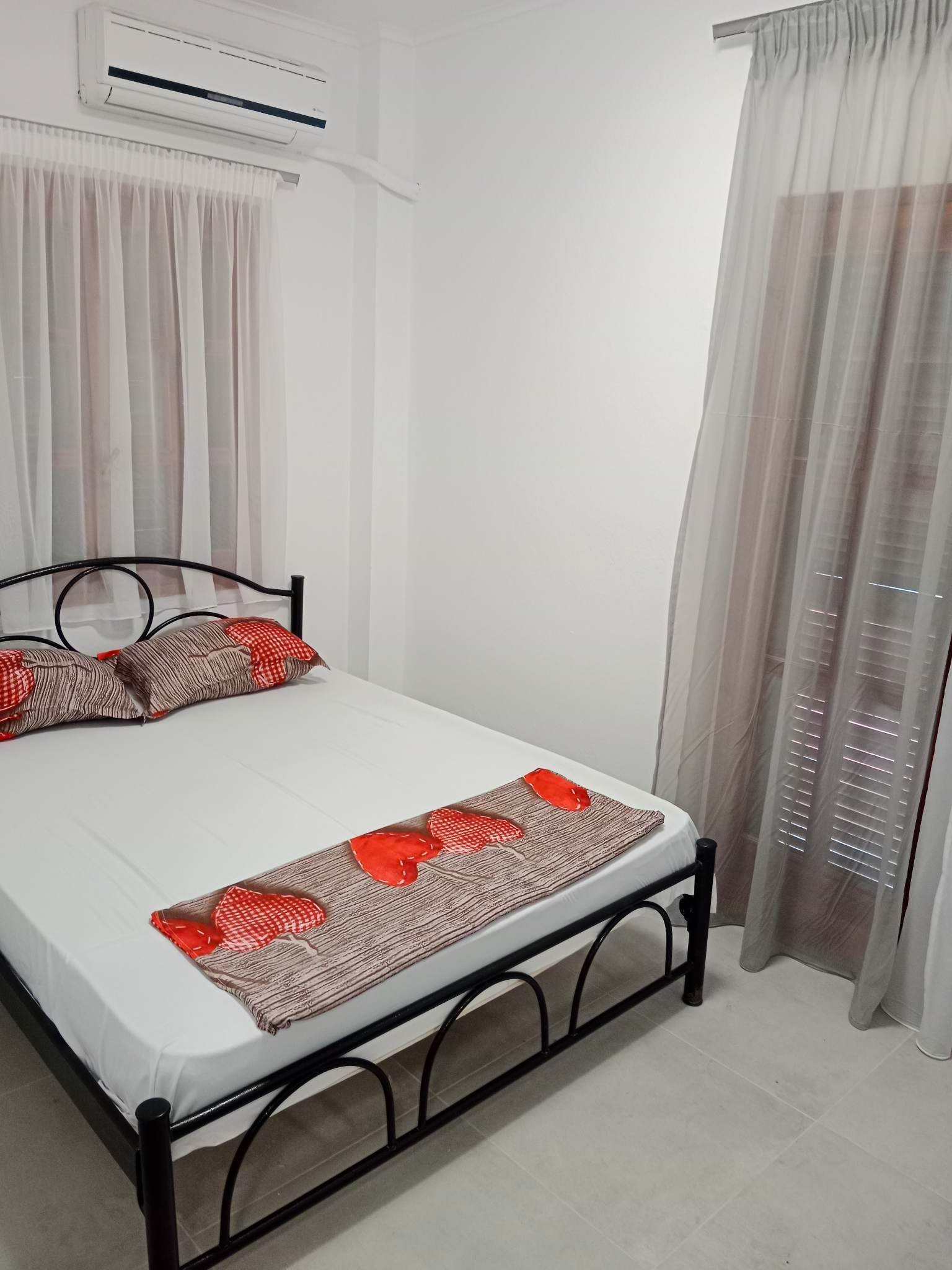 Апартман ХРИСТИЈАН 2 во Неа Плагиа. За 4-5 лица. 100 метри од плажа. Имате соба со брачен кревет, кујна – трпезарија – дневна заедно. Кревет на извлекување во дневната соба. Можност за уште еден дополнителен кревет. Опремена кујна за приготвување и послужување храна и пица. Клима и Wi-Fi се вклучени во цената. Апартманот се наоѓа на прв кат. На располагање имате и двор со скара.