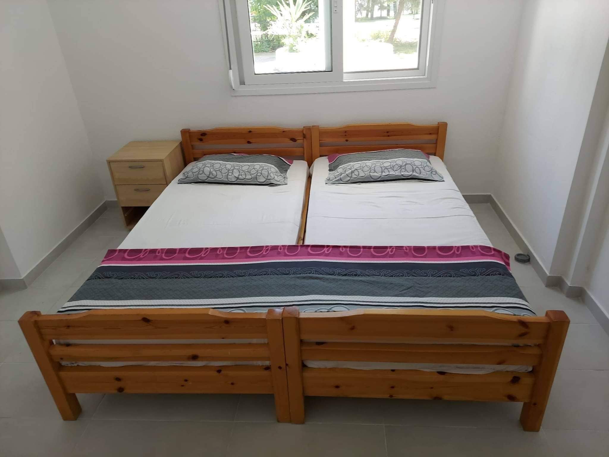 Апартман ХРИСТИЈАН 3 во Неа Плагиа. За 4-5 лица. 100 метри од плажа. Имате соба со 2 единечни кревети, кујна – трпезарија – дневна заедно. Во дневната соба, кревет на извлекување и еден единечен кревет. Можност за уште еден дополнителен кревет. Опремена кујна за приготвување и послужување храна и пица. Клима и Wi-Fi се вклучени во цената. Апарманот се наоѓа на приземје. Имате на располагање прекрасен двор со скара