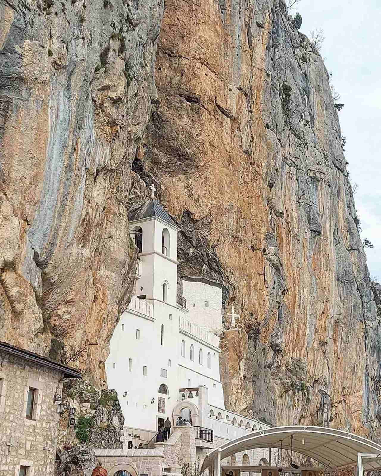 Пристигнување во раните утрински часови во Острошки Манастир. Манастирот Острог е манастир на Српската православна црква сместен со речиси вертикална позадина, издигнат во големата карпа на Острошка Греда. Тој е посветен на Свети Василиј од Острог ( Свети Василије Острошки ), кој бил погребан овде. Она што е интересно дека е изграден во карпа и е несекојдневно за манастир.