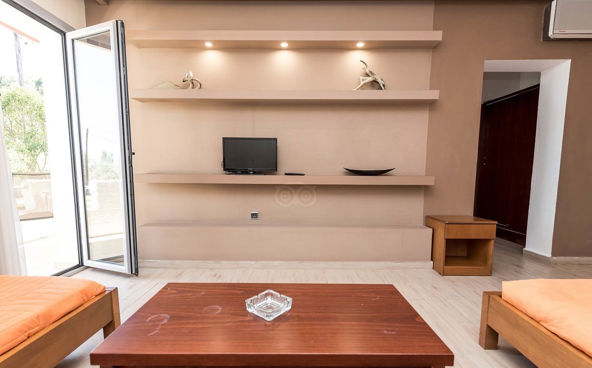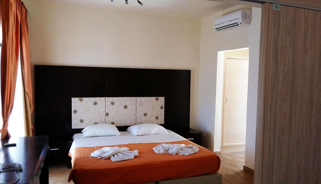 Нови и модерни двокреветни соби во главната хотелска зграда и приватни бунгалови сместени веднаш до главната хотелска зграда кои нудат фасцинантен поглед кон заливот Ахладис и Егејското Море.