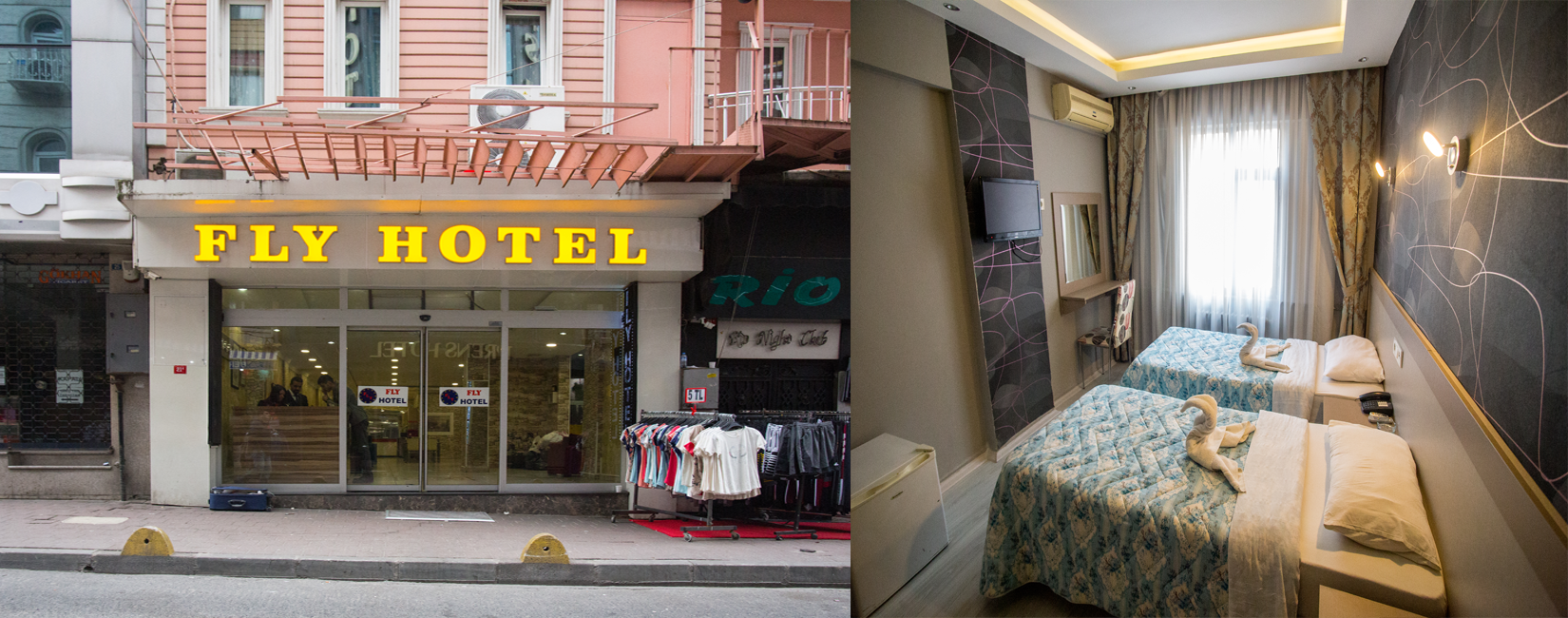 Се наоѓа во Истанбул, на 1,8 км од колоната Константин, Fly Hotel нуди климатизирано сместување и заедничкo лоби. Меѓу објектите на овој имот се наоѓаат ресторан, 24-часовна рецепција и собна услуга, заедно со WiFi низ целиот хотел. Сместувањето има туристичко биро и размена на валути за гости.