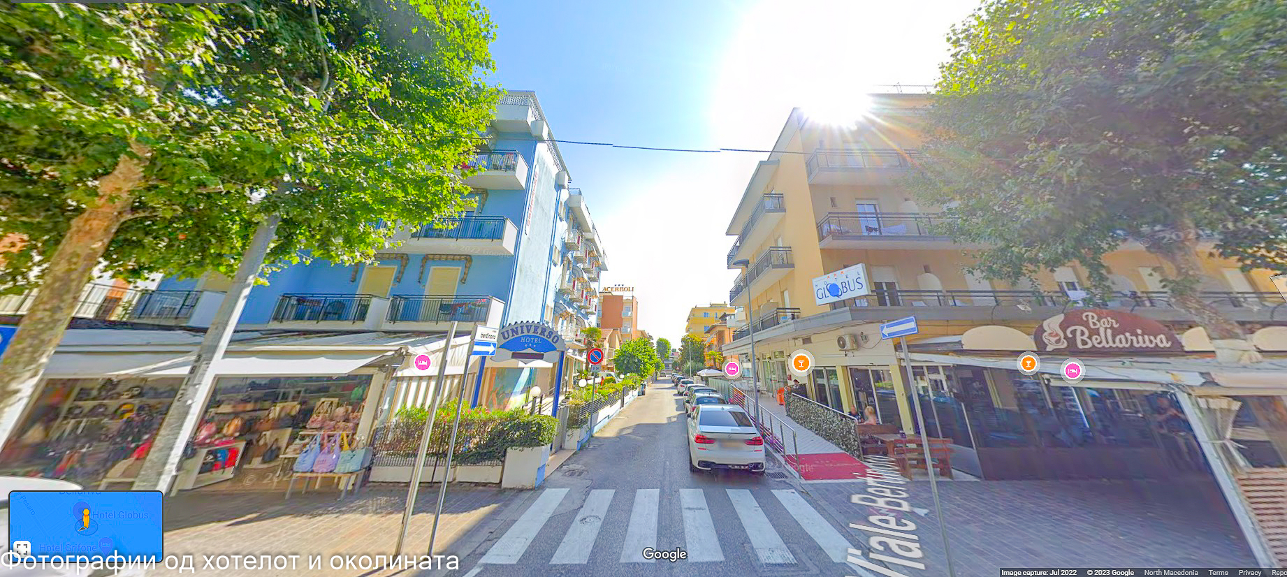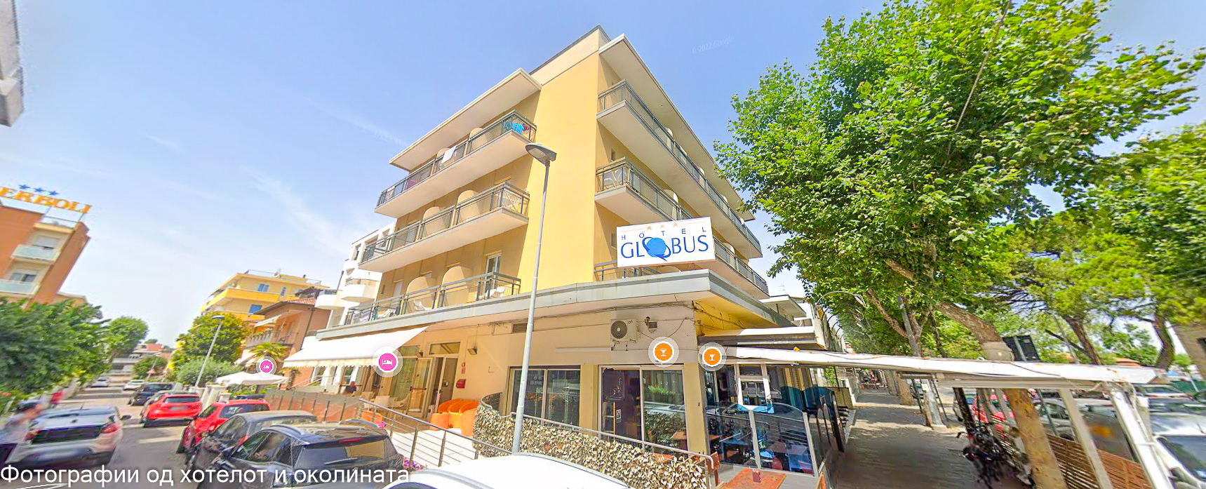 Сместувањето во Римини е во хотелот Глобус кој е хотел со 3 ѕвезди и ги задоволува потребите и барањата на македонските туристи. Хотелот е на само втор ред од плажа, а престојот во хотелот вклучува и појадок за гостите.