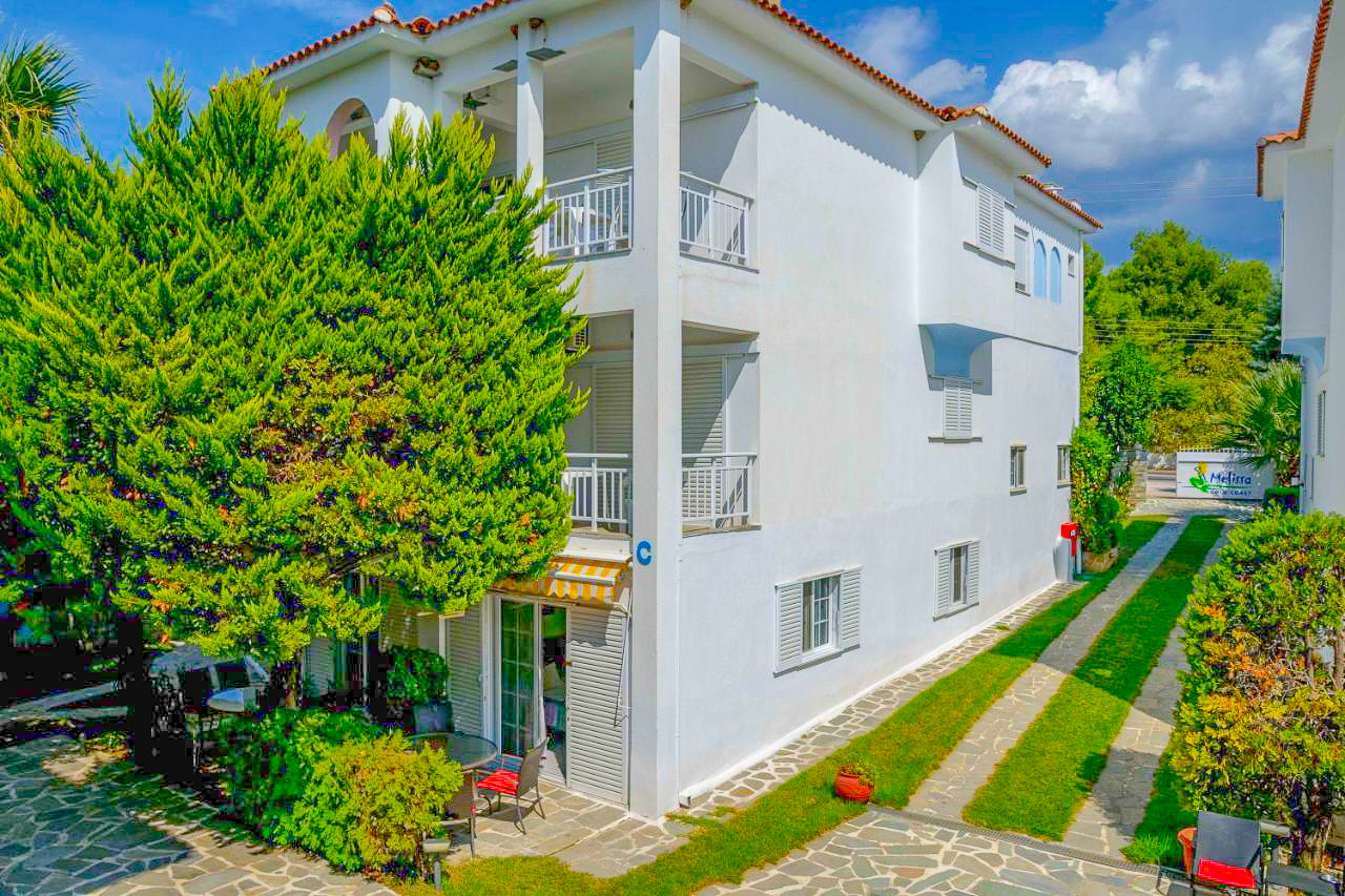 Мелиса Голд Коуст се наоѓа на почетокот на Ситонија. Плажата Псакудија со сино знаме е долга 4км и  е совршена дестинација за семејни одмори , нуди лежалки, чадори и спортови на вода, се наоѓа на само 80 метри.