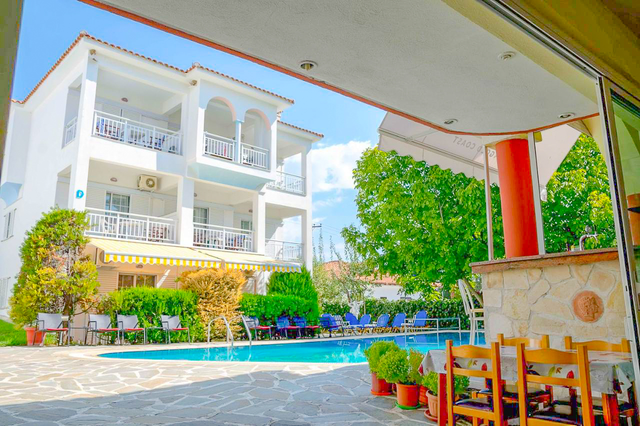 Мелиса Голд Коуст се наоѓа во живописното место, наречено Псакудија, кое се наоѓа на вториот крак на Халкидики, Ситонија. Хотелот се состои од четири главни згради, со поглед на боровата шума,опремена кујна за подготовка на лесна храна и базен и е  на само 80 метри до плажата. Различни типови на соби, рецепција, базен, хидромасажа, детски базен, бар покрај базен, ресторан, бар на плажа со игралиште, лежалки и чадори и спортови на вода.