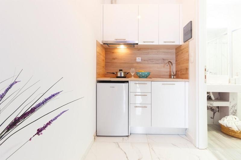 Вилата е реновирана во 2021 година, и располага со 4 студија на прв спрат. Студиата се за 4 лица ( 2 возрасни и 2 деца до 12 години.) Се наоѓа на 70м од плажа. Секое студио има балкон, опремена кујна и тоалет и Wi-Fi.