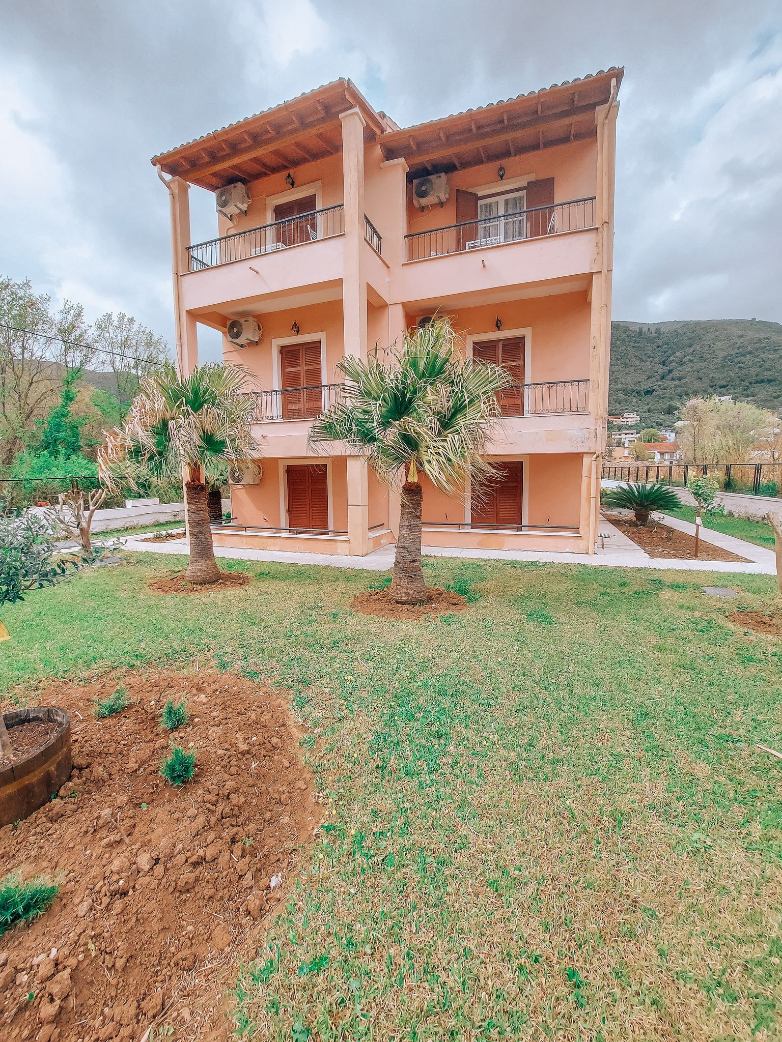 Вила Нина се наоѓа на островот Крф на 300м оддалеченост од AB МАRKET и излегува на средина од улицата во Ипсос. Вилата располага со студиа за 2, 3 и еден апартман за 4 лица. Сите соби се опремени со мини кујна, фижидер, WC и клима уред (се доплаќа 5 евра од ден). Вилата располага со преубав двор и паркинг места до 4 возила. Сите студиа се распоредени на ниско приземје, прв и втор кат. Во објектот нема лифт.