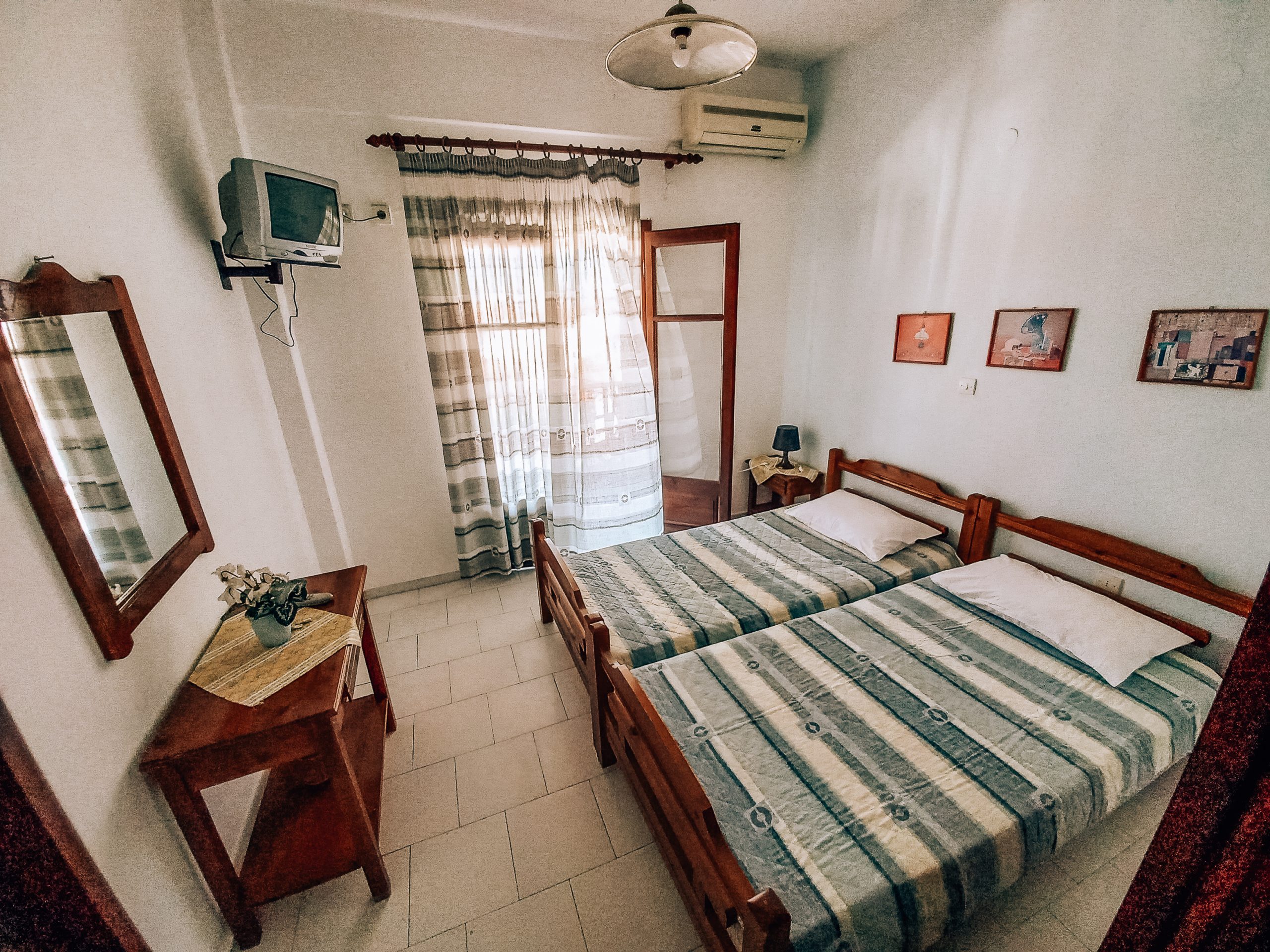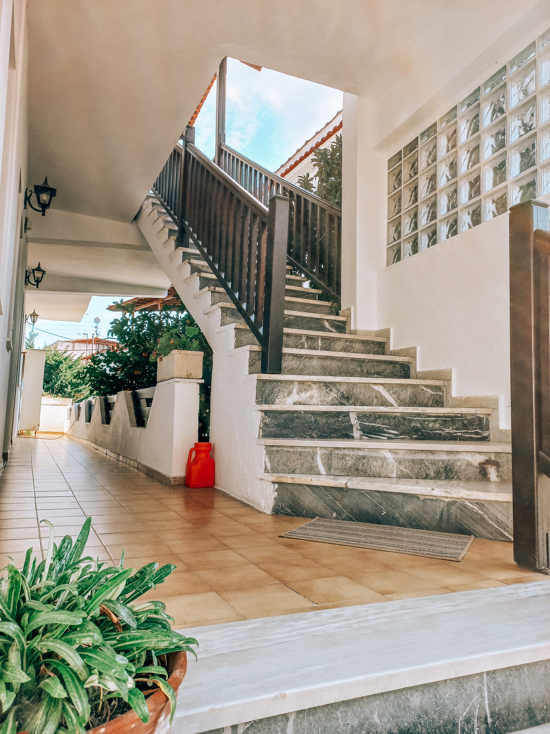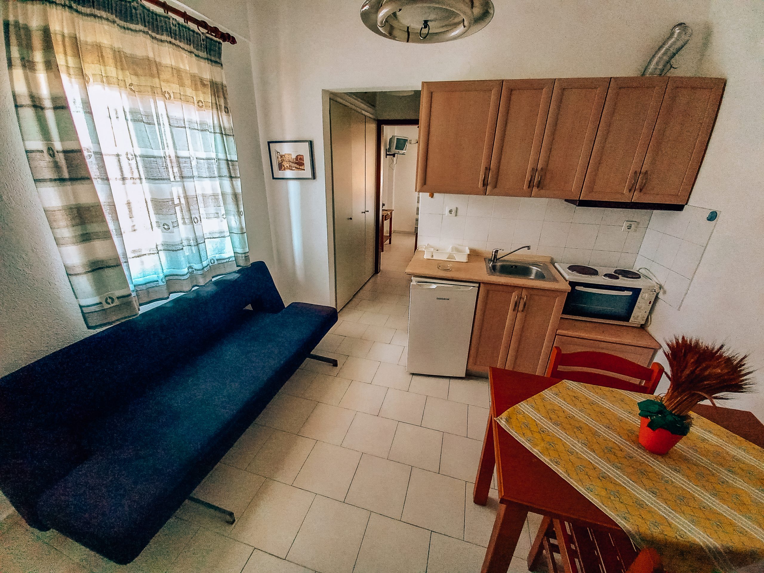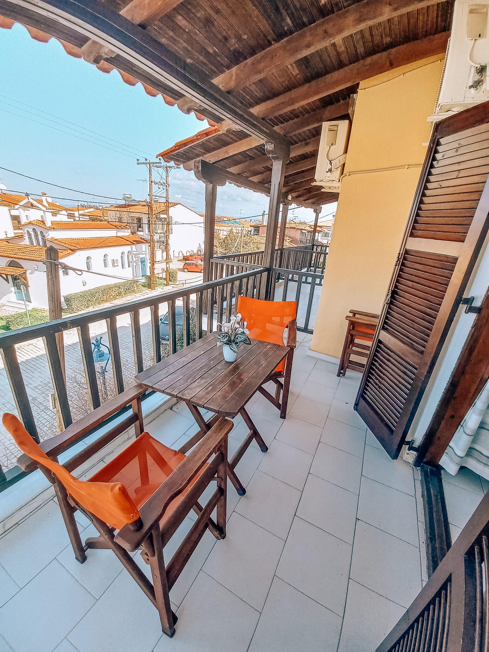 Вила Мескини се наоѓа на 120м од плажа и на 100м од центарот на Полихроно.Располага со 7 апартмани, 4 на високо приземје и 3 апартмани на прв кат. Секој апартман е опремен со мини кујна, бања, балкон и ТВ. Во апартманите во спалната има два одвоени кревети и еден единечен кревет и во кујната има кревет на спуштање, за две деца до 11.99год. или пак еден возрасен. И еден помал апартман со брачен кревет во спалната и кревет на спуштање во кујната, за 2 деца до 11.99 или пак еден возрасен. Wi-Fi е вклучено во цената. Користење на клима во Јули и Август е вклучена во цената, во Јуни и Септември се доплаќа