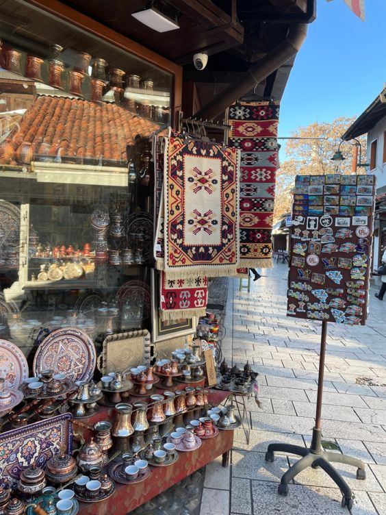 Безброј, продавници, сувенирници богати со  бакарни предмети каде што можете да си купите сет за кафе или карактеристични локални сувенири или пак килими за вашиот дом, сето ова е лоцирано на Кујунџилук улицата.