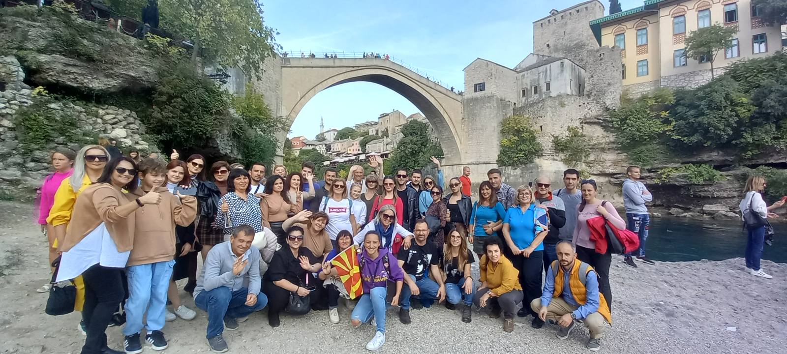 Се посетува стариот мост, каде што можете да направите фантастични фотографии . Голем дел од туристите доаѓаат во Мостар за да го видат мостот, но Мостар има многу повеќе за истражување. Безброј, продавници, сувенирници богати со бакарни предмети каде што можете да си купите сет за кафе или карактеристични локални сувенири или пак килими за вашиот дом, сето ова е лоцирано на Кујунџилук улицата. Ова е интересна улица (со калдрма) за прошетка, ако сте за шопинг можете да поминете часови овде. Слободно време околу 3 часа. Заминување кон Сараево. Посета на некој паб во австро-унгарскиот дел доколку има интерес од страна на групата. Ноќевање
