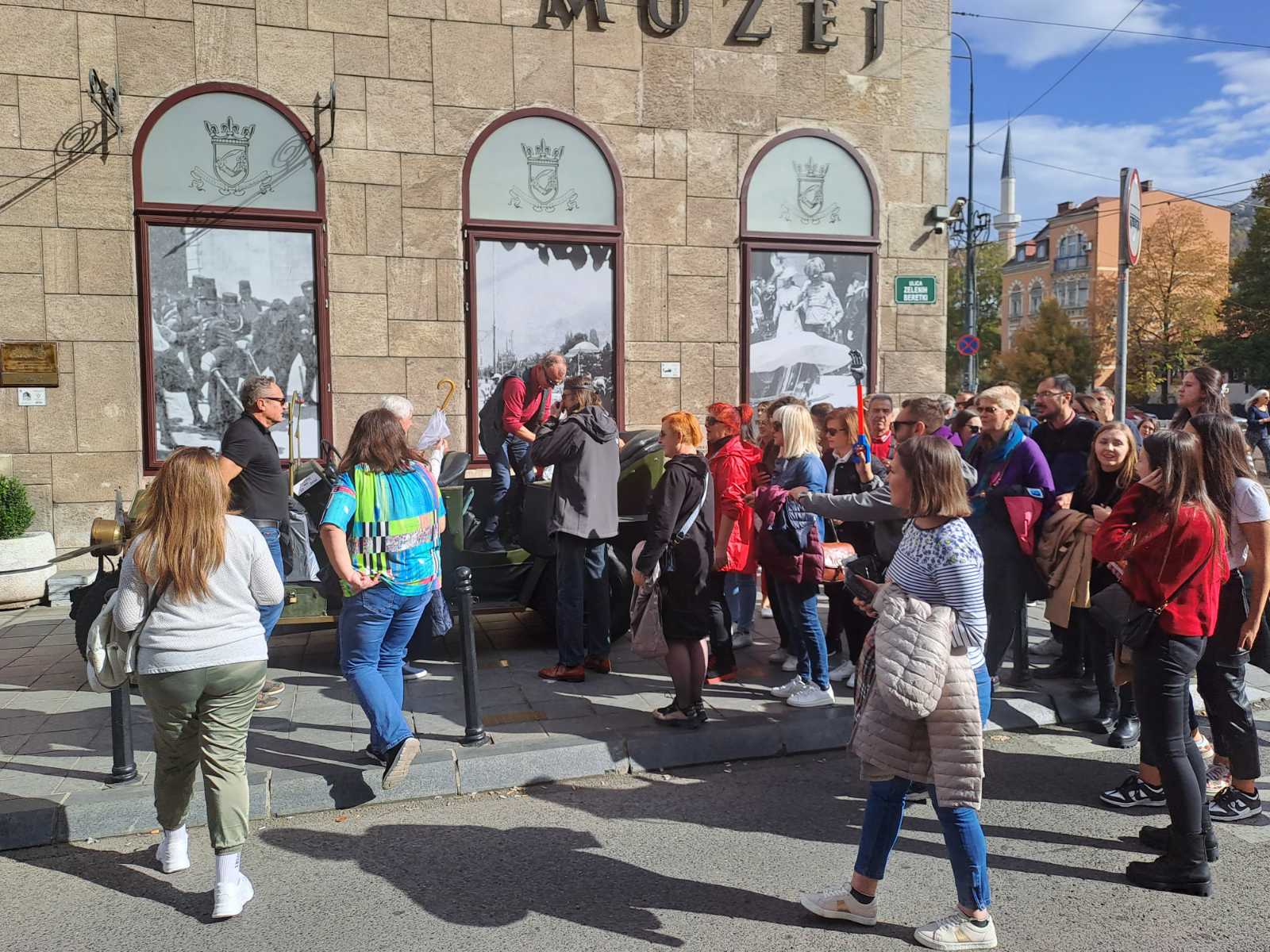 Пристигнување во Сараево во раните утрински часови. Разгледот започнува од “Vijecnica”па се продолжува до местото каде е извршен атентат врз Франц Фердинанд од страна на Гаврило Принцип, хотел Европа, австро-унгарскиот дел, плоштадот Маршал Тито, местото каде е формирана групата INDEXI, Бегова Џамија и Башчаршија. Разгледот се прави се со цел патниците подобро да се запознаат со градт. По разгледот групата има слободно време за индивидуални активности. Враќање во хотел во договорено време. Сместување. Ноќеваење