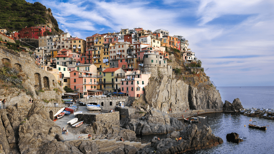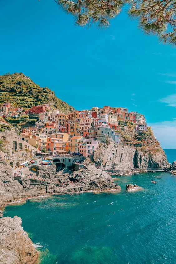Cinque Terre е низа од вековни приморски села на грубото крајбрежје на италијанската ривиера. Во секој од 5-те града, шарените куќи и лозја се лепат до стрмните тераси, пристаништата се полни со рибарски чамци, а траториите имаат специјалитети од морска храна заедно со познатиот сос од регионот Лигурија, пестото. Пешачката патека Sentiero Azzurro покрај карпата ги поврзува селата и нуди прекрасни погледи на море.