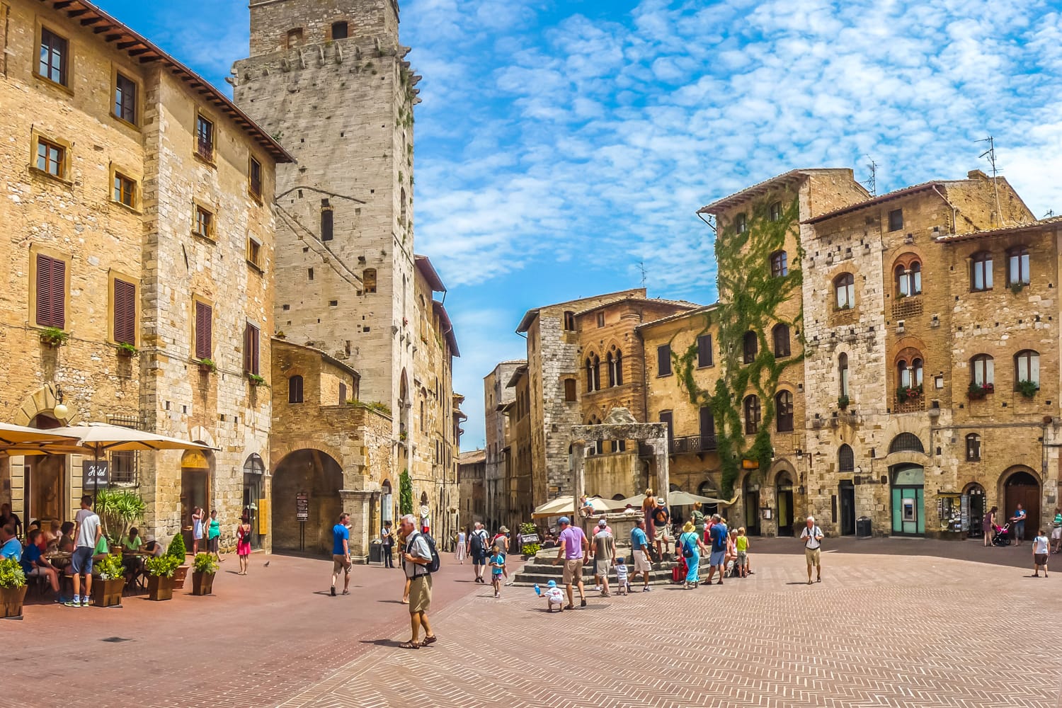 Појадок. Ден предвиден за факултативен излет во градовите Сиена и Сан Џимињано. Пристигнување во Сиена, веројатно најубавиот средновековен град во Италија, вечниот ривал на Фиренца. Срцето на Сиена е нејзиниот централен плоштад Il Campo, познат по трките со коњи Palio кои тука се одржуваат два пати годишно. Разглед на градот: црквата San Domenico, Дуомото на Сиена – Metropolitana di Santa Maria Assunta, Pallazo Salimbeni и Piazza Salimbeni и плоштадот.. Слободно време за индивидуални прошетки и активности. Во договорено време патувањето го продолжуваме кон Сан Џимињано. Пристигнување во San Gimignano типично тосканско ридско градче, лоцирано југозападно од Фиренца. Опкружен со ѕидови од 13от век, неговиот стар град е лоциран на Piazza della Cisterna, триаголен плоштад обиколен со средновековни куќи. Градот на Убавите кули од 1990год. заради своето богато историско и културно значење е под заштита на УНЕСКО. Сан Џимињано им нуди на посетителите можност да се вратат назад во времето додека уживаат во неговите локални производи, вклучувајќи шафран, одлично црвено и бело тосанско вино и оригинални тоскански десерти. Слободно време за индивидуални прошетки. Во договорено време со водичот враќање во Монтекатини. Слободна вечер за индивидуални активности и прошетки. Ноќевање.