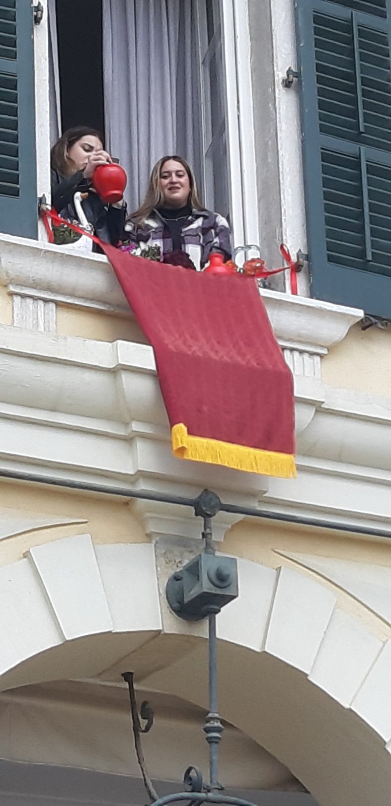 Точно во 11:00 часот, црковните ѕвона го означуваат „утринското воскресение“ и од прозорците на куќите почнуваат да се фрлаат глинени садови полни со вода, во знак на почнување на празникот и истерување на злото. Ова потекнува од стар венецијански обичај со кој за дочекот на новата година се ослободувале старите работи да направат простор за нови и подобри. Друго објаснување за овој обичај е дека има паганско потекло и дека со вревата направена од кршењето, Античките Грци сакале да ја разбудат Персефона, божицата на пролетта и да го забрзаат нејзиното доаѓање. Обичајот е да се земе парче од скршените глинени садови и да се сочува за среќа и здравје до следната година. Филхармонските групи се враќаат на улиците и почнуваат да свират весела музика.