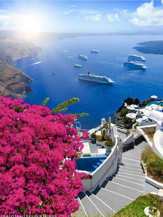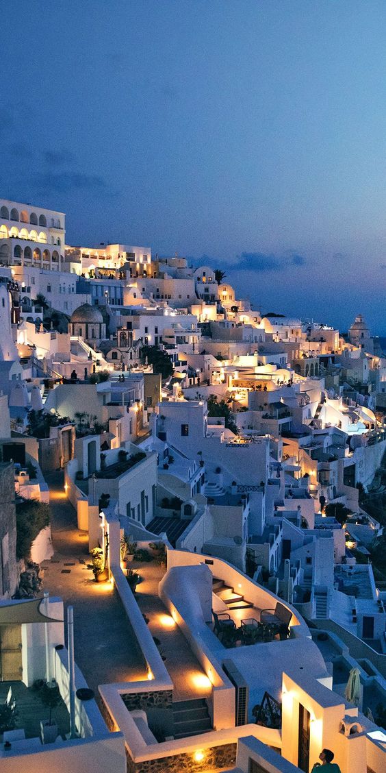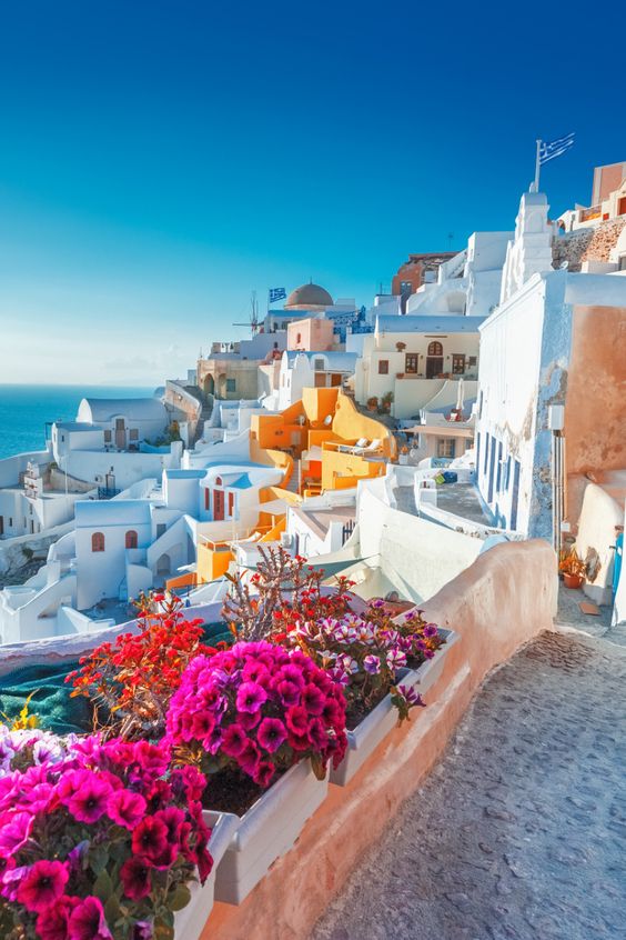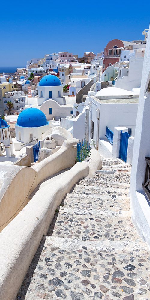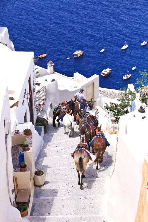 Санторини е познат како еден од најатрактивните грчки острови по својата визуелност – со своите вулкани и бели куќички поставени наспроти живописното сино море, не е тешко да се разбере зошто. Без разлика дали сте заинтересирани за фотографирање или едноставно само Ве воодушевуваат прекрасните погледи, Санторини ќе Ве натера да воздивнете на секој агол. Бели sидови, коцкасти куќички, цркви со сини кровови и улици со калдрма го прават островот скоро како од бајка! Очигледно комбинацијата на бела и сина боја си има своја симболика. Белата боја ја претставува пената на брановите на Егејското Море додека пак сината боја го претставува грчкото небо. Во главниот град Фира има само три пата надолу до пристаништето и повторно враќање назад: со жичара, одење нагоре надолу стотици скали или со магаре. Дури и ако одлучите да не ја направите оваа мала екскурзија, скалите се насекаде: често нерамни и сите на различни висинa и должинa.