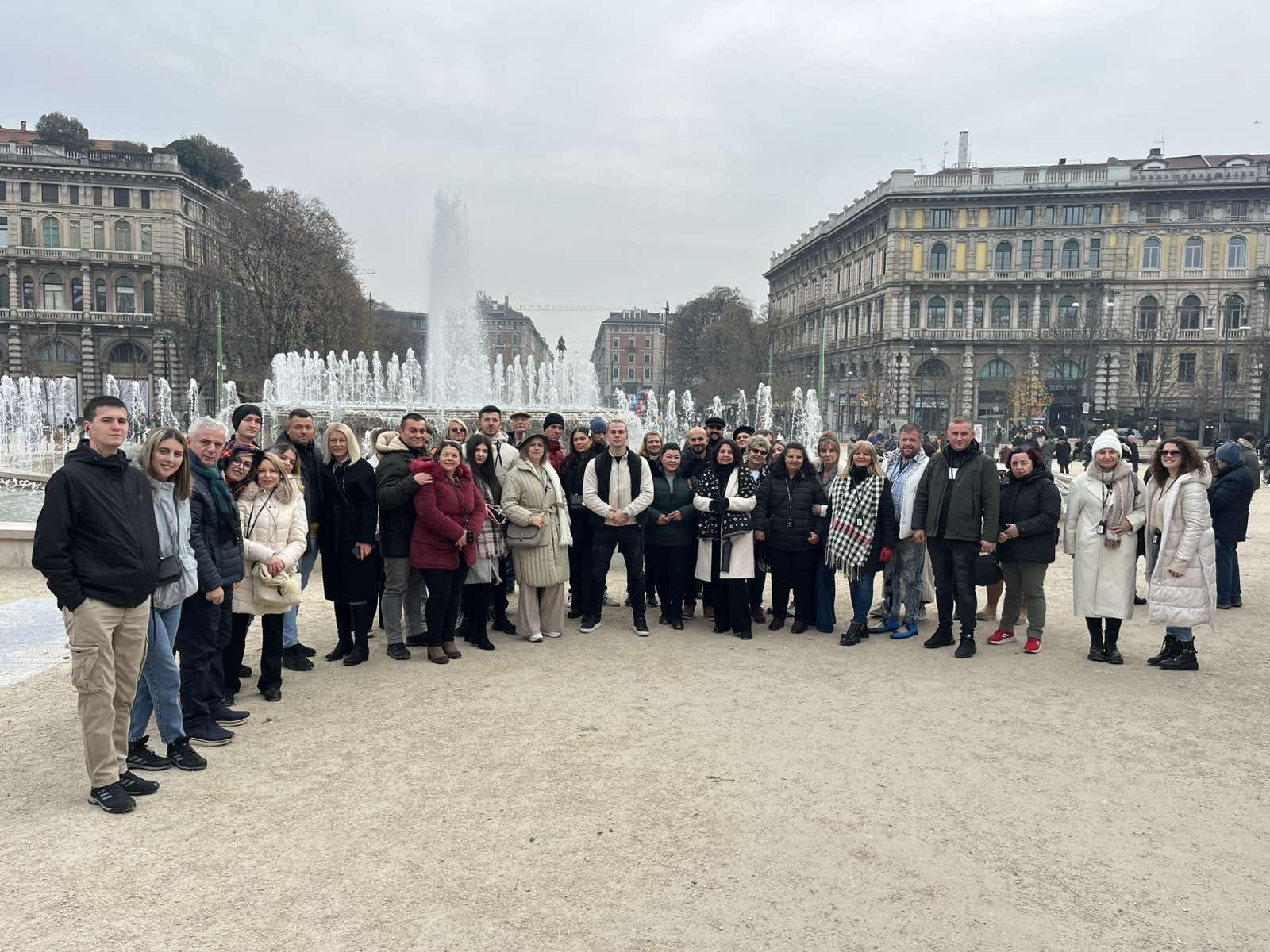 Местото на собир на групата на паркингот кај хотел Русија во 16.30 часот. Поаѓање за Италија во 17.00 часот. Патувањето се одвива преку Србија, Хрватска и Словенија со попатни паузи за одмор и обавување на царински формалности. Ноќно возење.