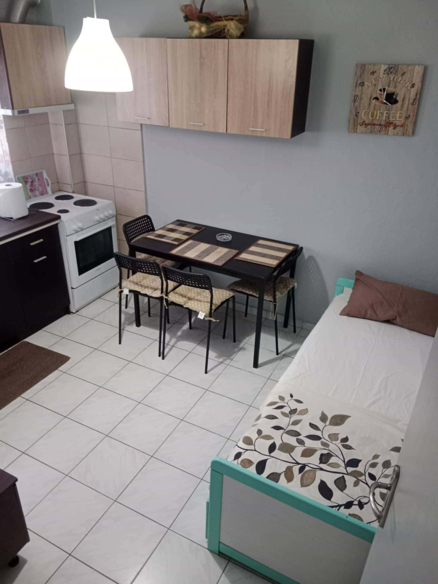 Апартман број1 е за 4 лица. Во едната соба има брачен кревет,и одделна кујна. Во кујната има 2 единечни кревети. Кујната е опремена за подготовка на храна, и има прибор за онолку лица колку што би престојувале. Климата и Wi-Fi се вклучени во цена. Апартманот се наоѓа на приземје.