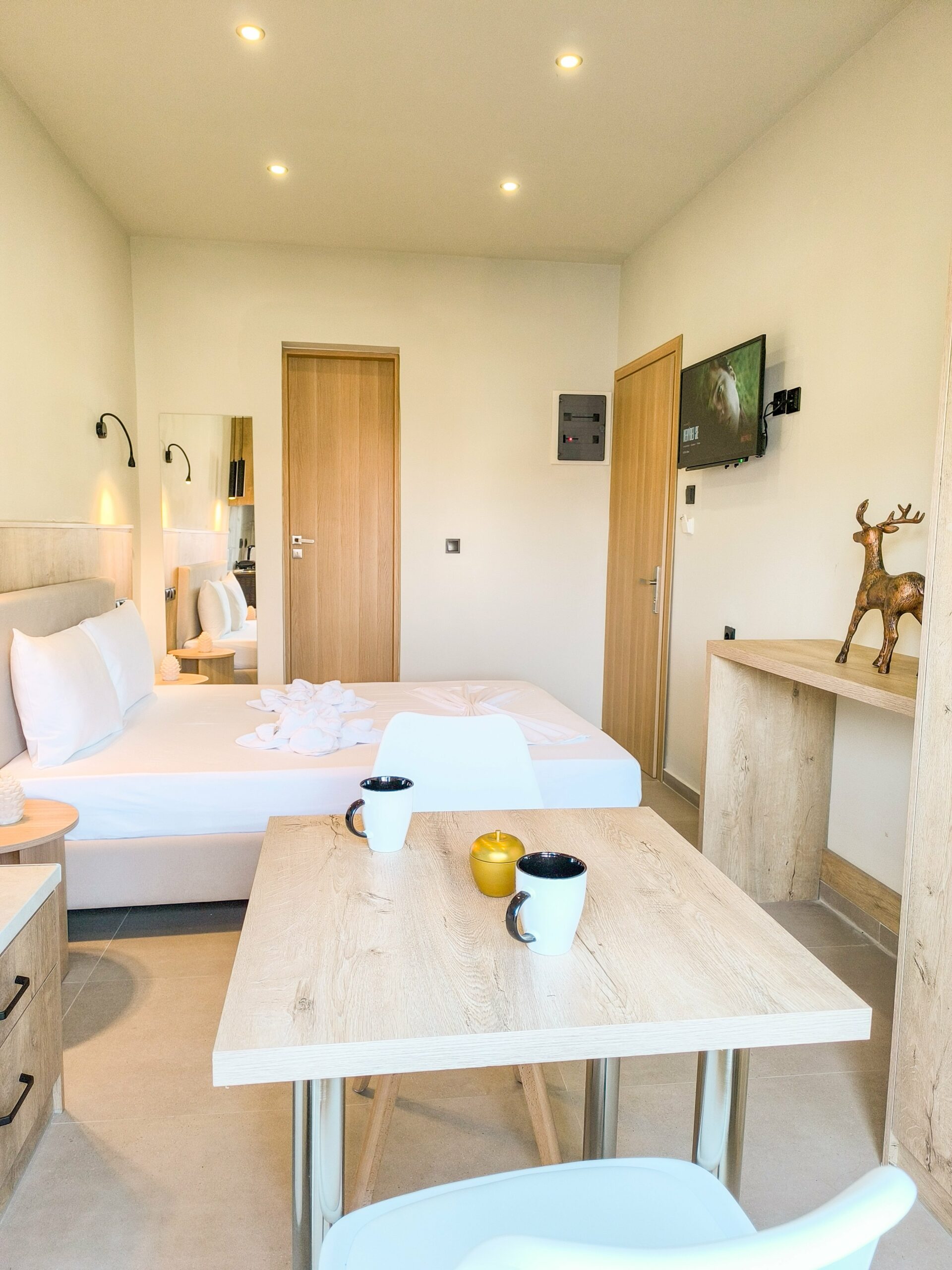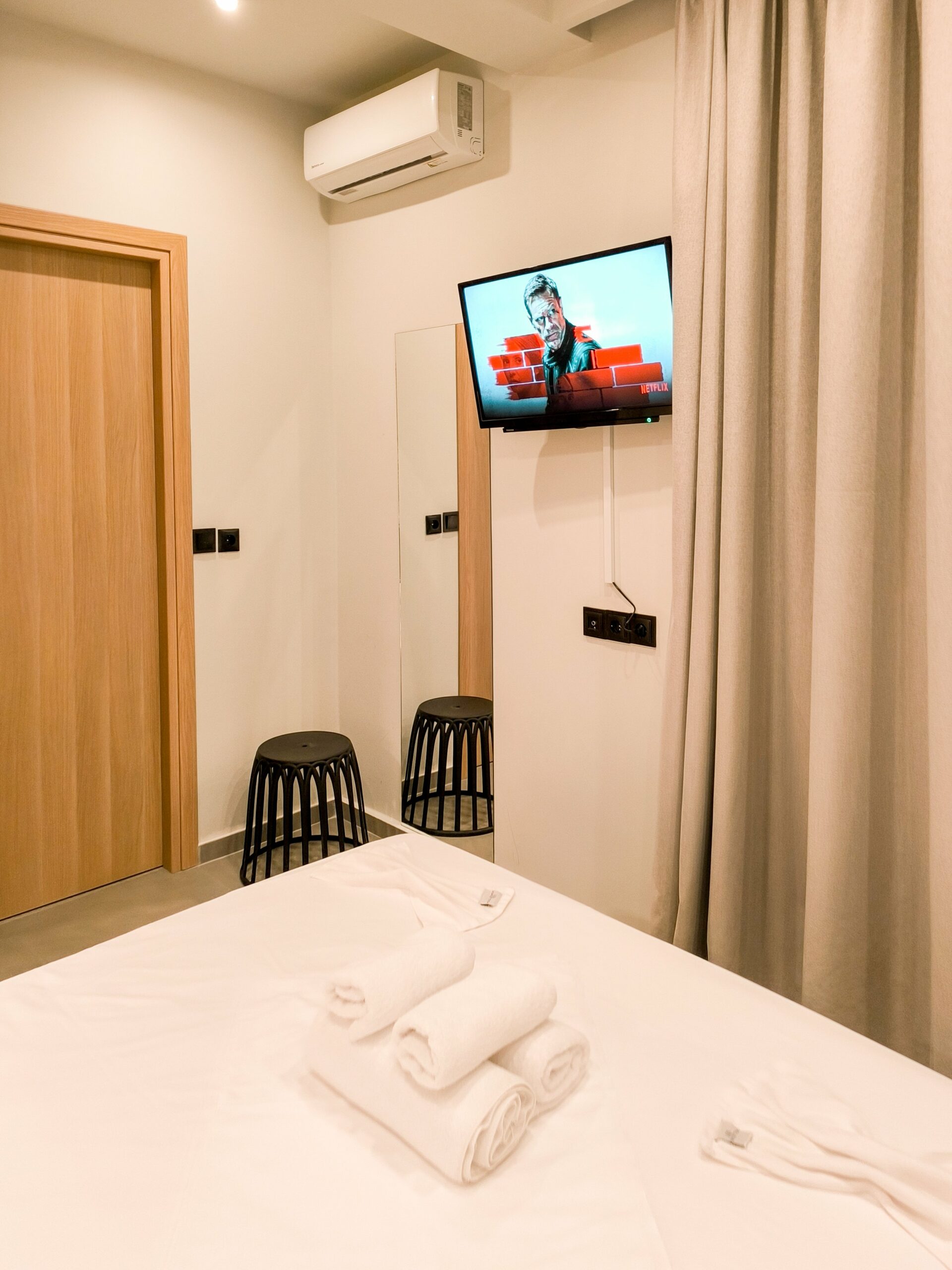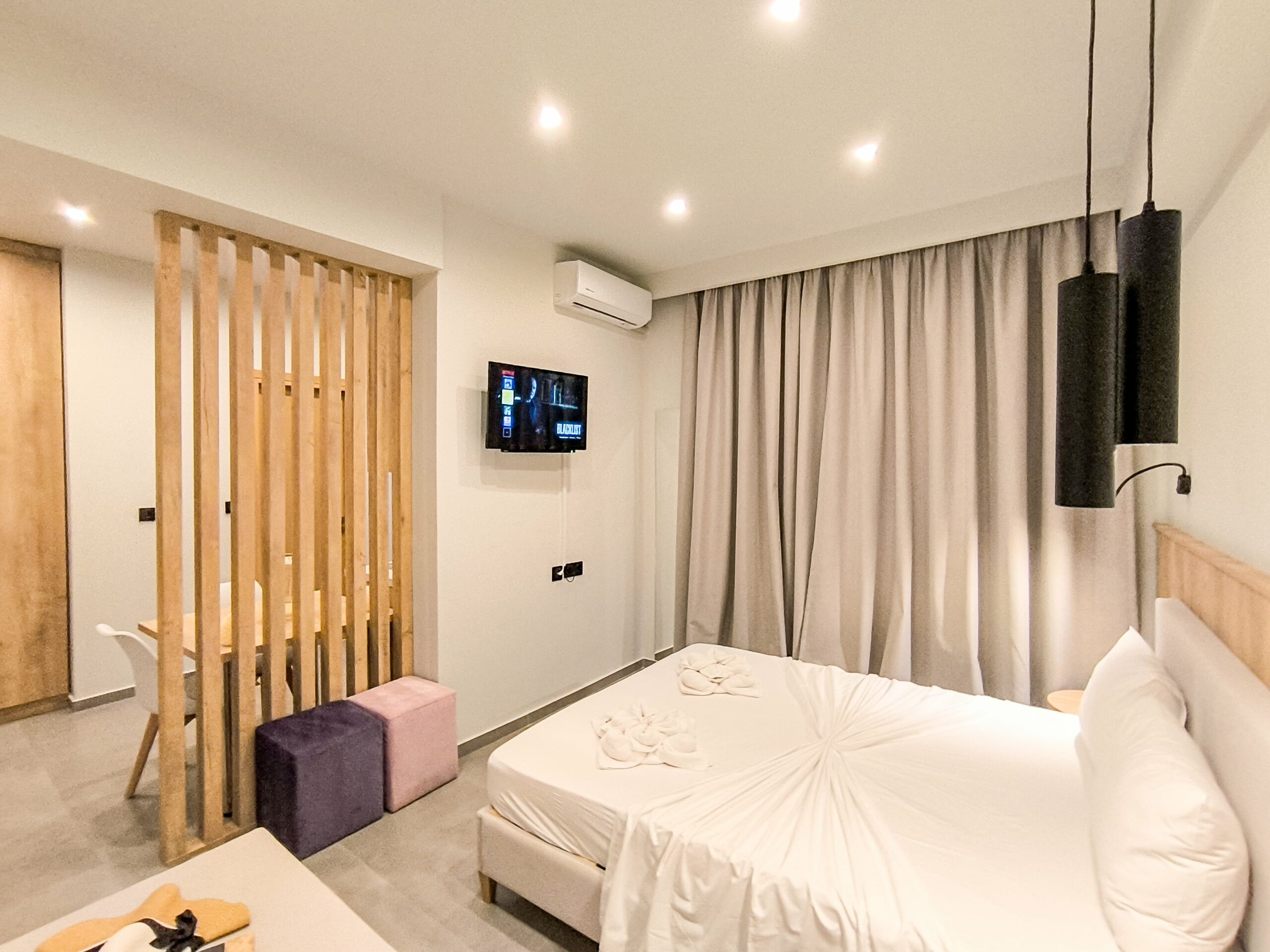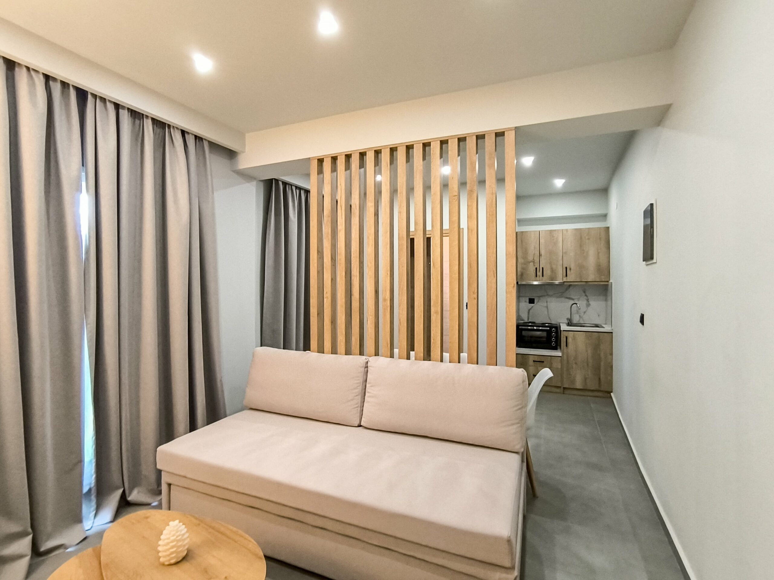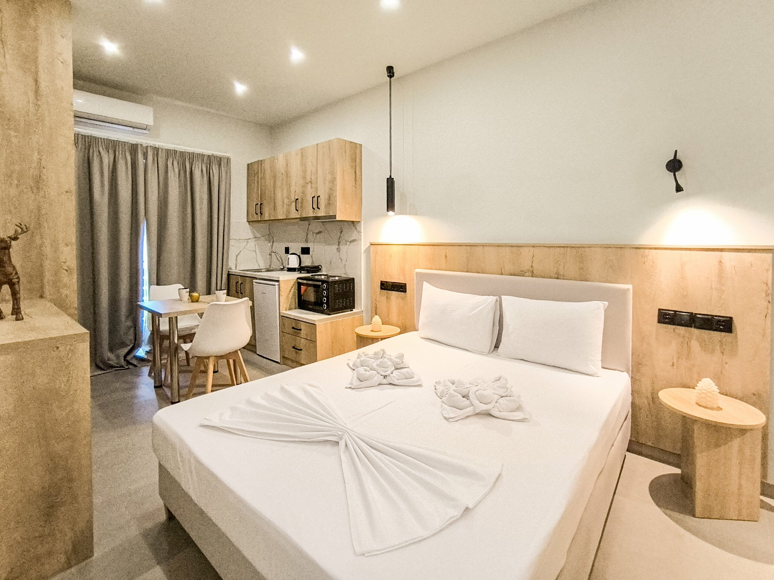 Студио број 4 нуди сместување за 3 лица. Студиото располага со еден брачен кревет и еден кревет на извлекување.