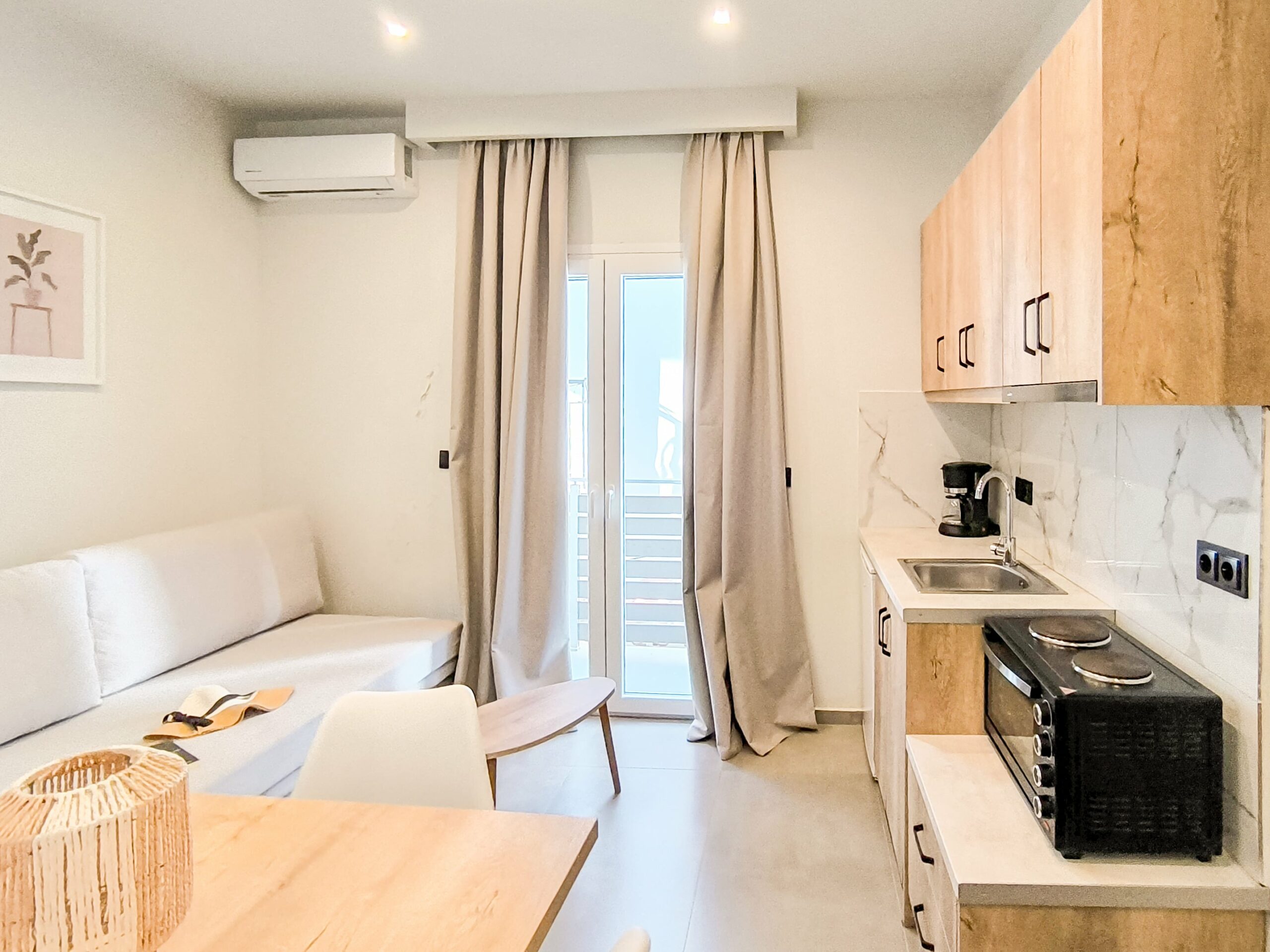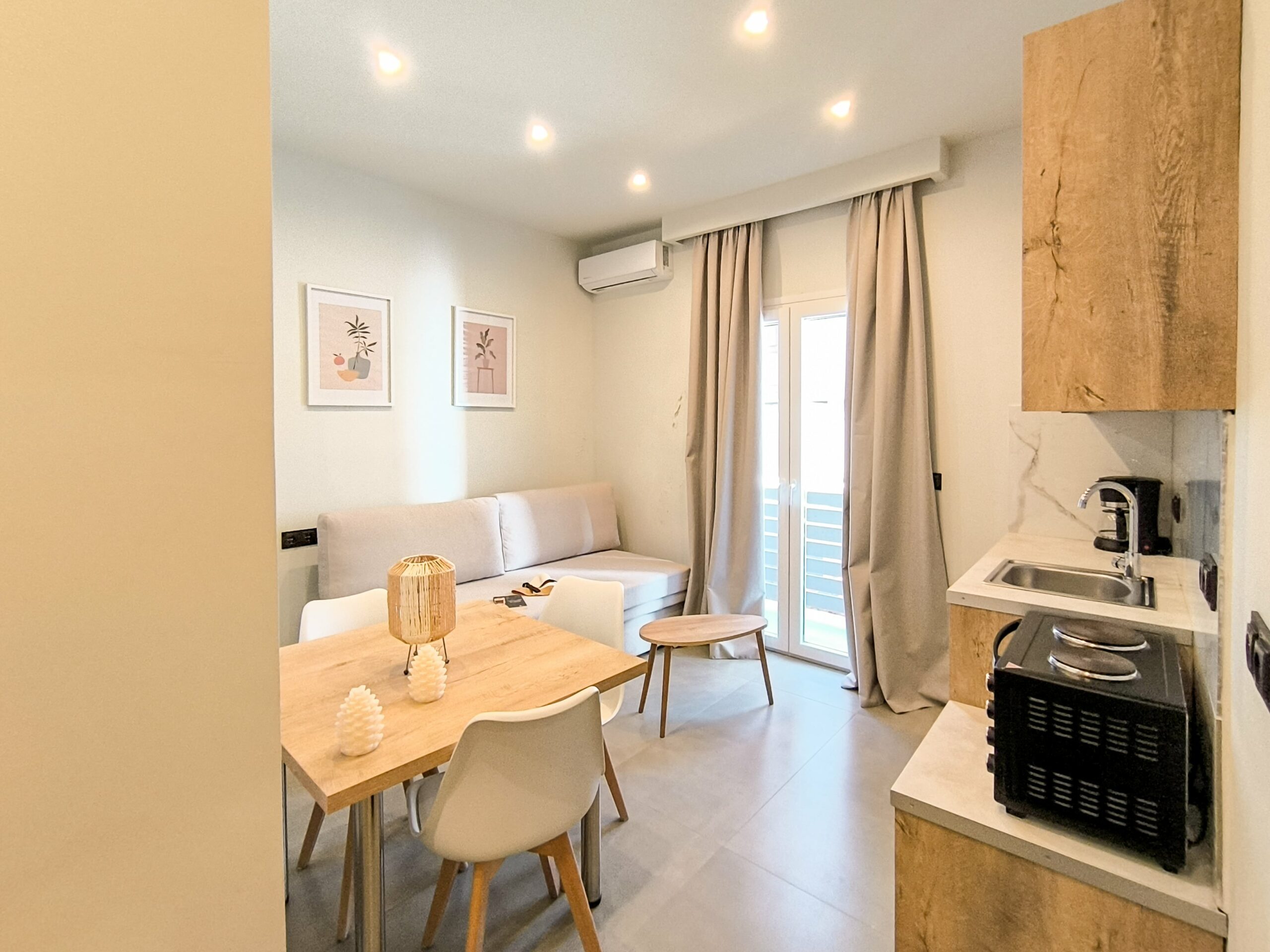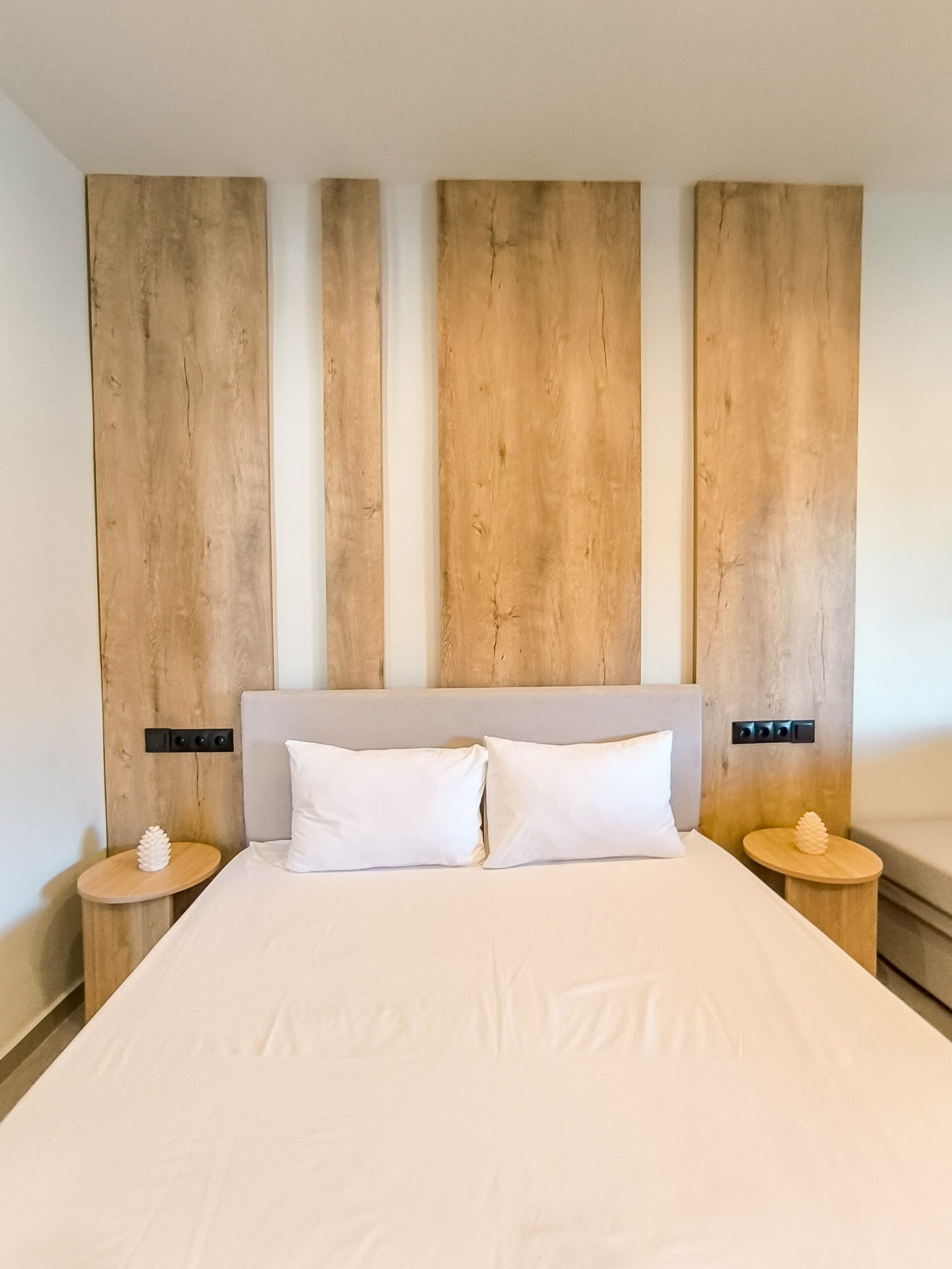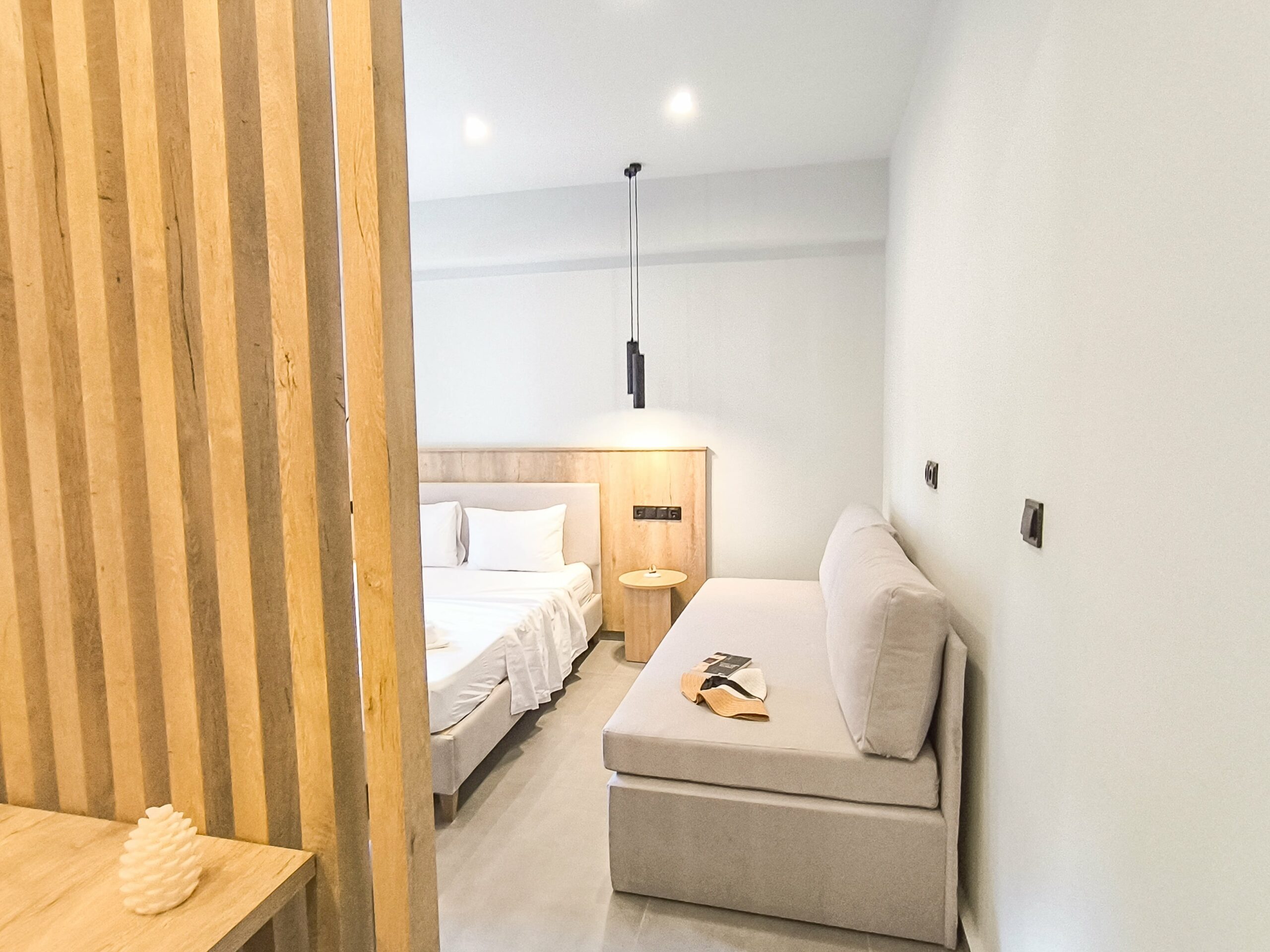 Студио број 4 нуди сместување за 3 лица. Студиото располага со еден брачен кревет и еден кревет на извлекување.