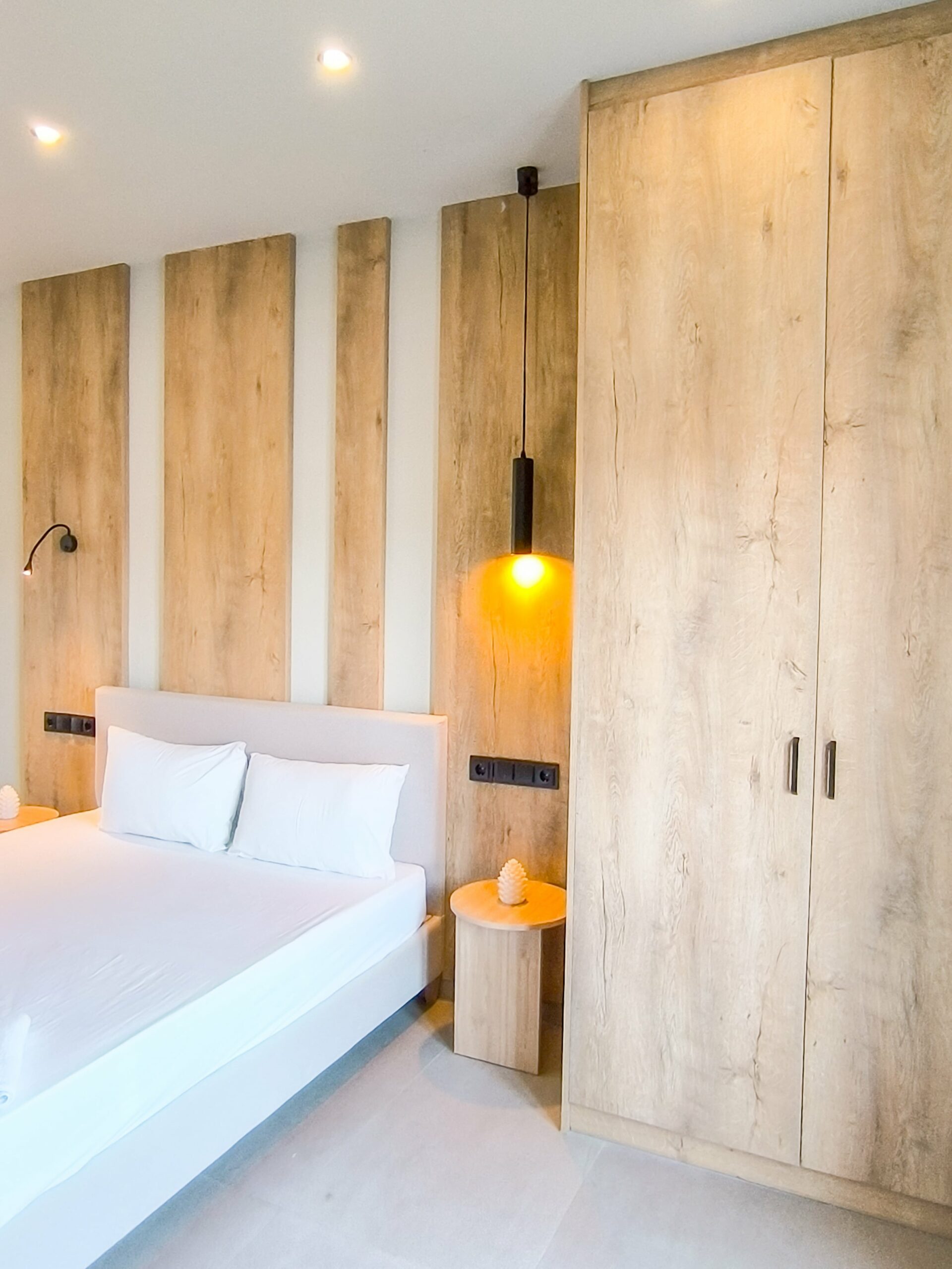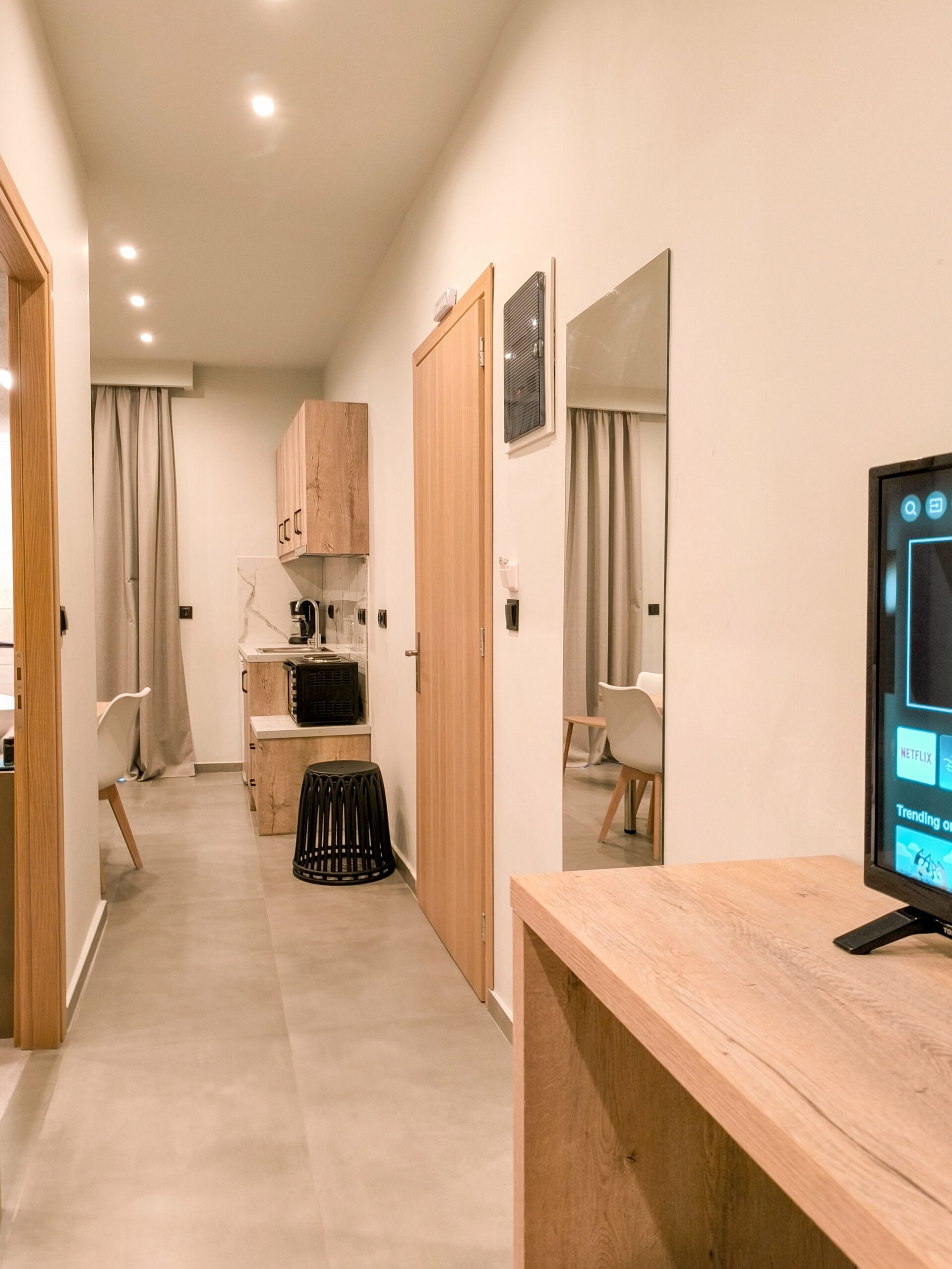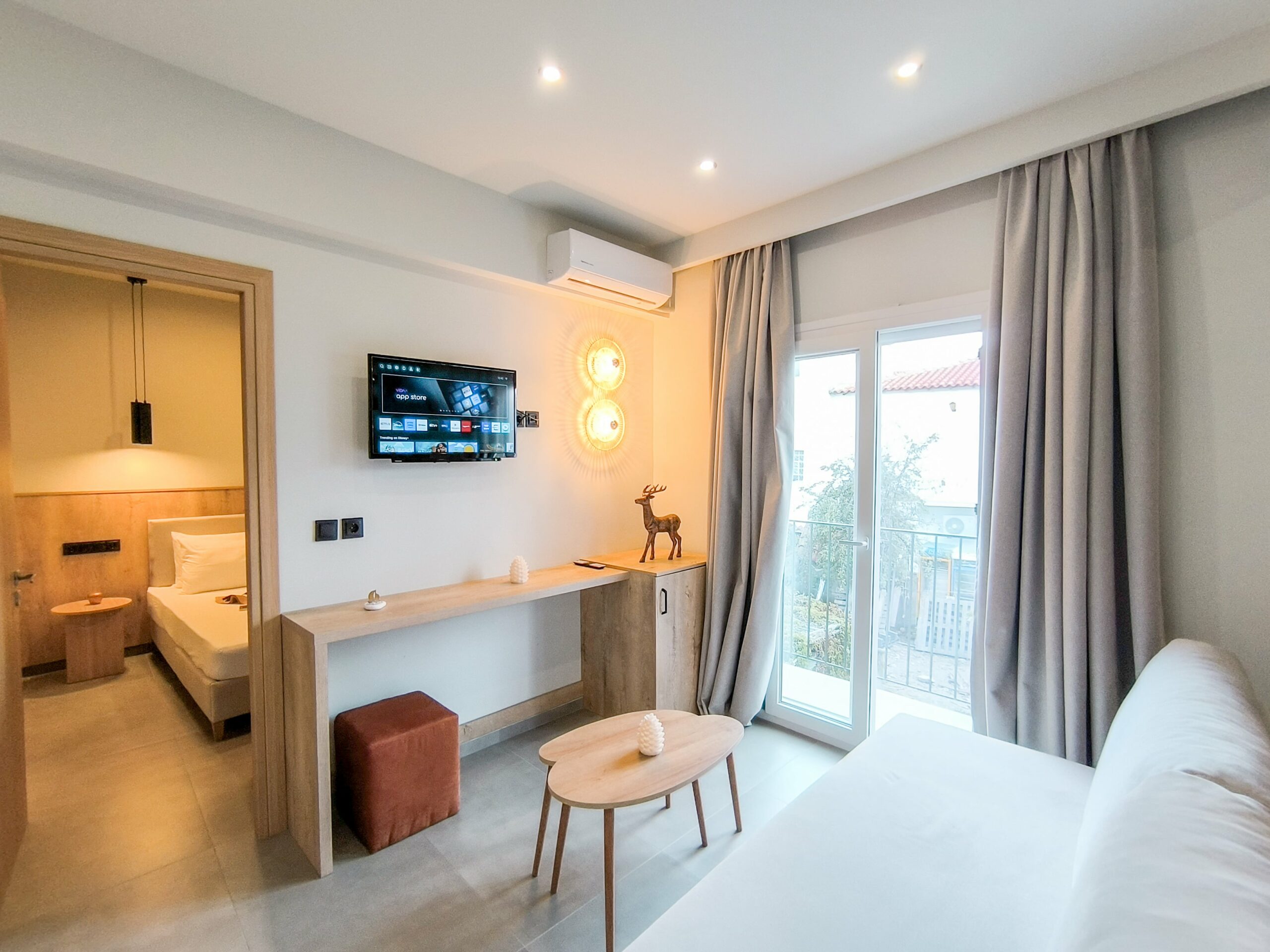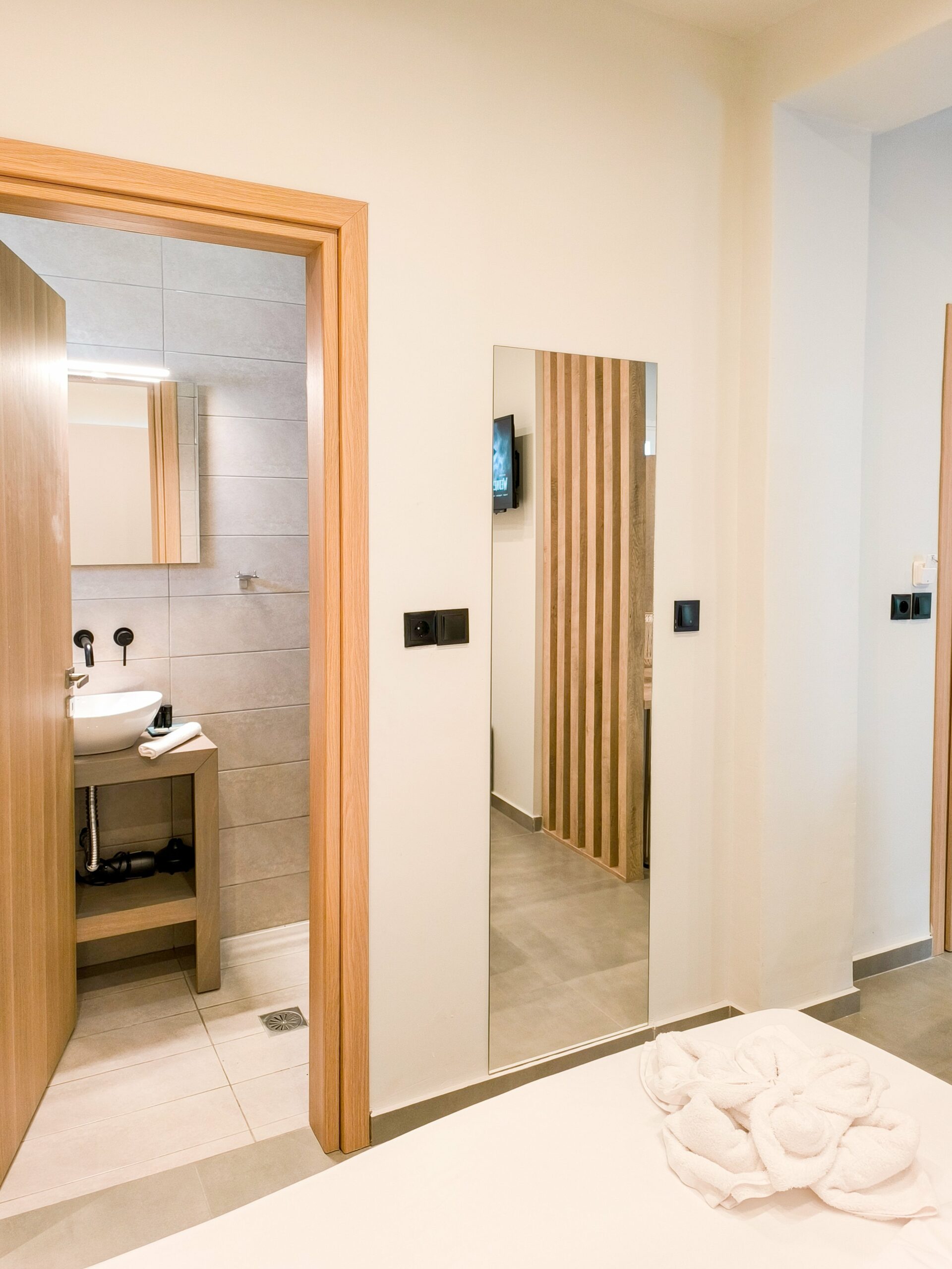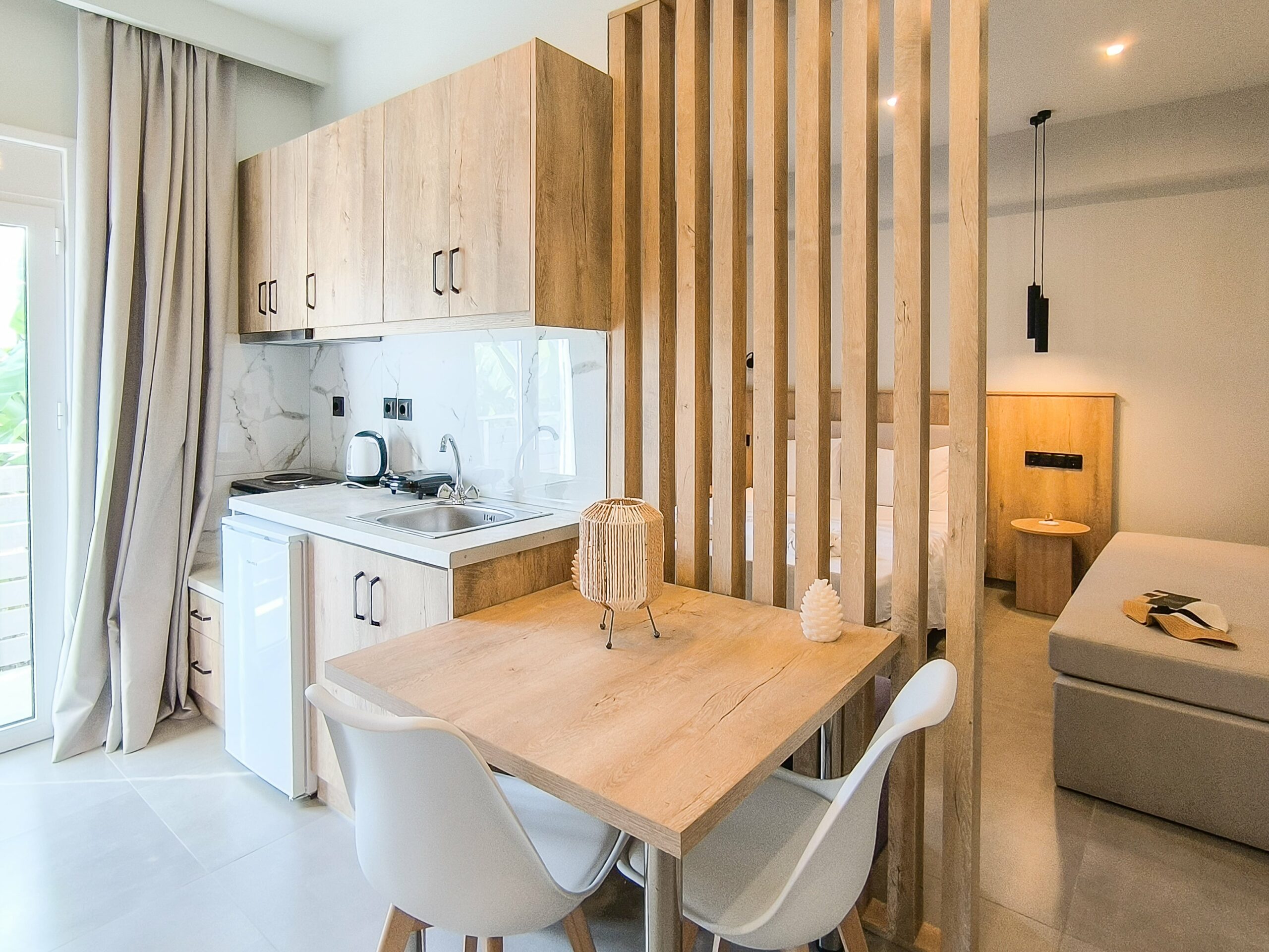 Студио број 4 нуди сместување за 3 лица. Студиото располага со еден брачен кревет и еден кревет на извлекување.