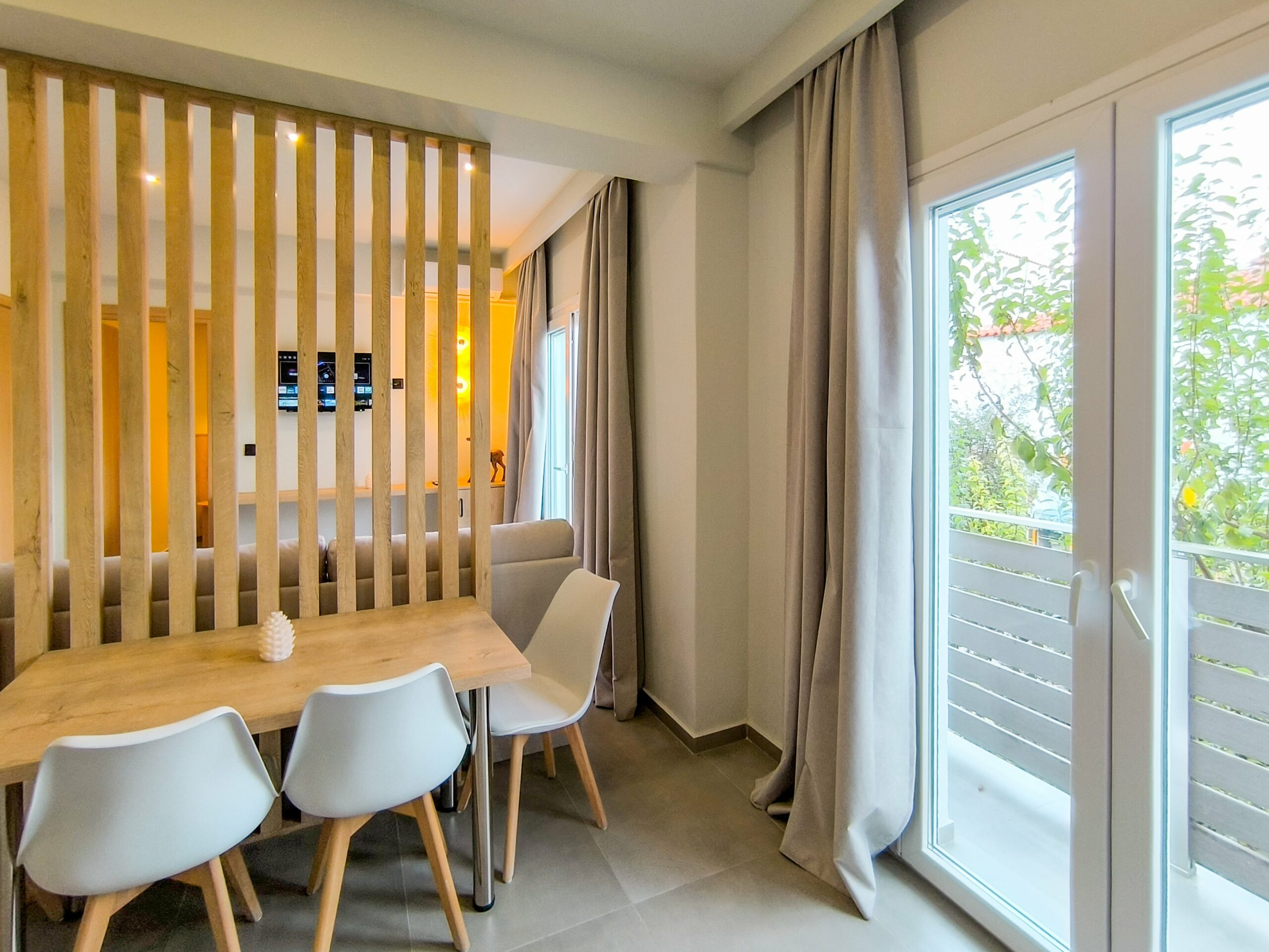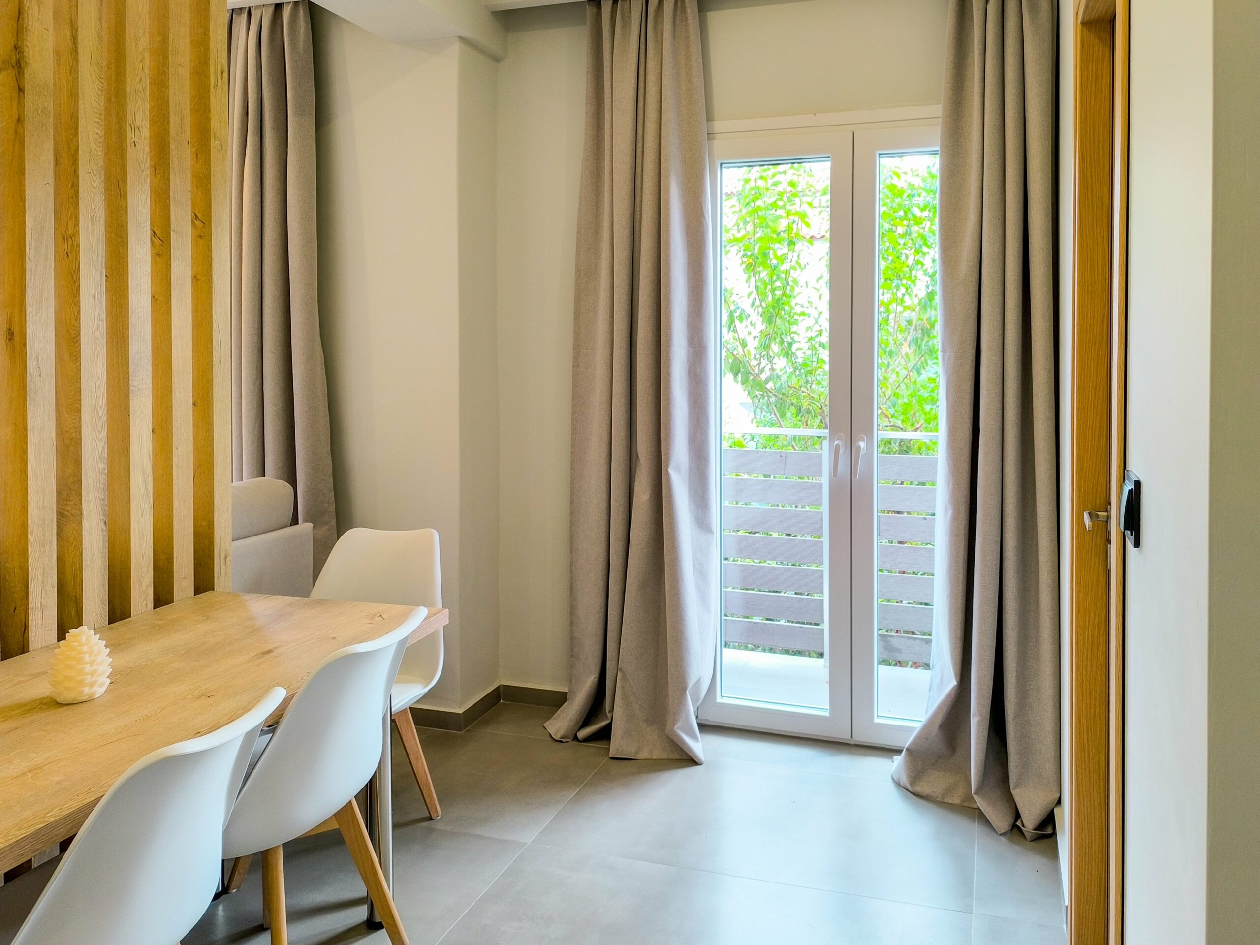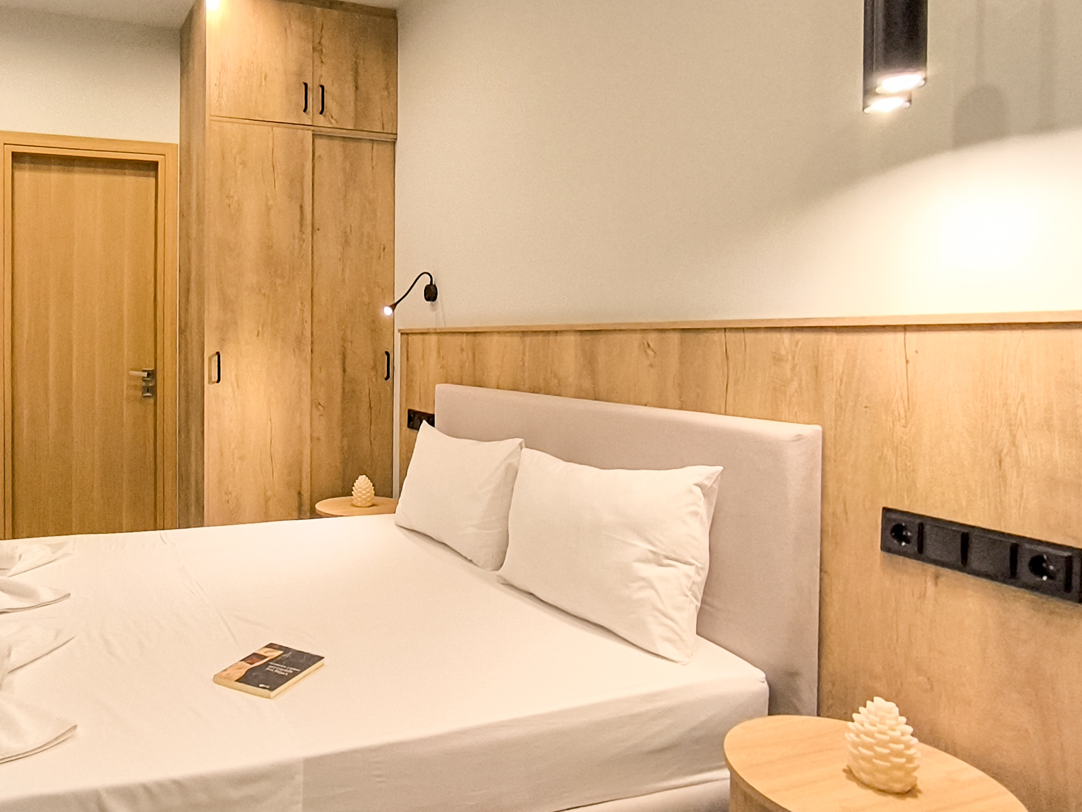 Апартман број 9 нуди сместување за 4 лица. Апартманот располага со брачен кревет и кревет на извлекување. Во овој апартман може да се сместат 4 возрасни лица бидејќи има одвоена спална, и кревет на извлекување во кујна (или 2 возрасни и 2 деца).