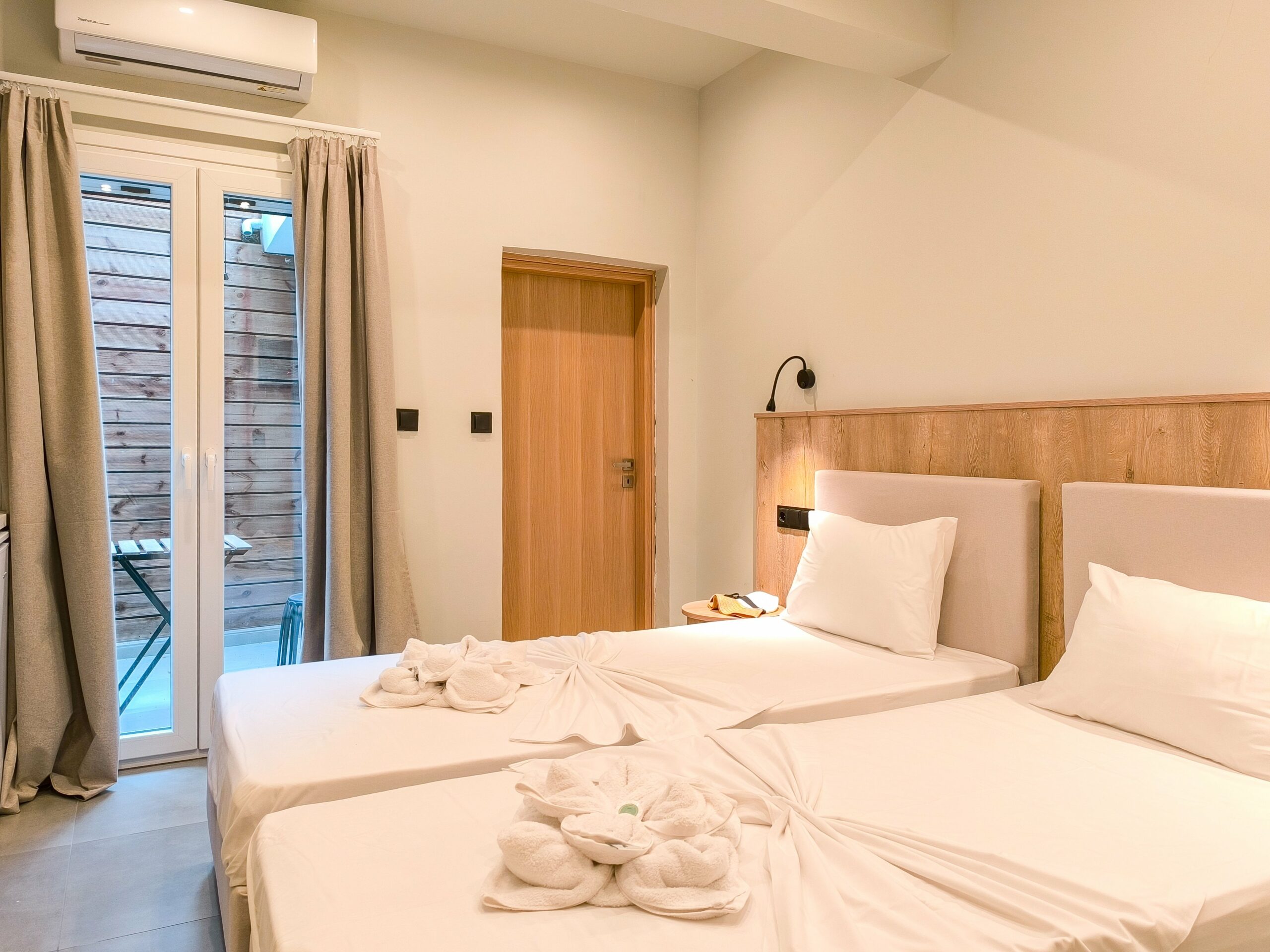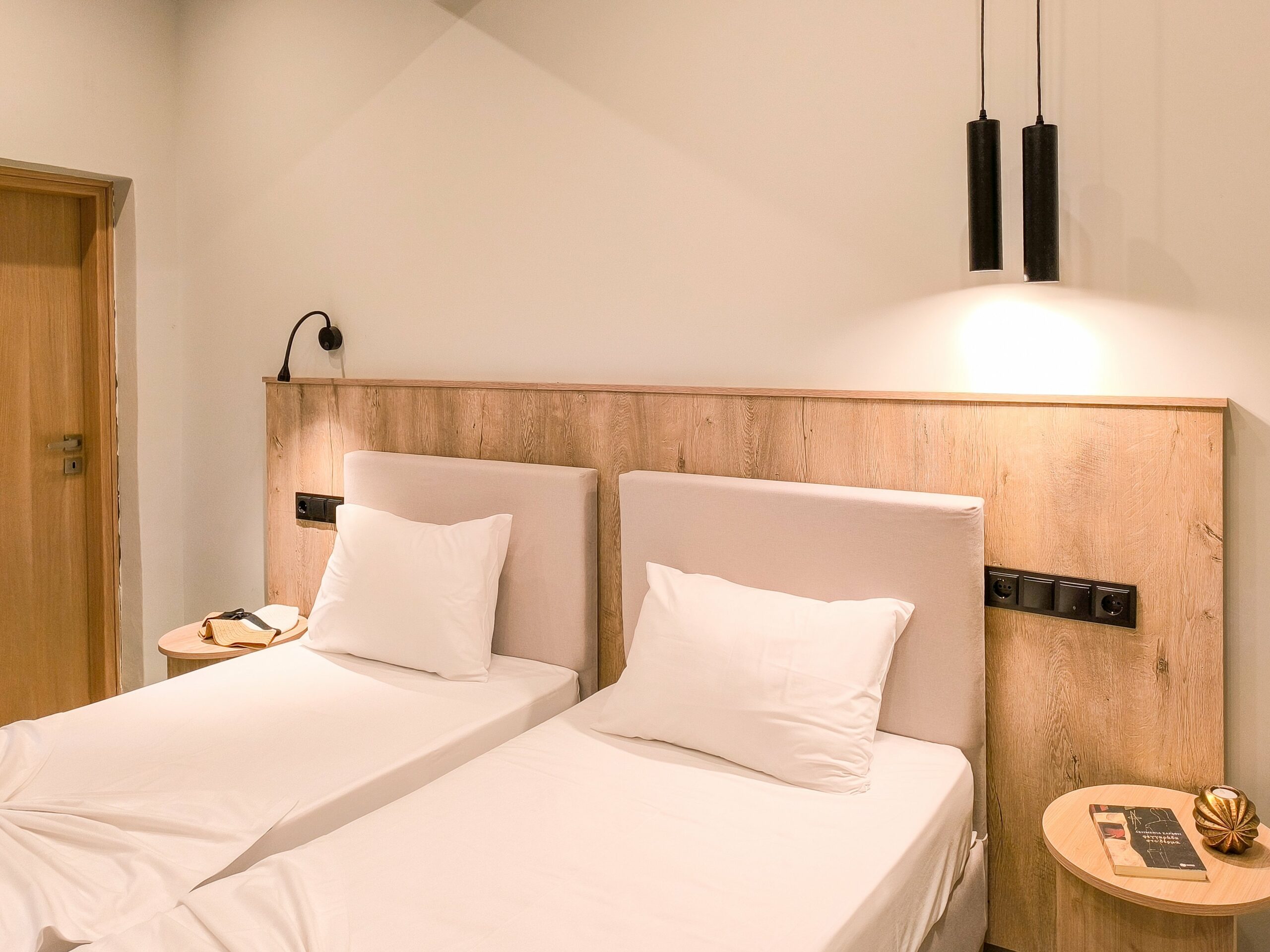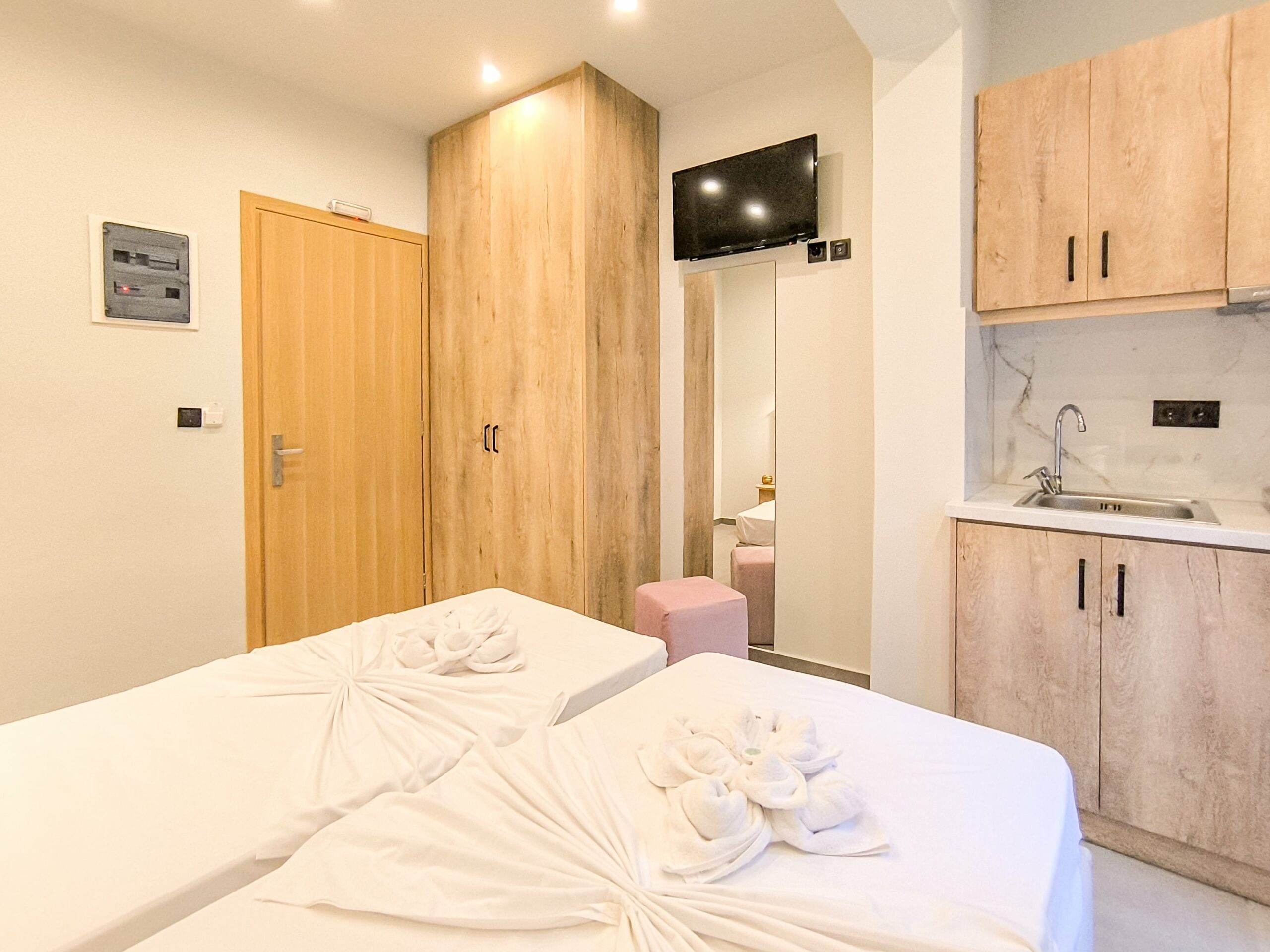 Студио број 3 нуди сместување за 2 лица. Студиото располага со 2 единечни кревети. Нема тераса.
