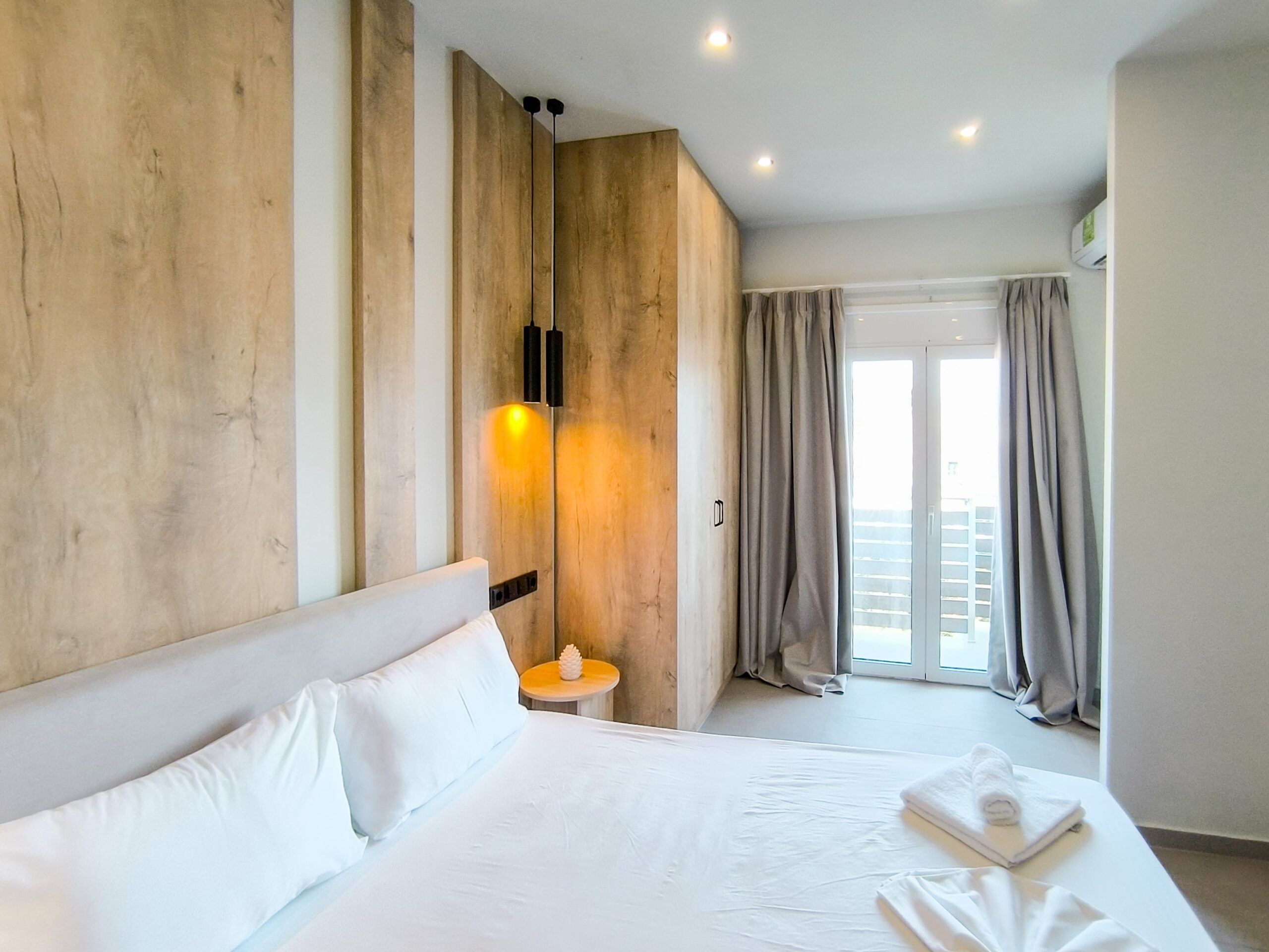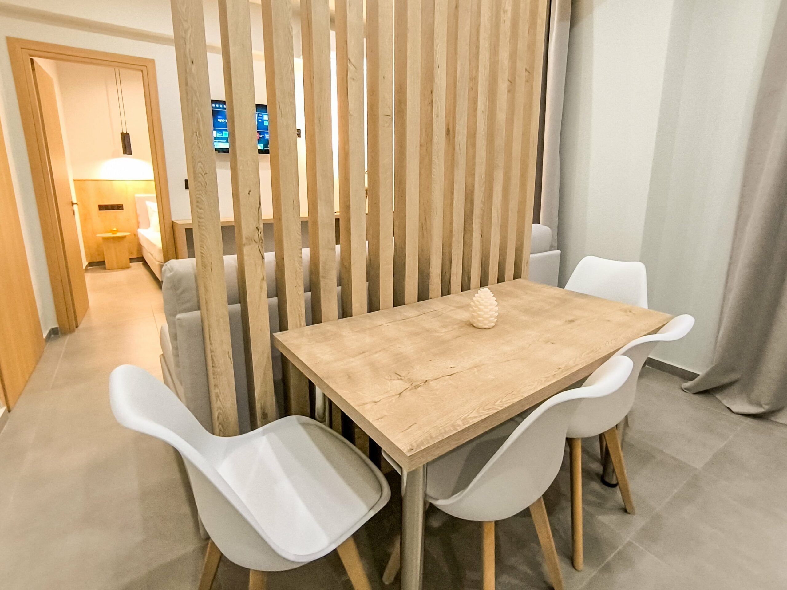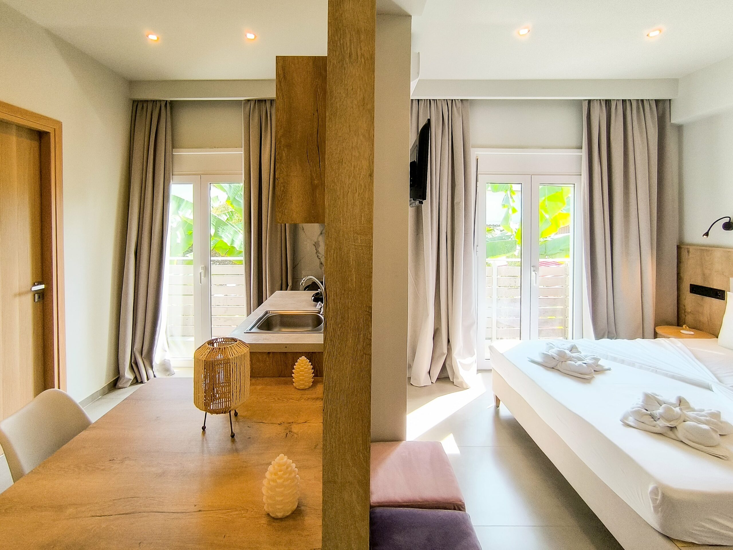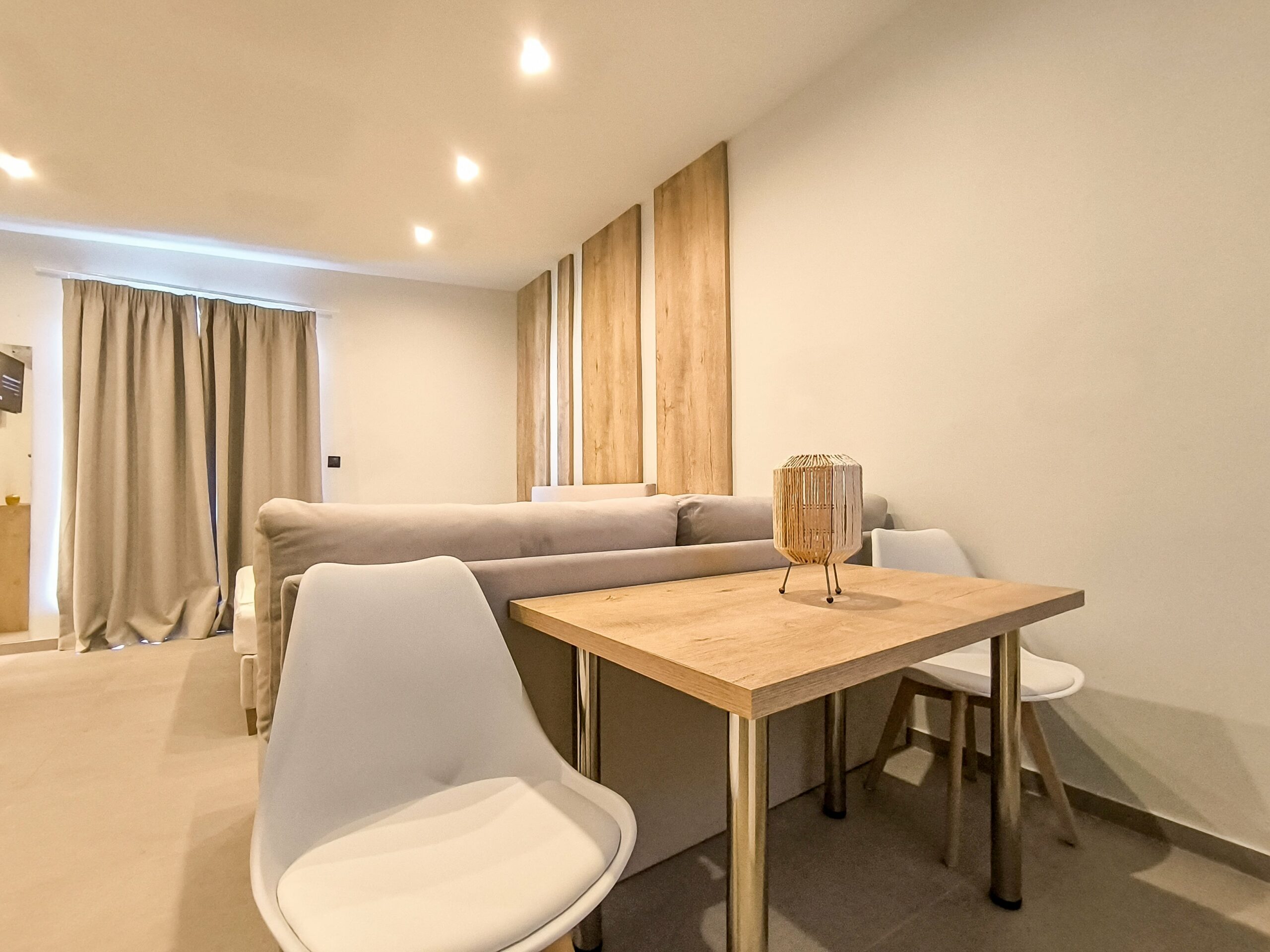 Студио број 5 нуди сместување за 4 лица. Студиото располага со брачен кревет и кревет на извлекување. Во ова студио може да се сместат 4 возрасни лица погодно за друштво (или 2 возрасни и 2 деца).