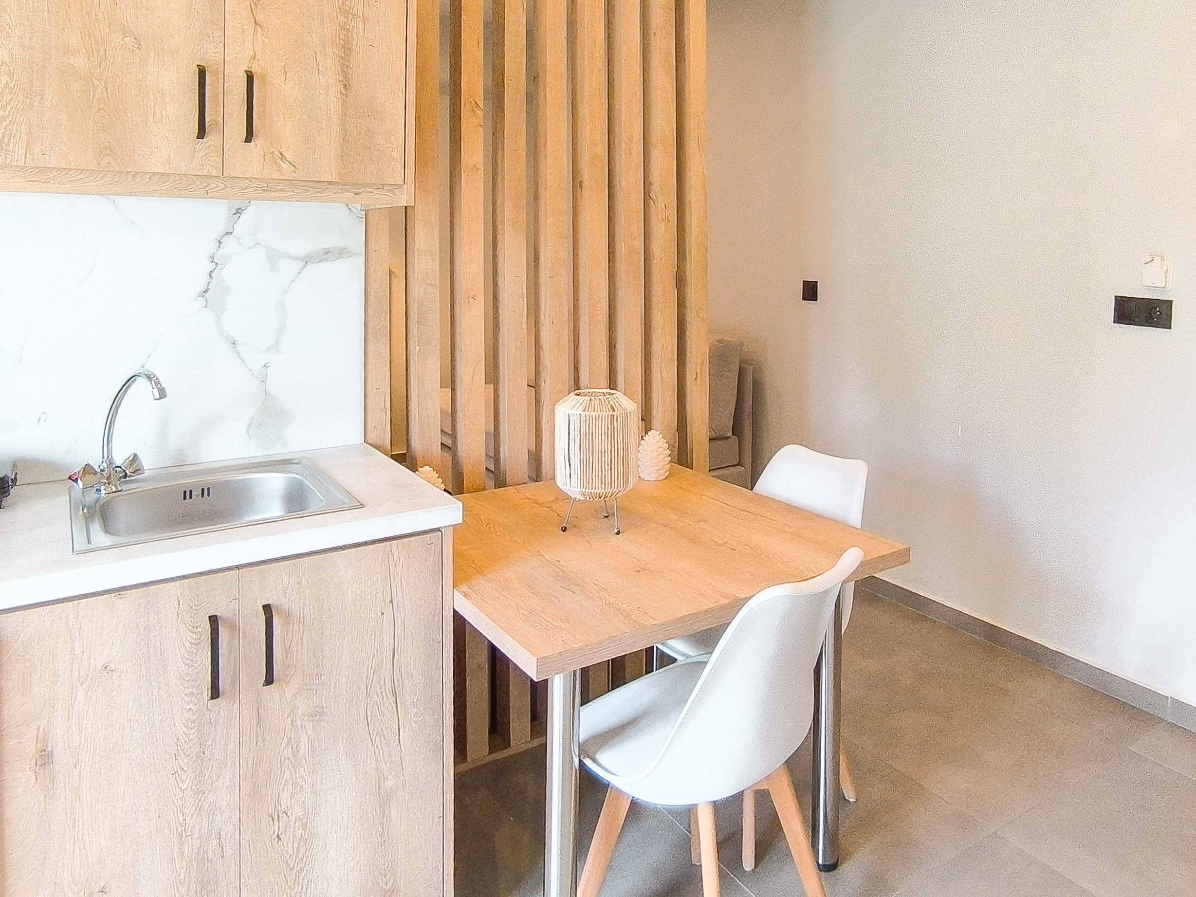 Студио број 8 нуди сместување за 2 лица. Студиото располага со брачен кревет.