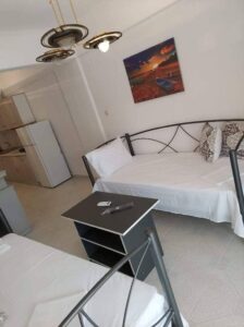 Апартманот е наменет за 4 лица и се наоѓа на 50м. од плажа.Во едната соба има брачен кревет,а во дневната соба која е поврзан со кујната има два единечни кревета.Бања,тераса и кујна која е целосно опремена за приготвување на лесна храна.