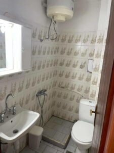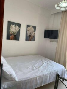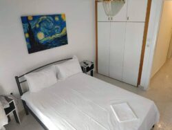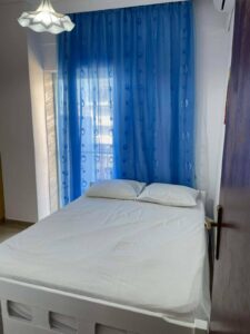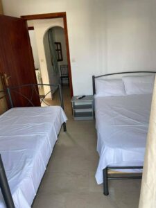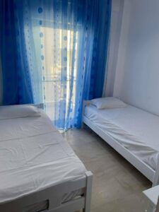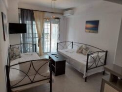 Апартманот е наменет за 5-6 лица.Се наоѓа на 30м од плажа.Има две спални соби во едната има брачен кревет а во другата соба има 3 единечни кревети.Бања,тераса и кујната која е целосно опремена за приготвување на лесна храна.