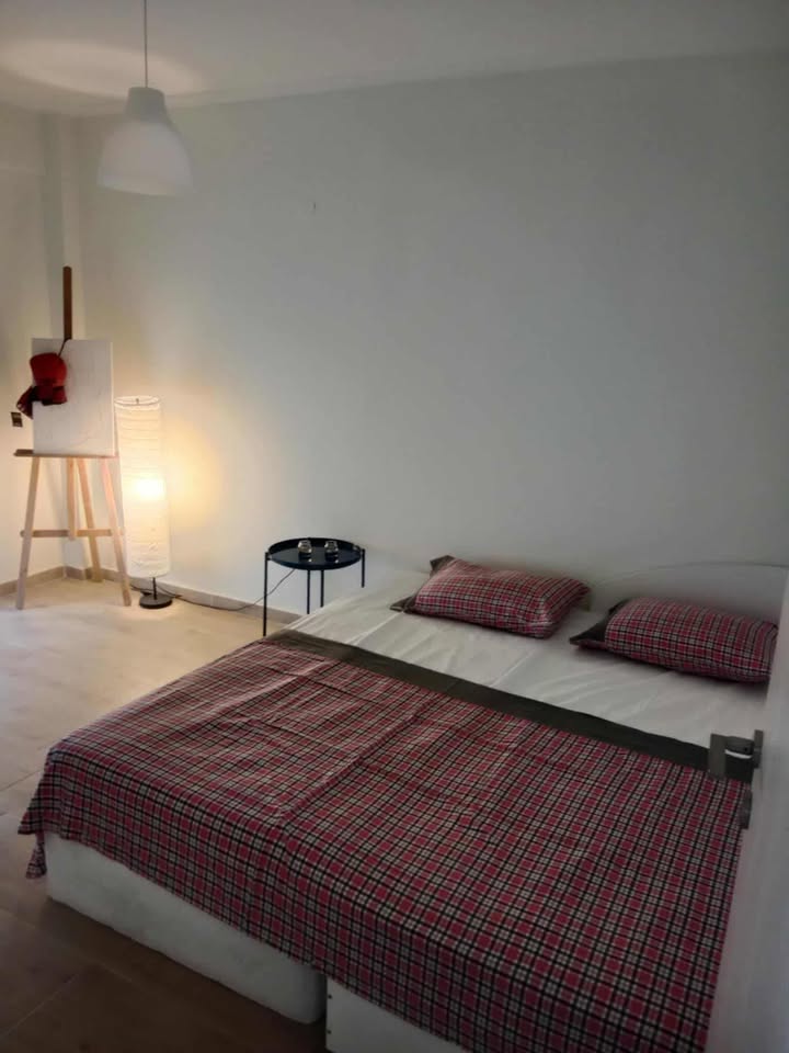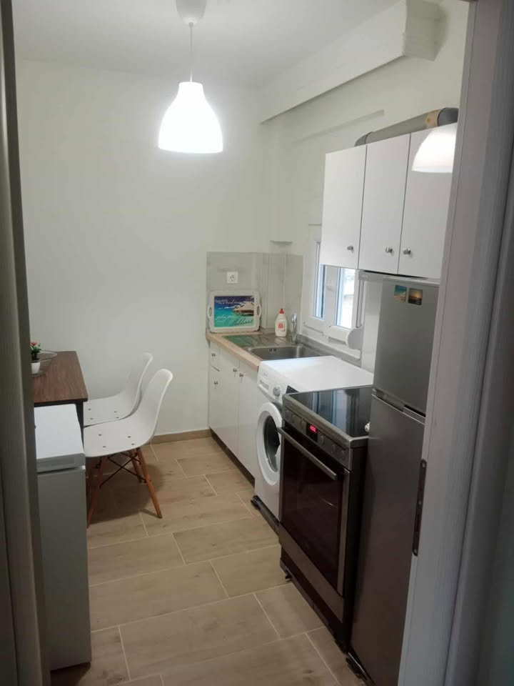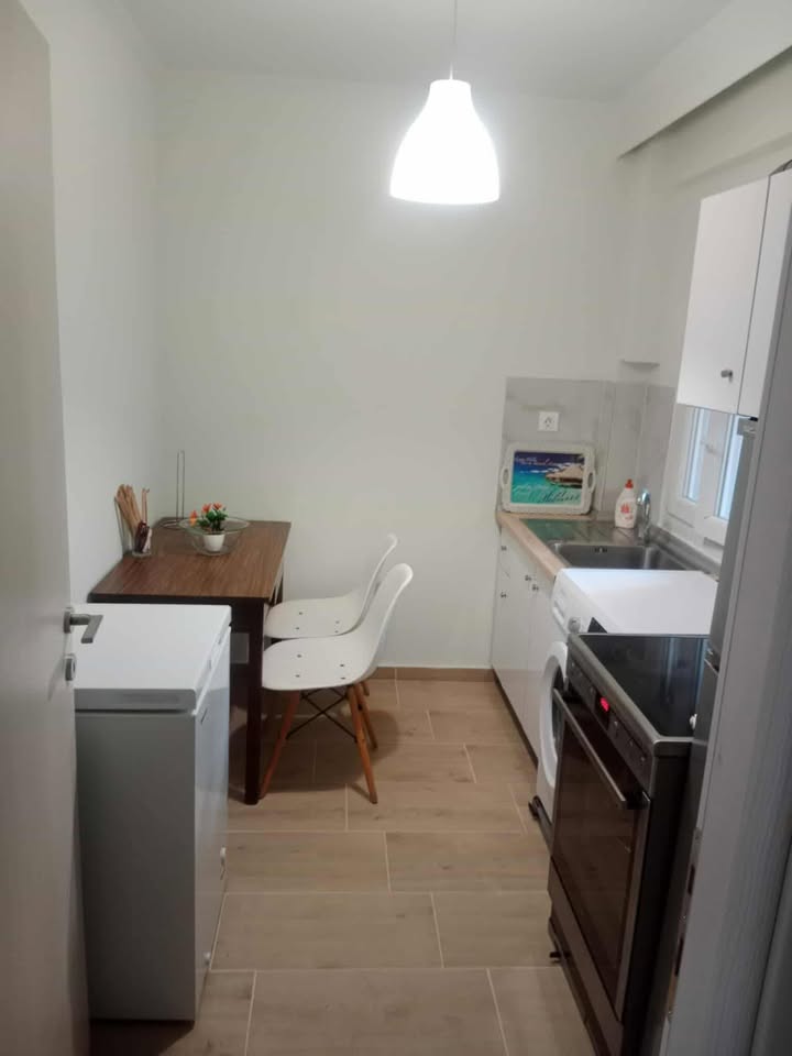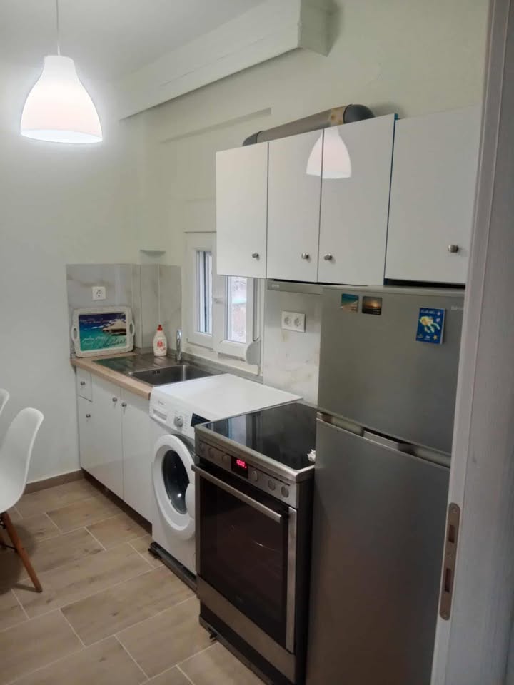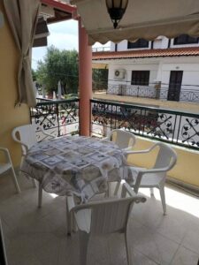 Апартман Хрисанти 06 во Флогита. За 4 лица, на само 30 метри од плажата. Се наоѓа на полусутерен, но е сосема нов. Две спални соби, едната со брачен кревет, а другата со 1 единечен, но широк кревет. Може да се сместат 2 мали деца. Можност за еден дополнителен кревет на расклопување. Кујна опремена за подготовка и сервирање храна и пица. Апартманот има машина за перење алишта. Климатизацијата и Wi-Fi се вклучени во цената.