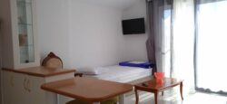 Апартманот е наменет за 3 лица и се состои од одвоена кујна која е опремена за приготвување на лесна храна.Соба е опремена со еден брачен и еден единечен кревет.Бања и тераса.