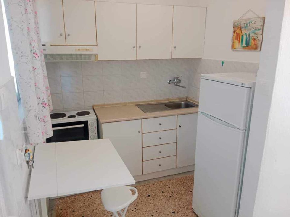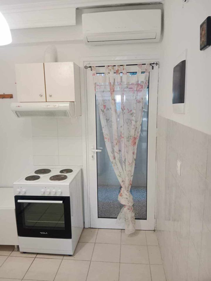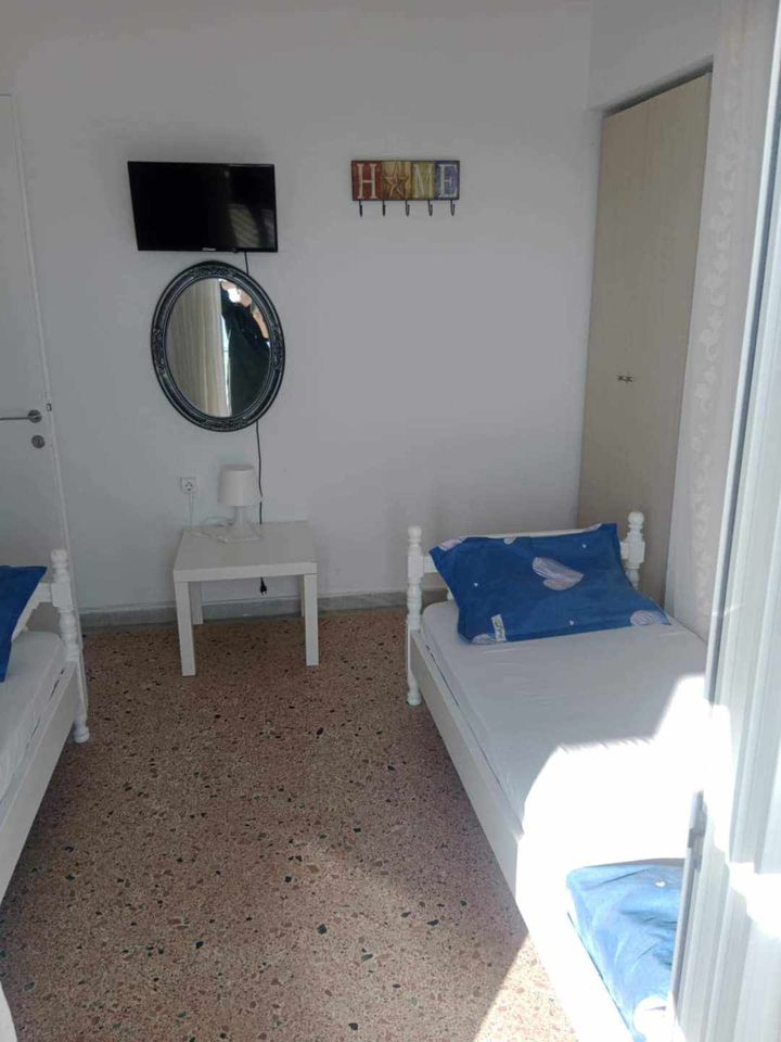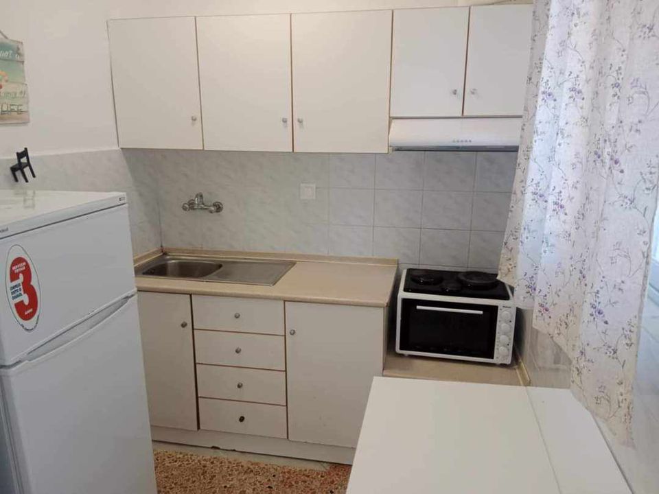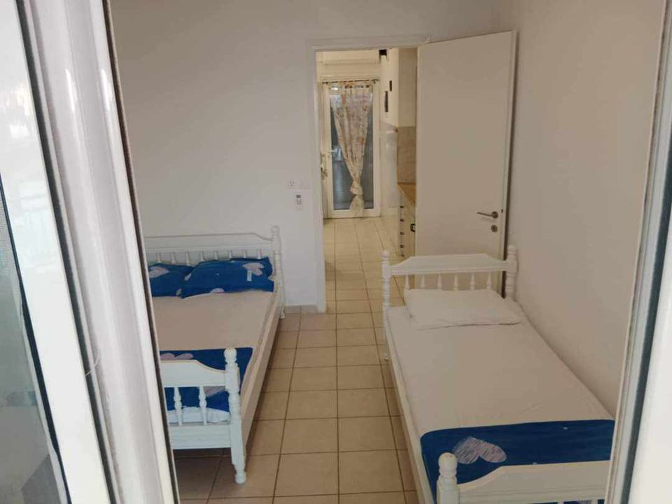 ВИЛА КИКИ -Апартман B2 на втор кат, за 3-4 лица, на 30 метри од плажа и со директен поглед на море.Станот се состои од бања, тоалет, тераса, кујна и посебна спална соба. Собата има еден брачен кревет и еден единечен кревет. Доколку е потребно, може да се додаде дополнителен кревет во кујната. Опремена кујна за приготвување и послужување храна и пица. Клима и Wi-Fi се вклучени во цената.