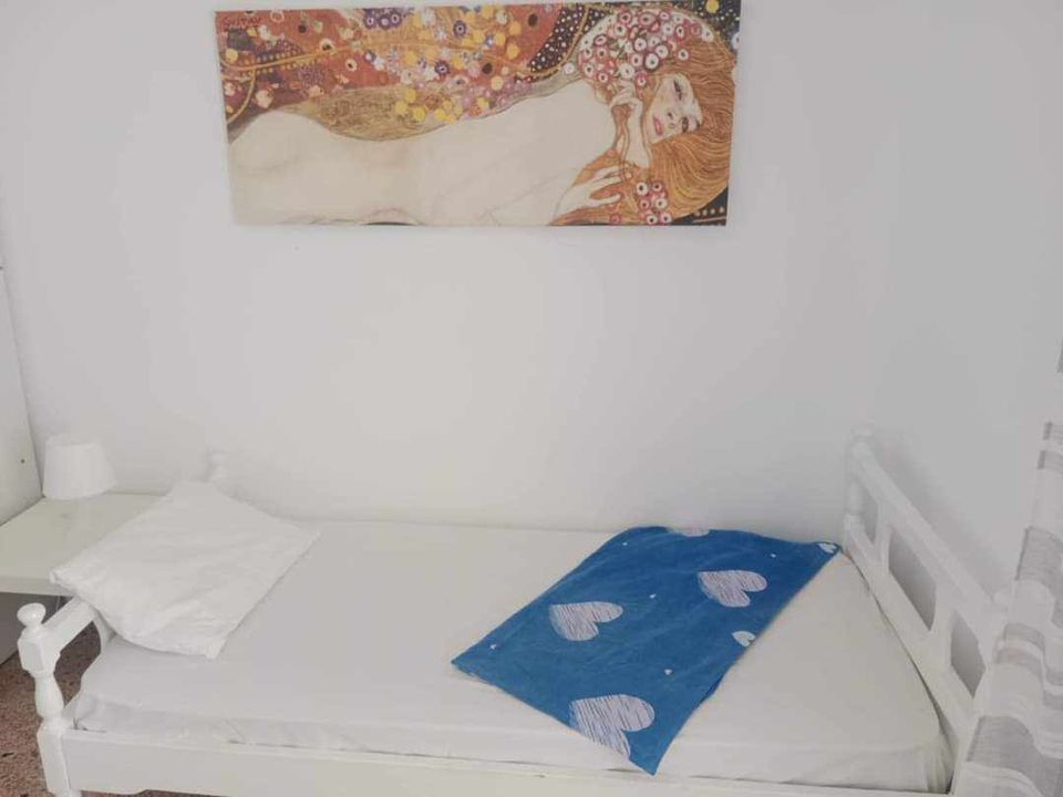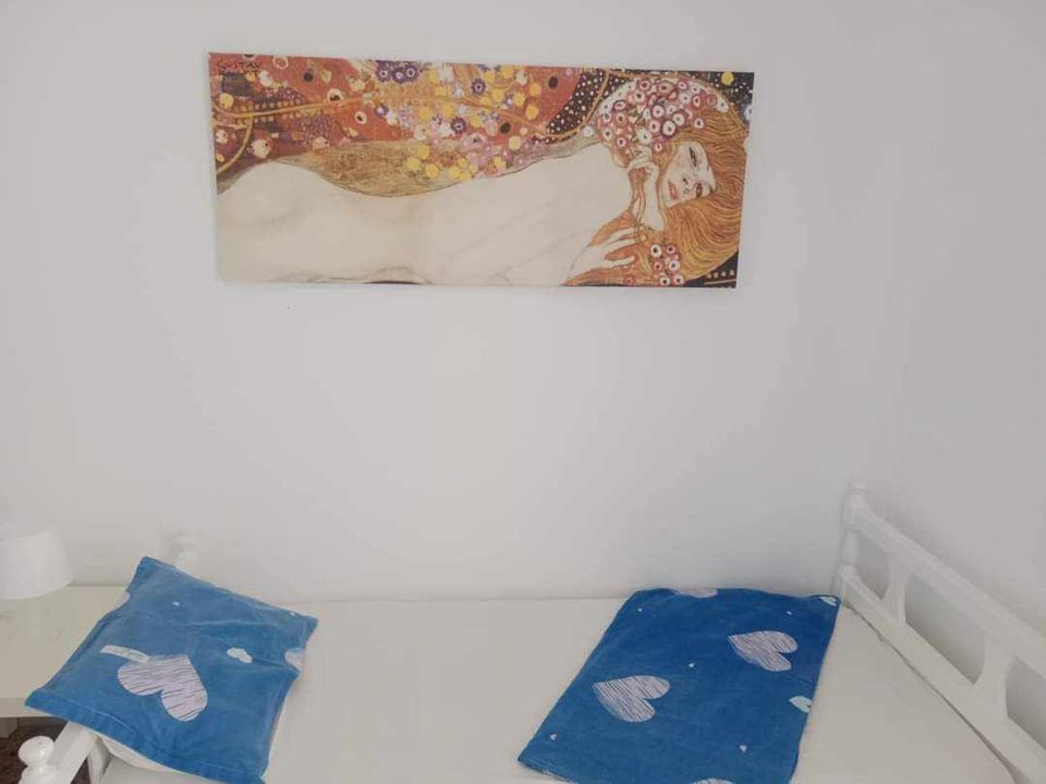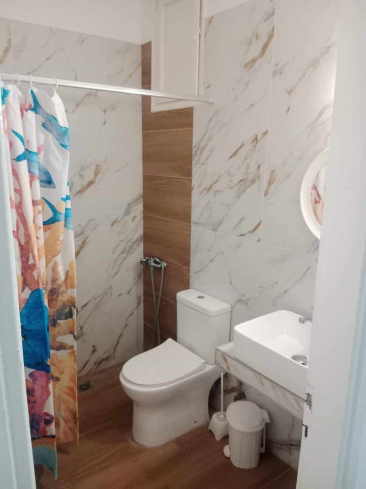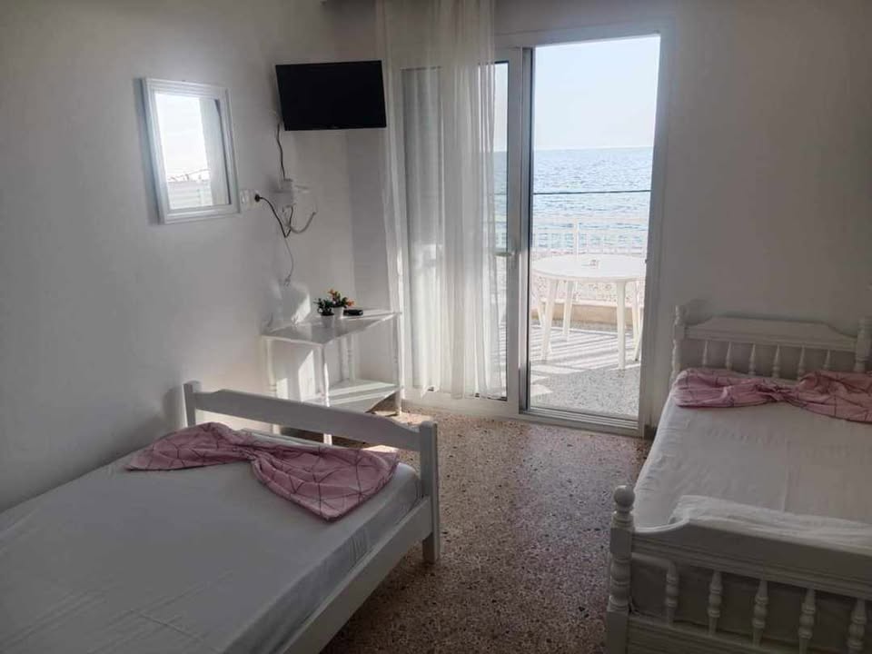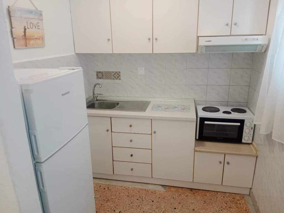 ВИЛА КИКИ -Апартман B2 на втор кат, за 3-4 лица, на 30 метри од плажа и со директен поглед на море.Станот се состои од бања, тоалет, тераса, кујна и посебна спална соба. Собата има еден брачен кревет и еден единечен кревет. Доколку е потребно, може да се додаде дополнителен кревет во кујната. Опремена кујна за приготвување и послужување храна и пица. Клима и Wi-Fi се вклучени во цената.