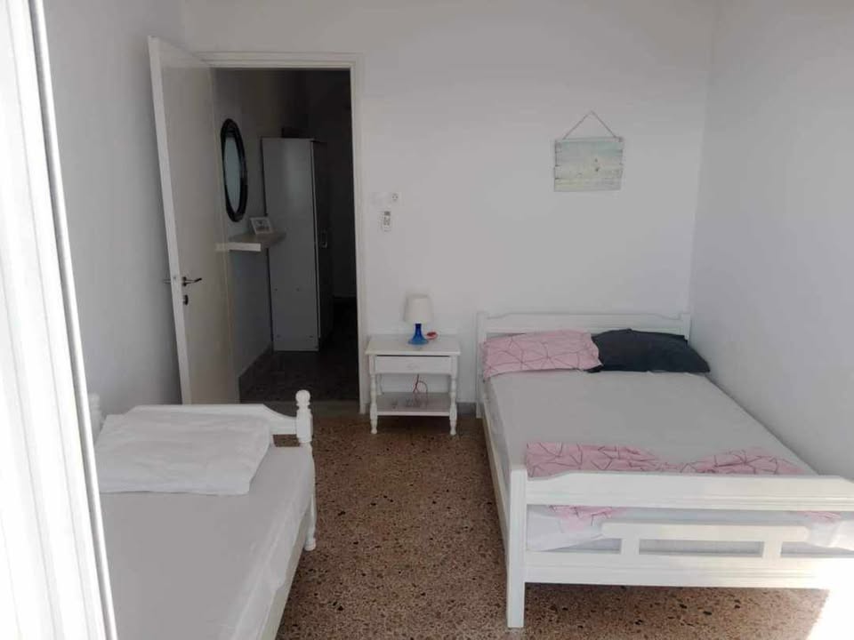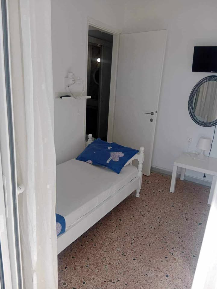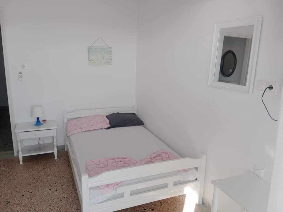 ВИЛА КИКИ во Флогита. Апартман I3 на приземје, за 3-4 лица, на 30 метри од плажа и со директен поглед на море.Станот се состои од бања, тоалет, тераса, кујна и посебна спална соба. Собата има еден брачен кревет и еден единечен кревет. Доколку е потребно, може да се додаде дополнителен кревет во кујната. Опремена кујна за приготвување и послужување храна и пица. Клима и Wi-Fi се вклучени во цената.