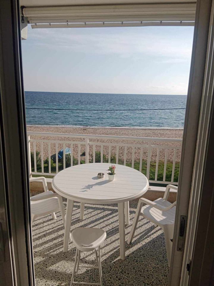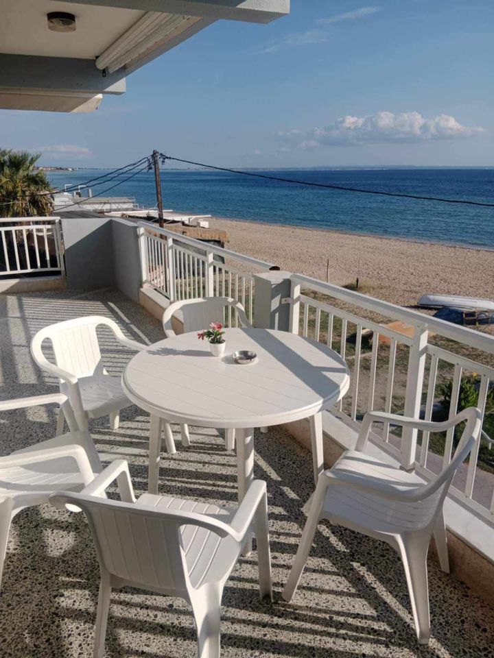 ВИЛА КИКИ во Флогита. Апартман B3, на втор кат, за 3-4 лица, на 30 метри од плажа и со директен поглед на море.Станот се состои од бања, тоалет, тераса, кујна и посебна спална соба. Собата има еден брачен кревет и еден единечен кревет. Доколку е потребно, може да се додаде дополнителен кревет во кујната. Опремена кујна за приготвување и послужување храна и пица. Клима и Wi-Fi се вклучени во цената.