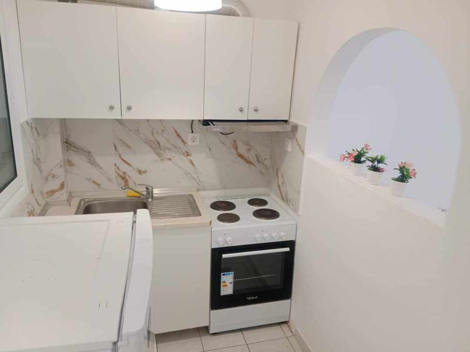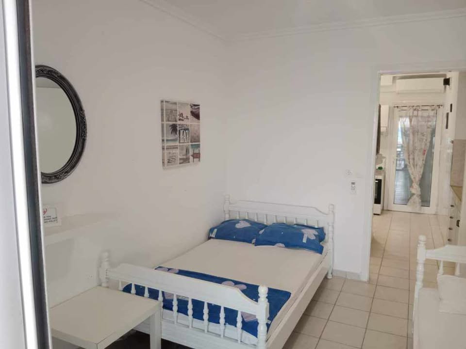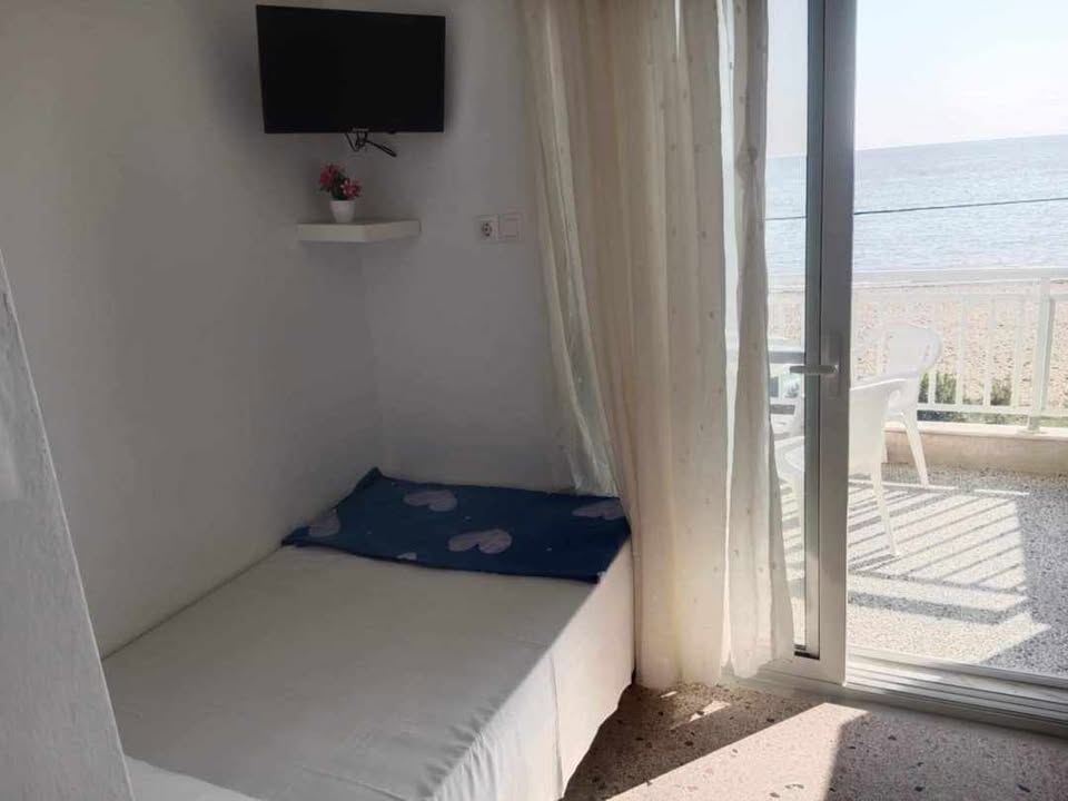 ВИЛА КИКИ -Апартман B2 на втор кат, за 3-4 лица, на 30 метри од плажа и со директен поглед на море.Станот се состои од бања, тоалет, тераса, кујна и посебна спална соба. Собата има еден брачен кревет и еден единечен кревет. Доколку е потребно, може да се додаде дополнителен кревет во кујната. Опремена кујна за приготвување и послужување храна и пица. Клима и Wi-Fi се вклучени во цената.