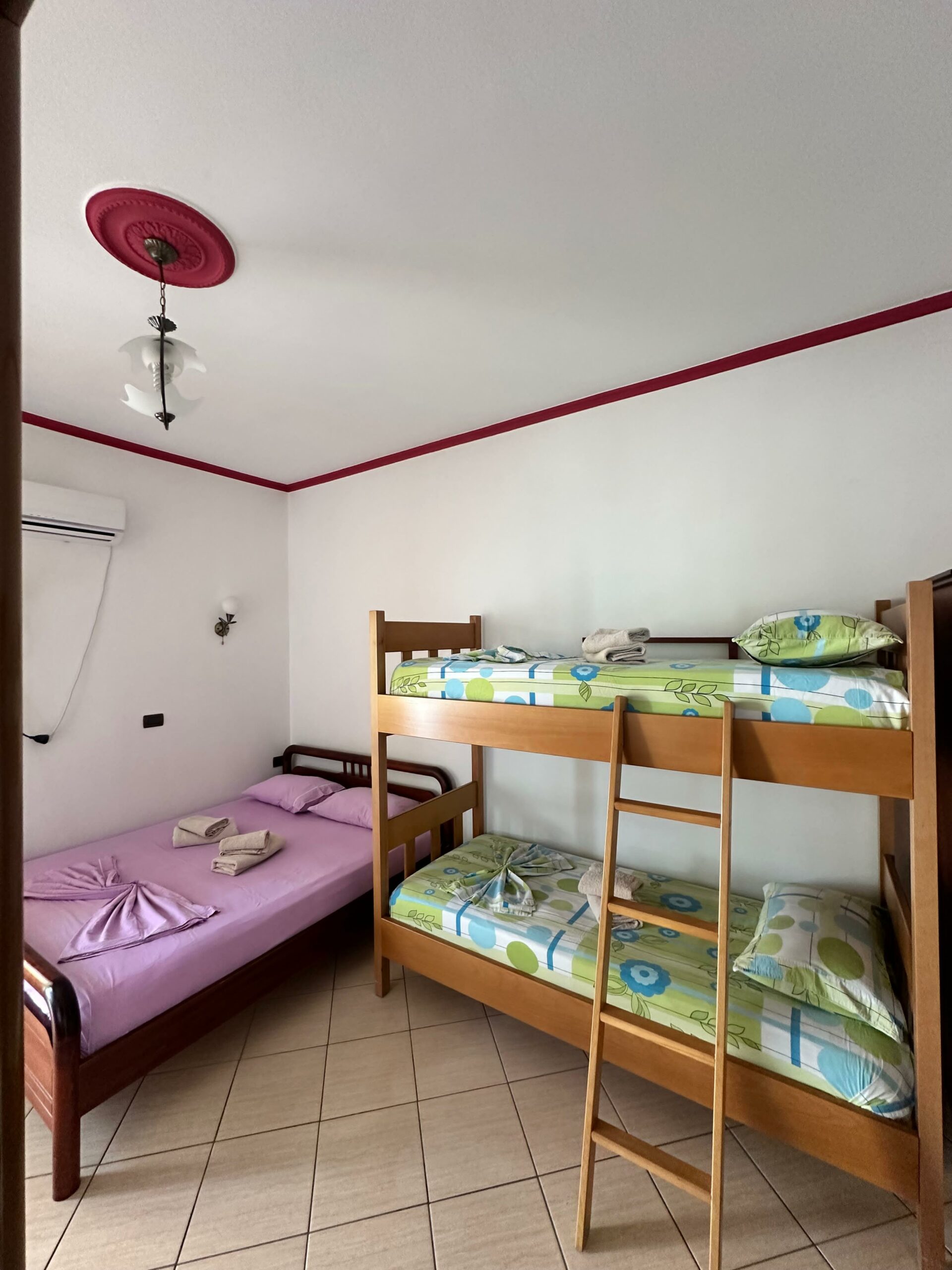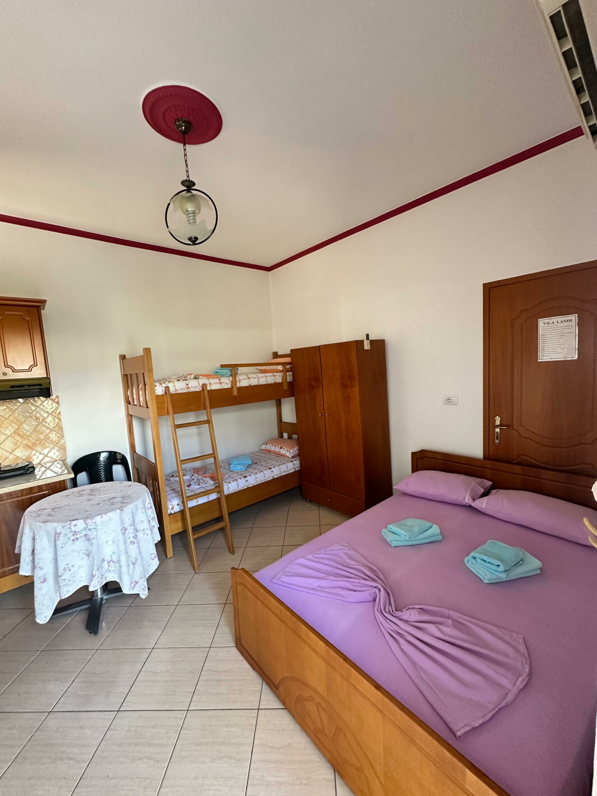 Вила Ланди се наоѓа на само 200 метри од прекрасната плажа Bora Bora и на околу 100 метри од центарот на Ксамил. Располага со двокреветни, трикреветни, четирикреветни студија и четирикреветни дуплекс апартмани на приземје и на прв спрат, опремени со сопствена кујна, купатило, балкон, клима, WI-FI.