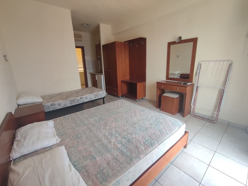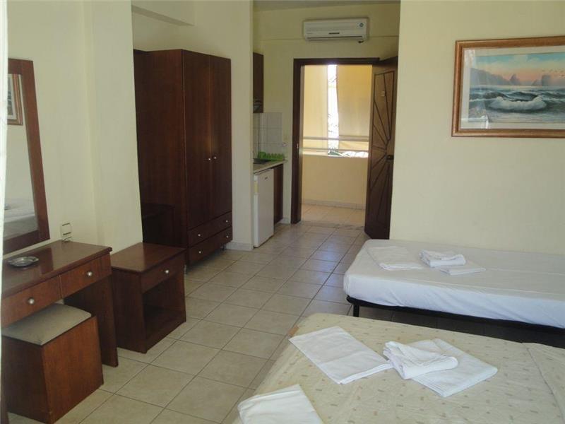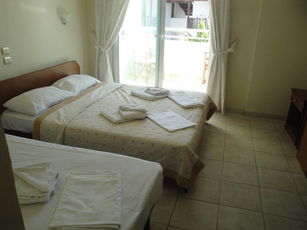 Сместување: трокреветни соби во Мустакас. Сите соби имаат комплетно опремена мини кујна и прибор во согласност од бројот на легла во собата.