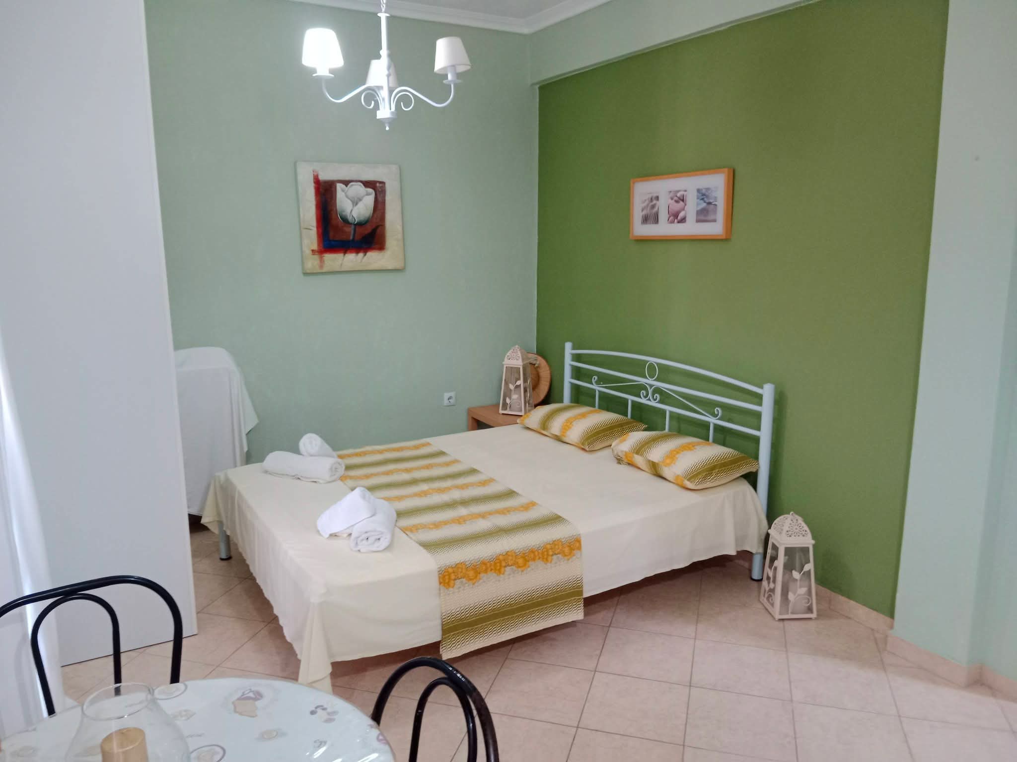 Апартман бр.1 во Неа Плагија. За 4 лица. 80 метри од плажата. Имате еден брачен кревет во едната соба, плус 2 единечни кревети во другата соба. Кујна опремена за подготовка и сервирање храна и пијалоци. Клима уредот и Wifi се вклучени во цената. Апартманот се наоѓа на првиот кат и има 2 тераси. Една напред и една позади.Апартман бр.2 е наменет за 4-5 лица на 80 метри од плажа. Има еден брачен кревет во едната соба, плус една софа кревет во другата соба. Можност за еден дополнителен кревет. Опремена кујна за приготвување и послужување храна и пица. Клима и Wi-Fi се вклучени во цената. Станот се наоѓа на прв кат и има голема тераса напред и мала тераса назад.