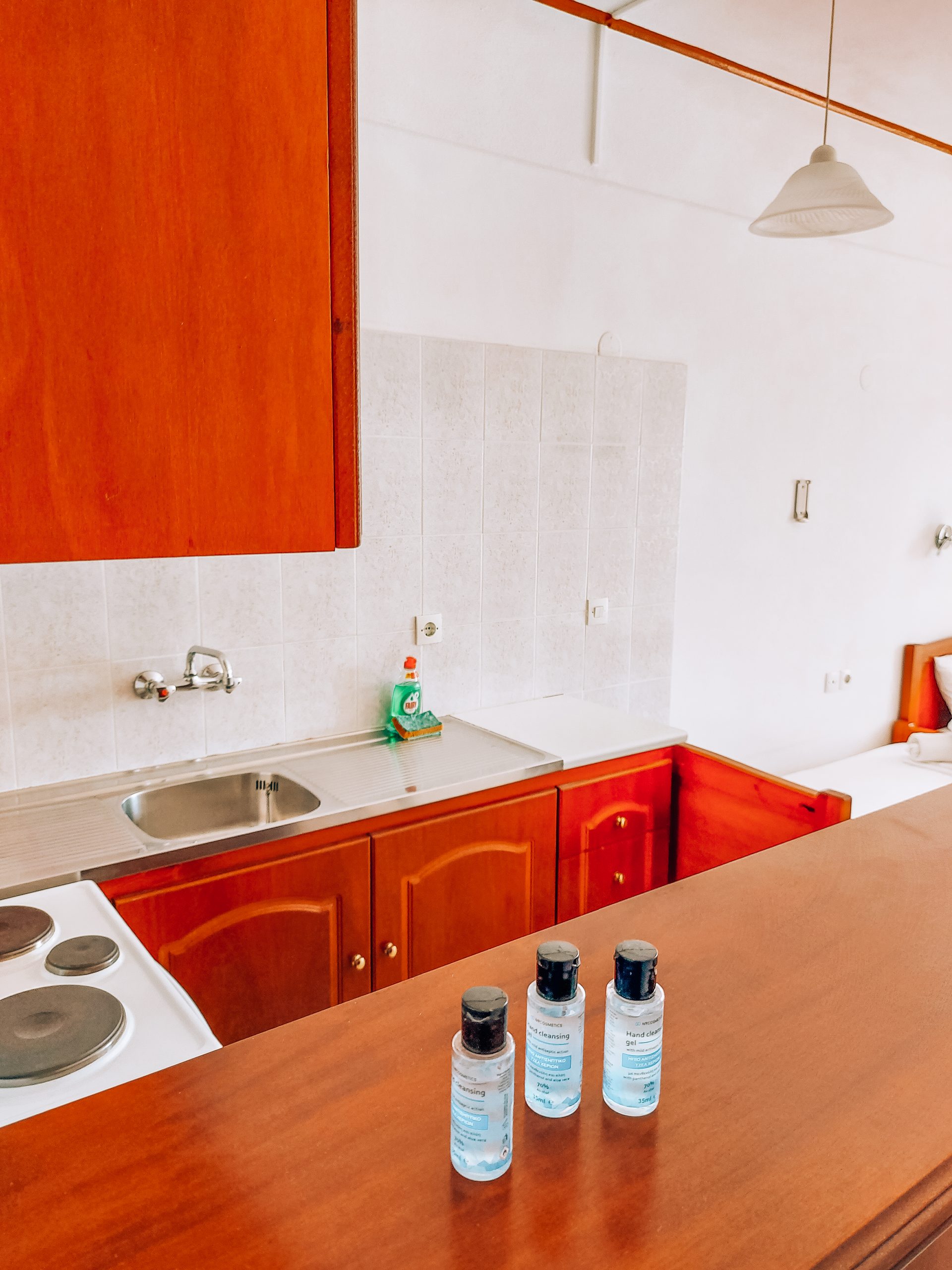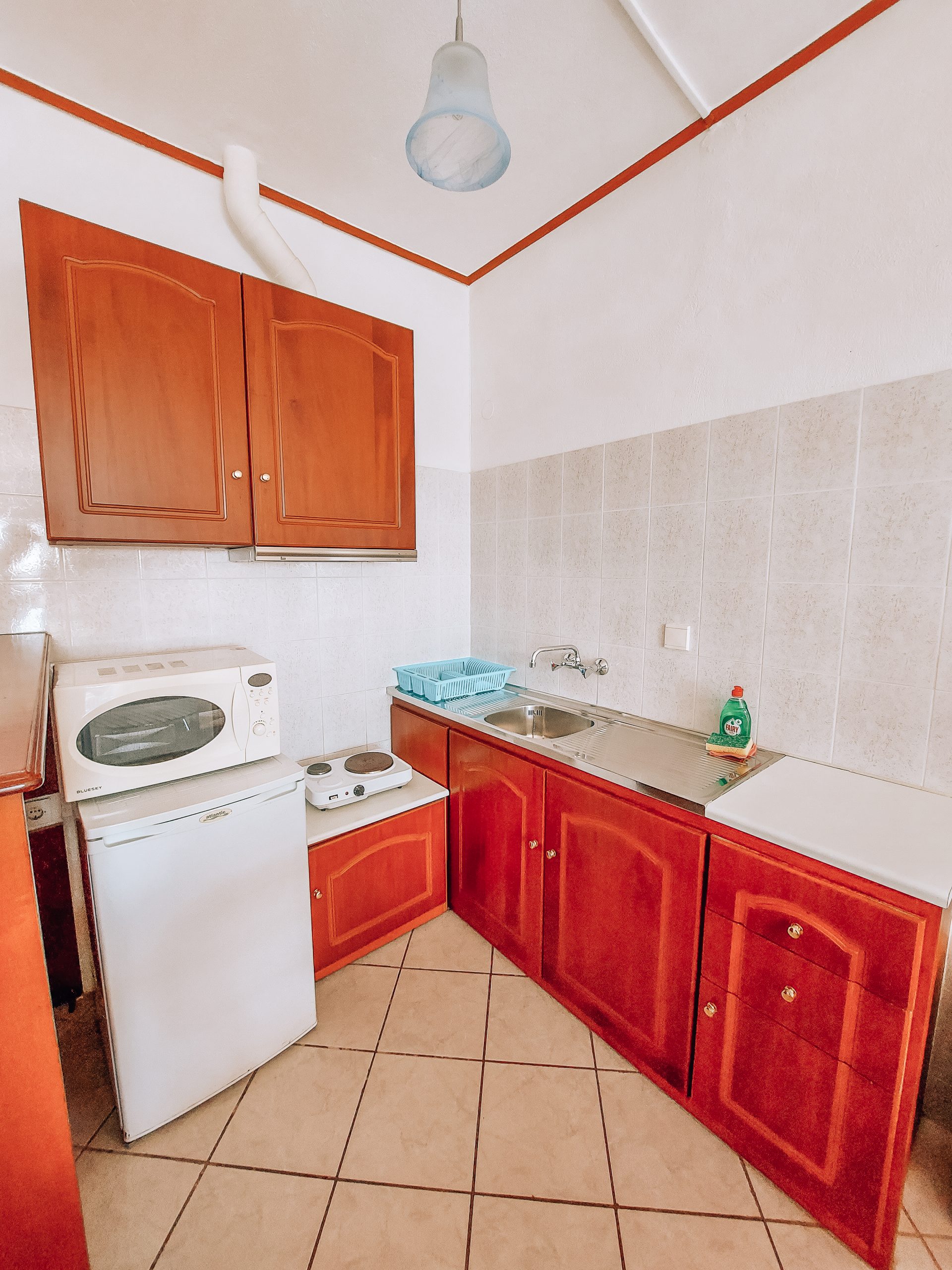 -Кујните во сите студиа се опремени со најосновен прибор за подготовка на лесни јадења.
