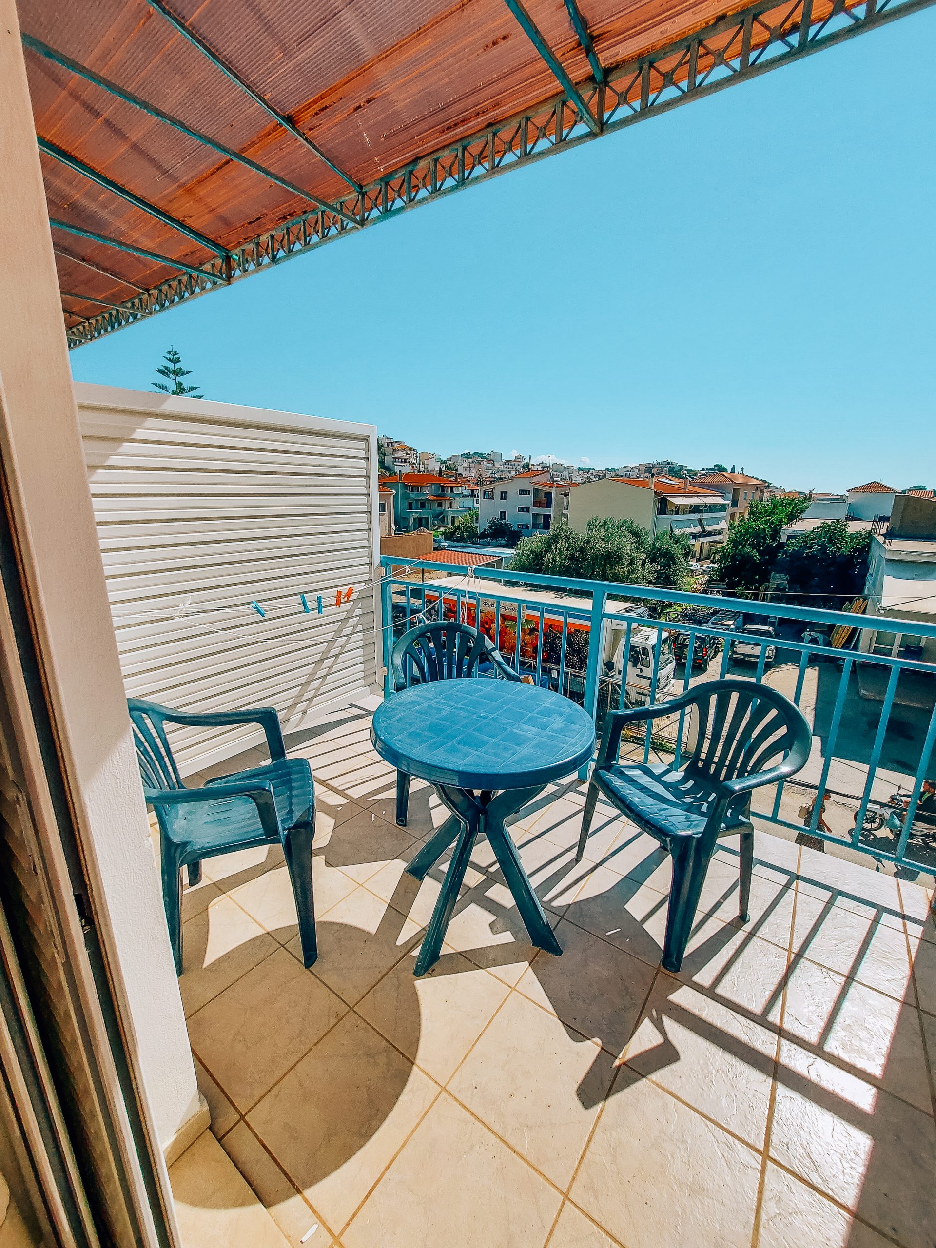 Вилата Сириос се наоѓа во близина на плажата Megali Ammos, на само 6 мин пешачење од оваа често посетувана плажа. Вилата е оддалечена на 150 метри од автобуската станица број 3. Објектот располага со студиа за 2,3 и 4 лица на прв кат. Сите студиа се опремени со мини кујна, сопствен тоалет, клима и wifi.