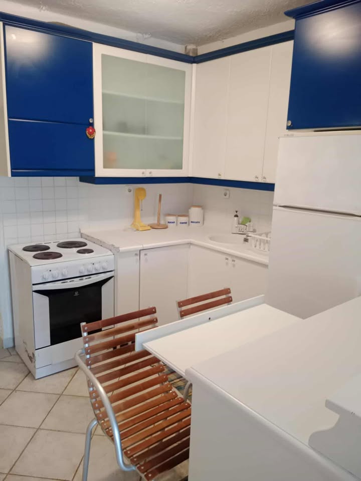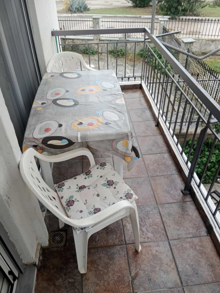 Викторија 01, за 4-5 лица во Неа Плагија. Се наоѓа на 50м од морето со една тераса напред  и директен поглед на море, плус другa тераса позади. Во спалната има брачен лежај , а во дневната која е поврзана со кујната има кревет на извлекување плус еден единечен кревет. Кујната е опремена за подготовка на лесна храна. Апартманот се наоѓа на приземје