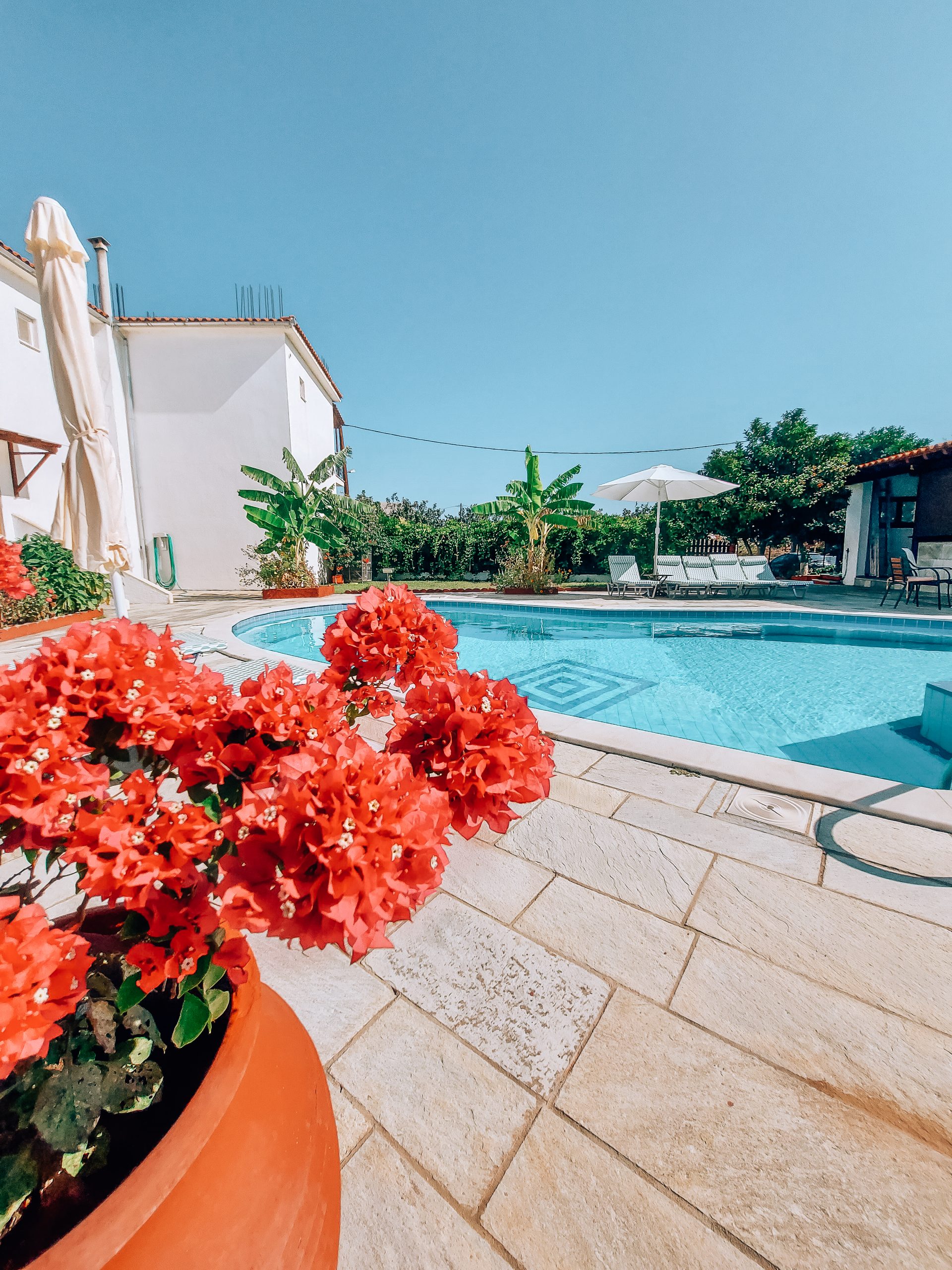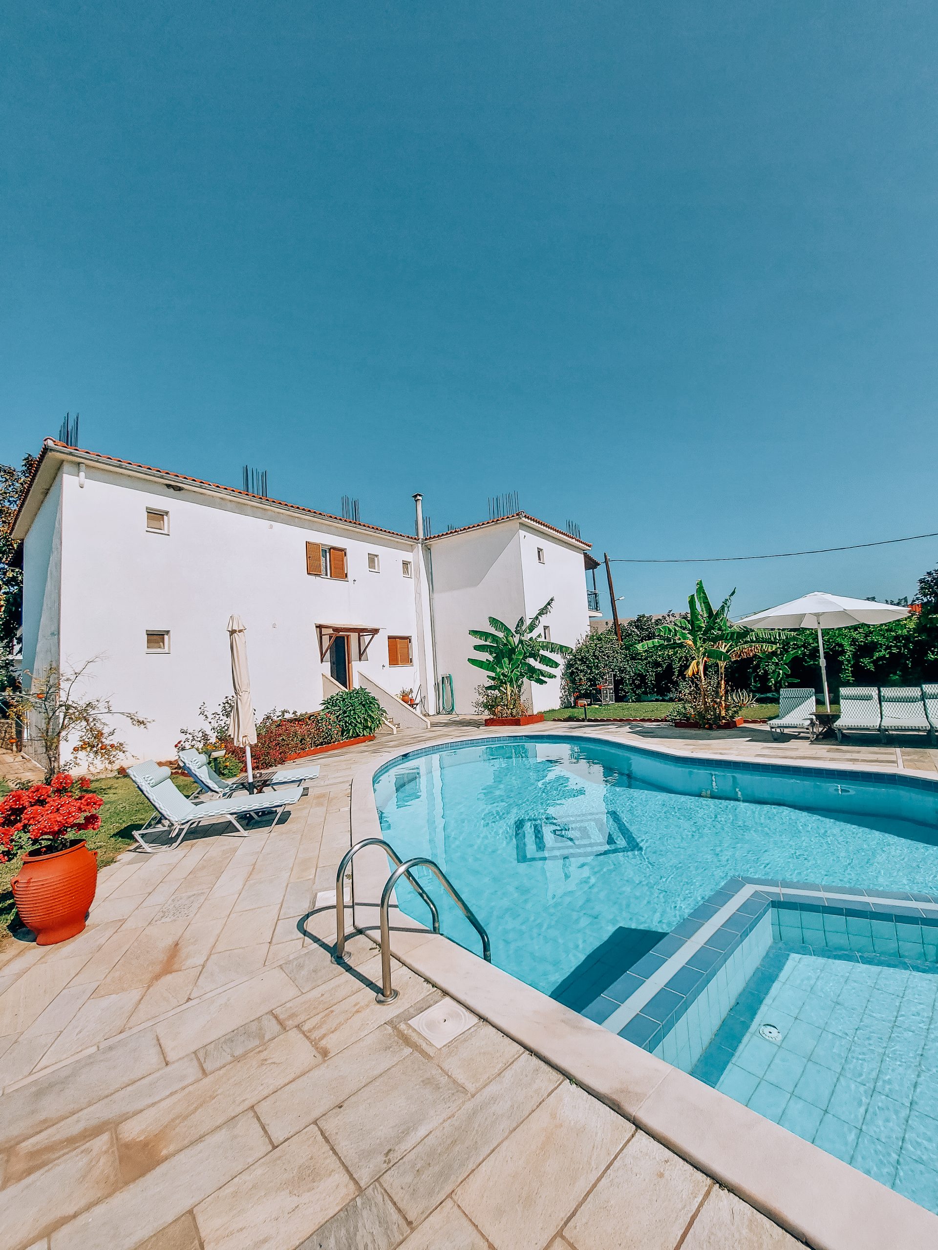 Како сместувачки капацитет кој го имаме на Скијатос е „Вила Павлос“ која располага со студија на приземје и прв спрат. Вилата е нова и модерна, а во дворот има базен кој може бесплатно да го користат гостите. Според нас, да се пие утринско кафе на балкон оддалечен само неколку минути од популарниот аеродром во Скијатос е повеќе од доживување.