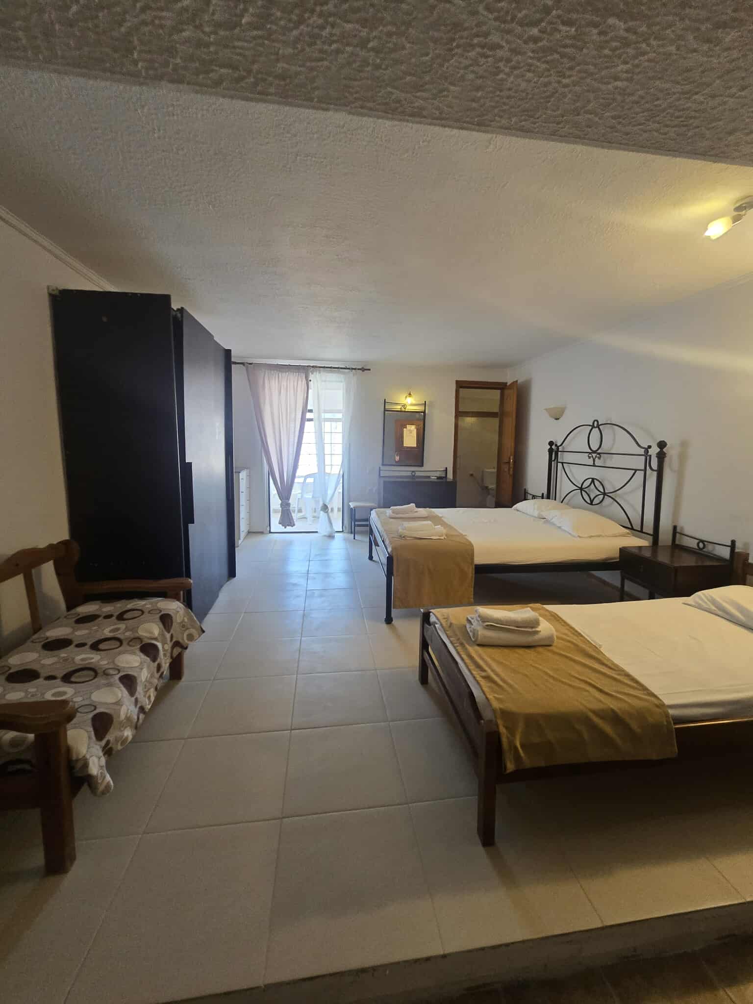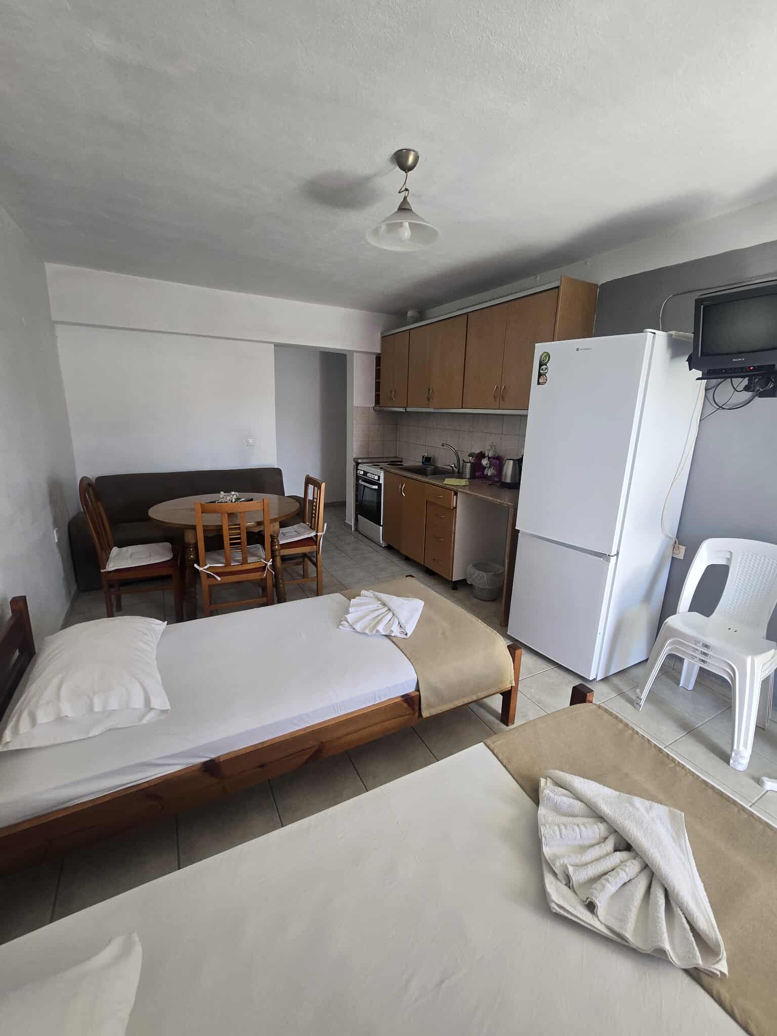 Вила Zoi 2 располага со 4 студиа трокреветни и четворокреветни и еден апартман за 4 лица со една одделна спална и кујна. Секое студио има затворена тераса, сопствен тоалет, клима, мини фрижидер и кујна. Вилата е во центарот на островот, и излегува на главната пешачка улица Пападијаманти.